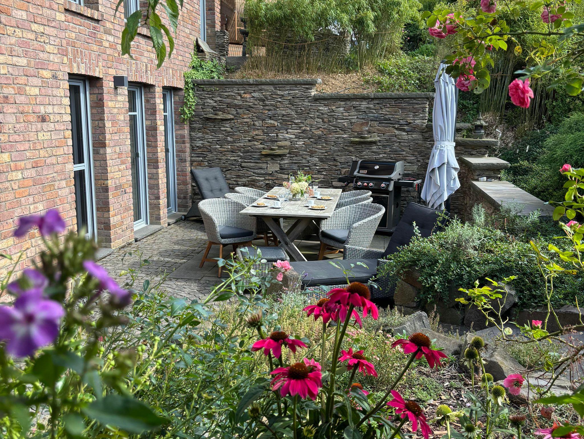 Wir freuen uns sehr euch nach Möglichkeit persönlich in unserer attraktiv, gemütlich und hochwertigen Ferienwohnung “Elztalidyll“ willkommen zu heißen. Die Wohnung befindet sich in sehr ruhiger Ortsrandlage, ca. 200 m vom schönen Wald des Elztal, aber nur ca. 3,5 km von der Autobahn A 48 entfernt. Die wunderschöne Süd- West- Terrasse wurde aufwändig mit einer echten Natur- Bruchsteinmauer eingeramt und lädt mit hochwertiger Rattan/ Holz Möbilierung zum Entspannen ein. Jahreszeitig (eingeschränkt nutzbar) stehen zwei exklusive Rattan Sonnenliegen und ein großer Sonnenschirm bereit.