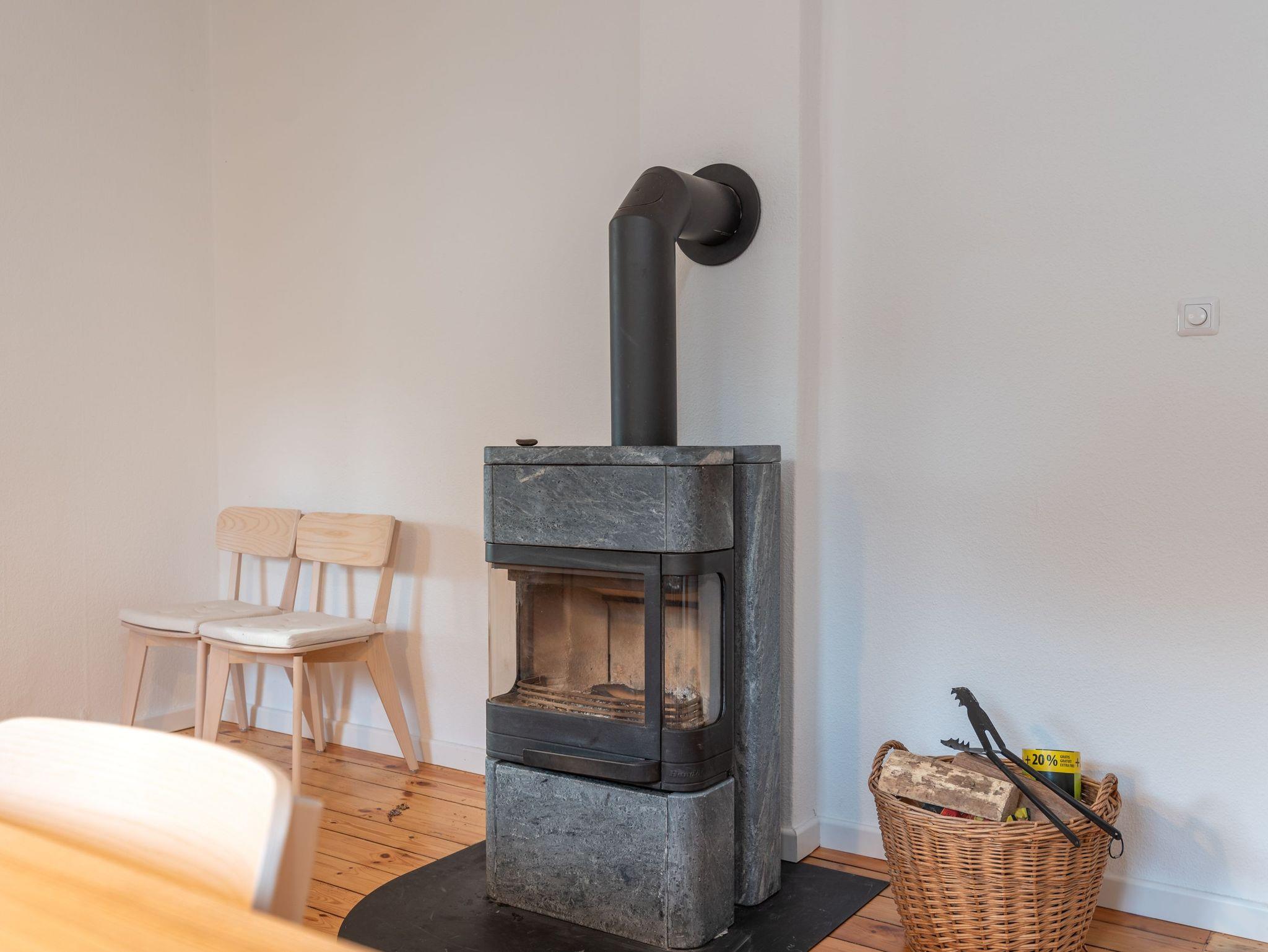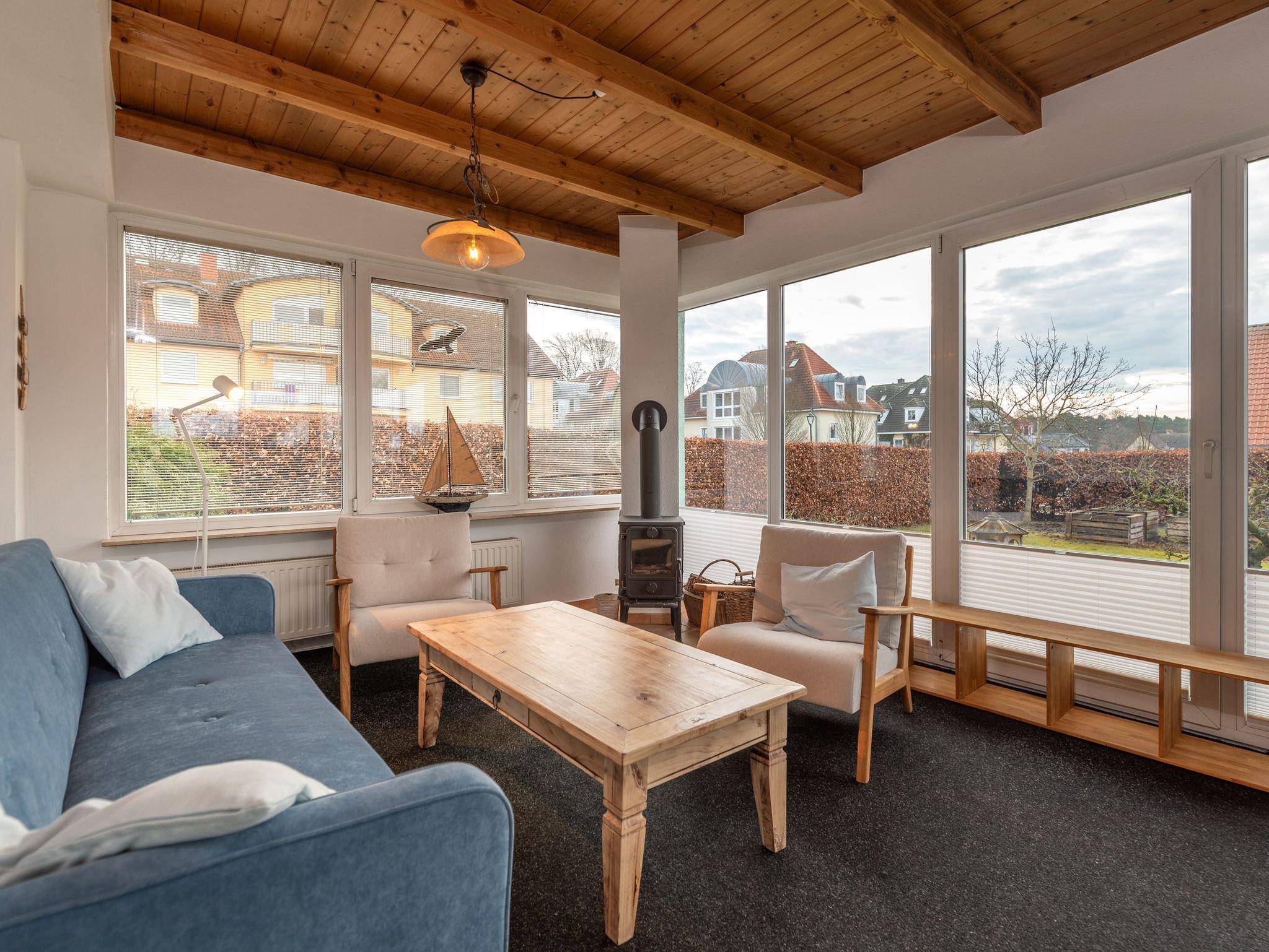 • Wintergarten mit Kamin und Blick in den großen Garten