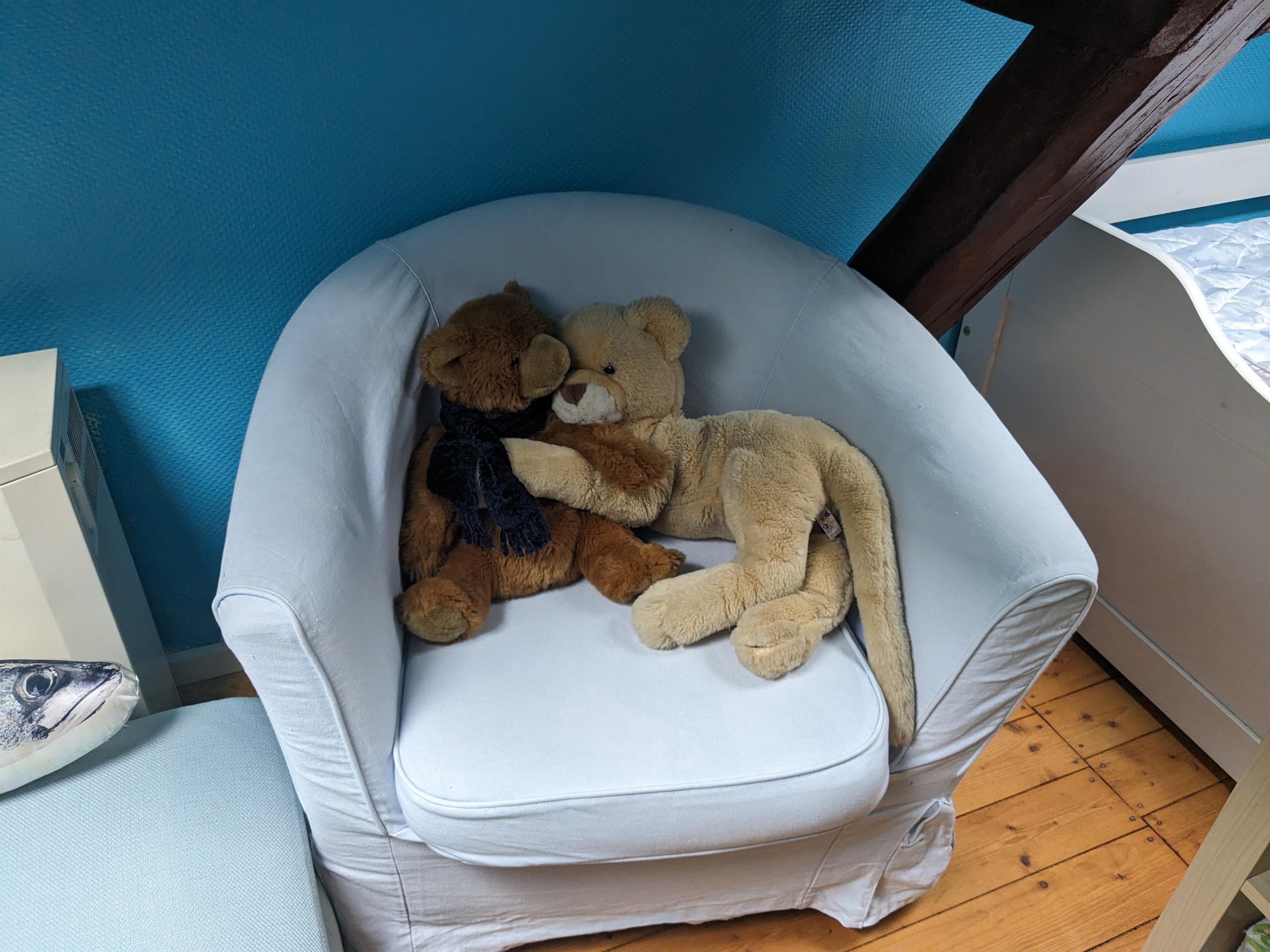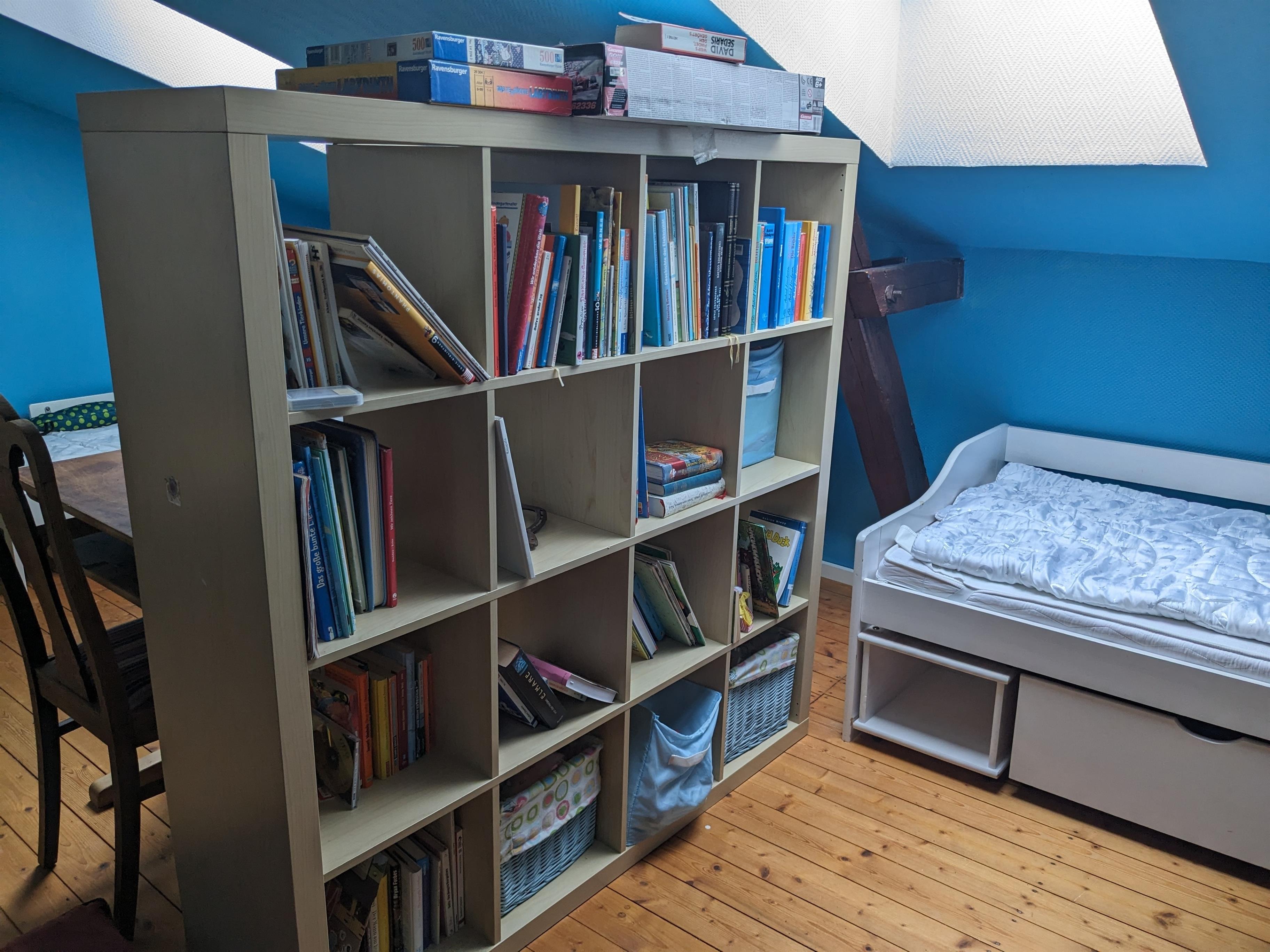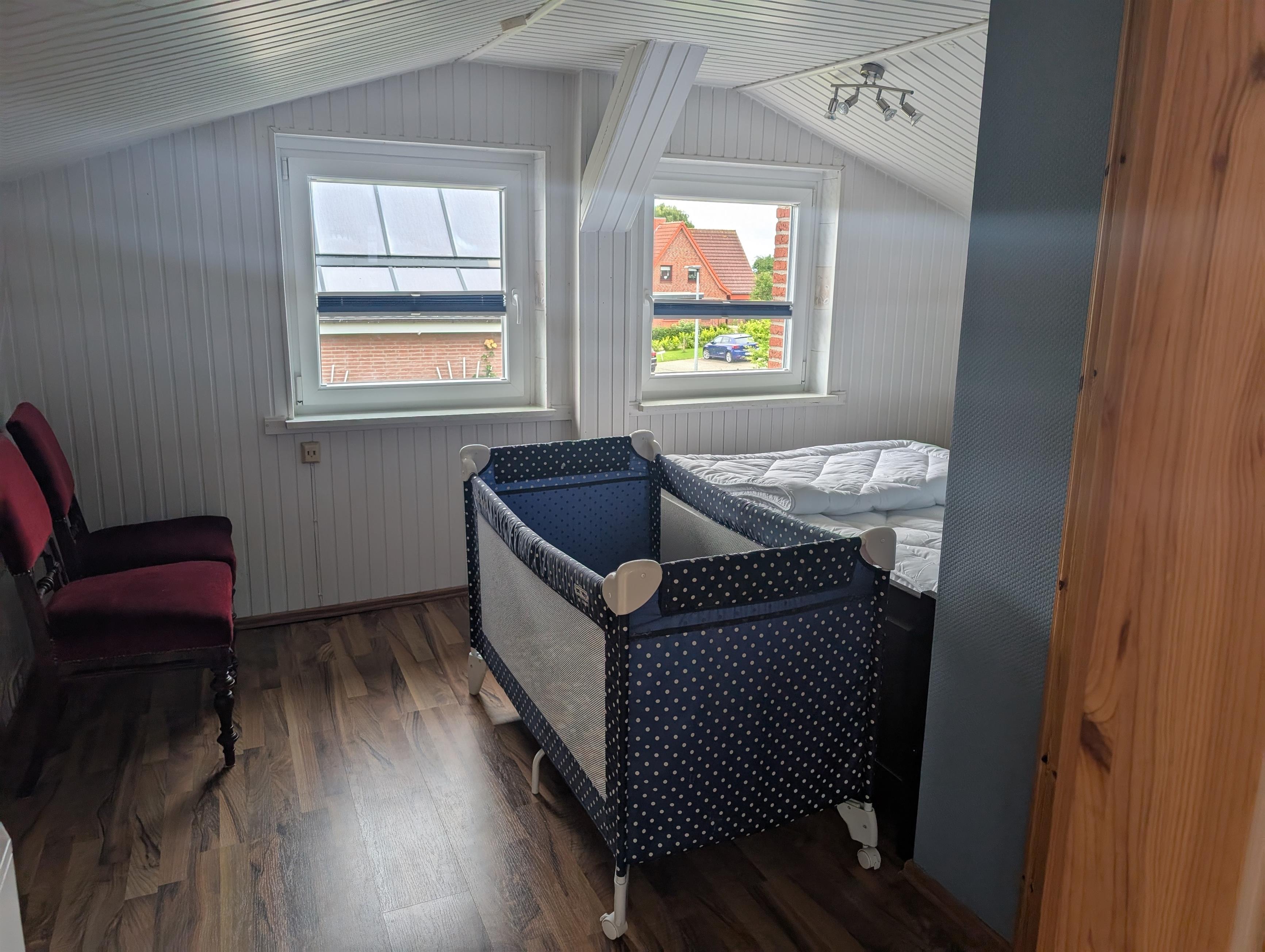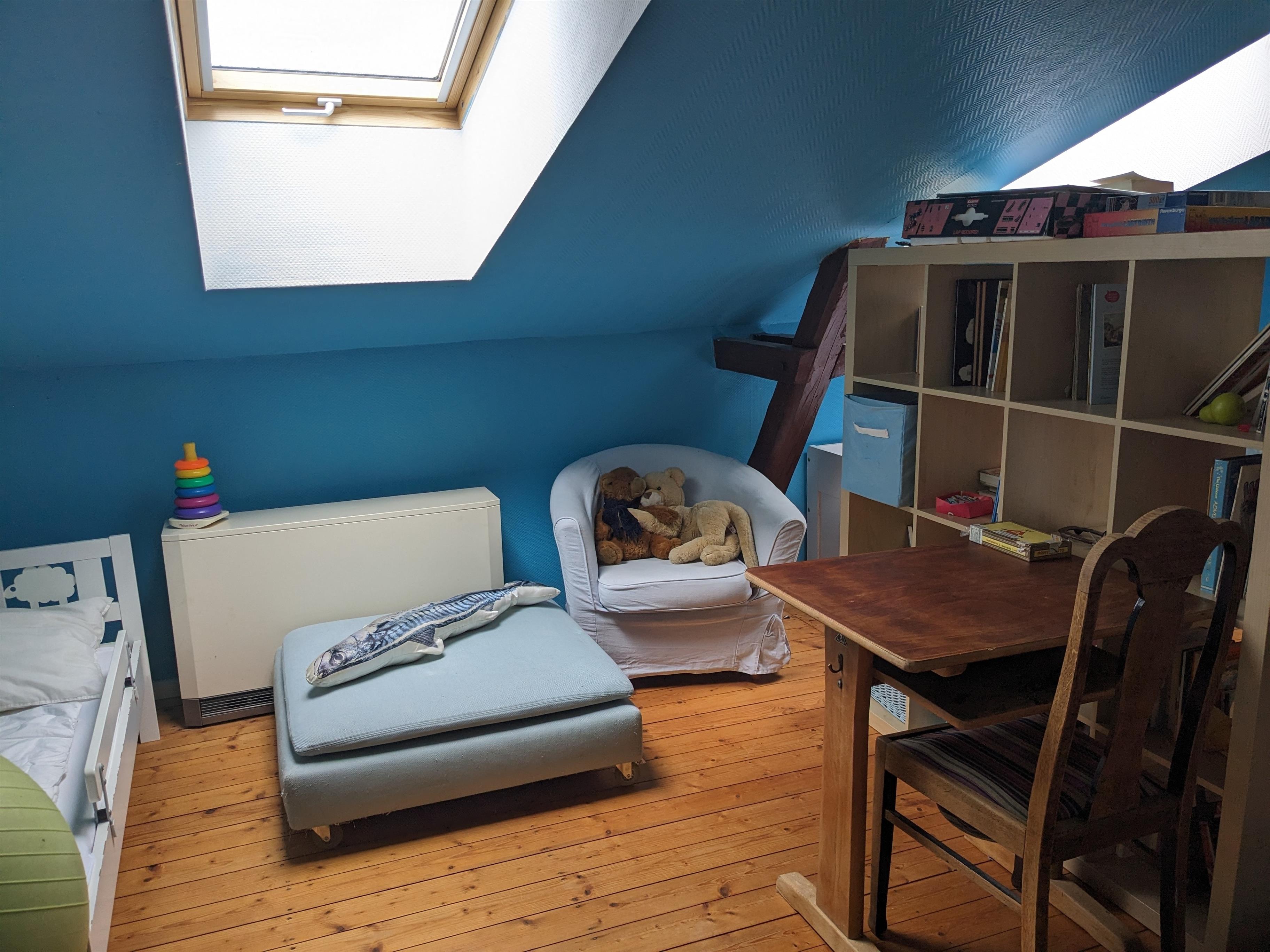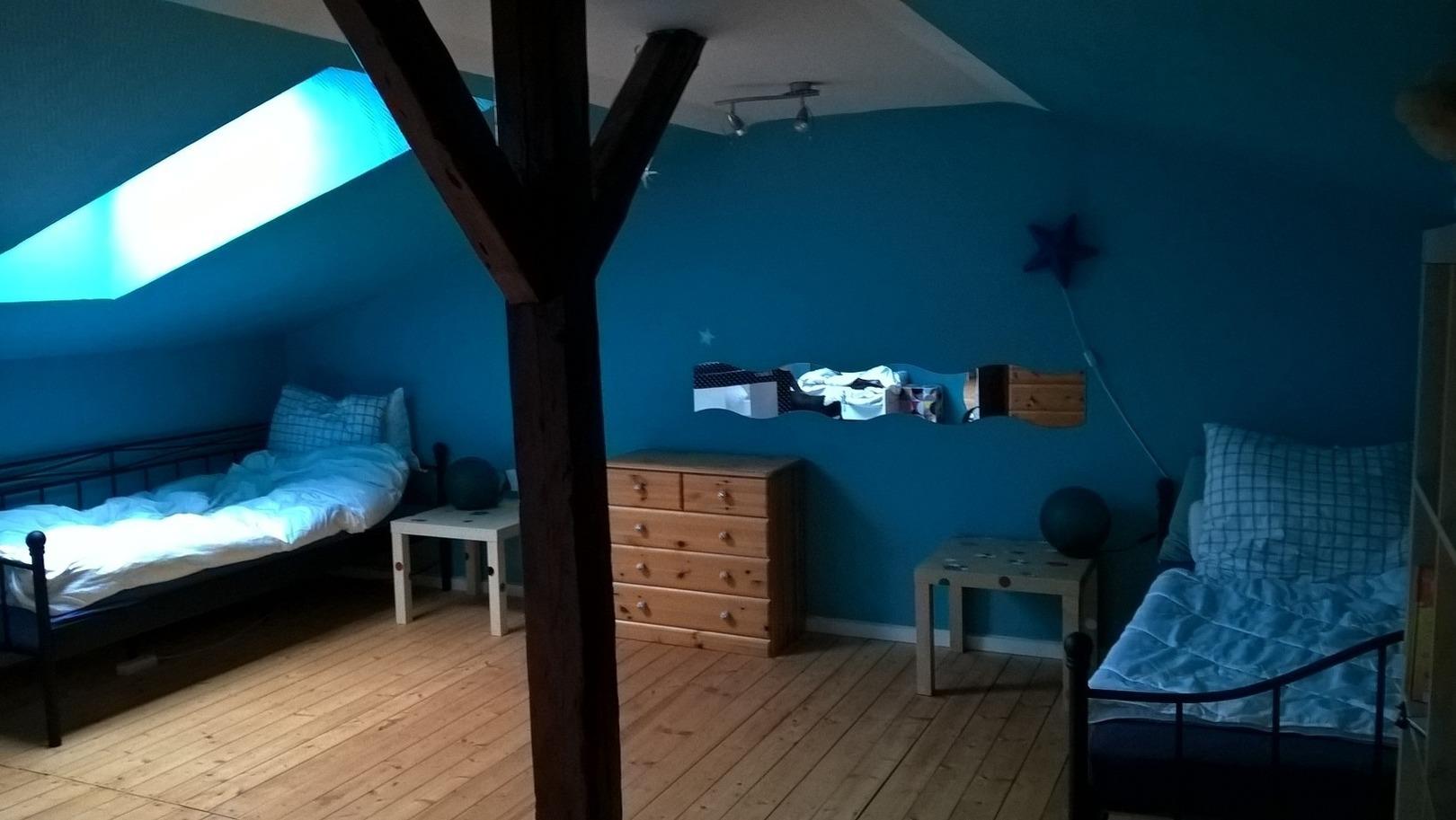 Das freundliche und helle Kinderzimmer liegt im 1. Stock und ist mit fast 30m2 so großzügig bemessen, dass sich Ihre Kinder beim Spielen richtig ausbreiten können. Playmobil, Lego und diverse Kinderbücher sind bereits vorhanden und können gerne benutzt werden. In den3 gemütlichen Betten (90 x 200 cm) werden Ihre Kinder gut schlafen. Bei Bedarf stehen ein weiteres Jugendbett (ca. 165 x 75 cm) sowie ein Klappbett (ca. 80 x 190 cm) zur Verfügung. Bei Bedarf steht auch ein Baby-Reisebett (ohne Bettzeug) zur Verfügung.