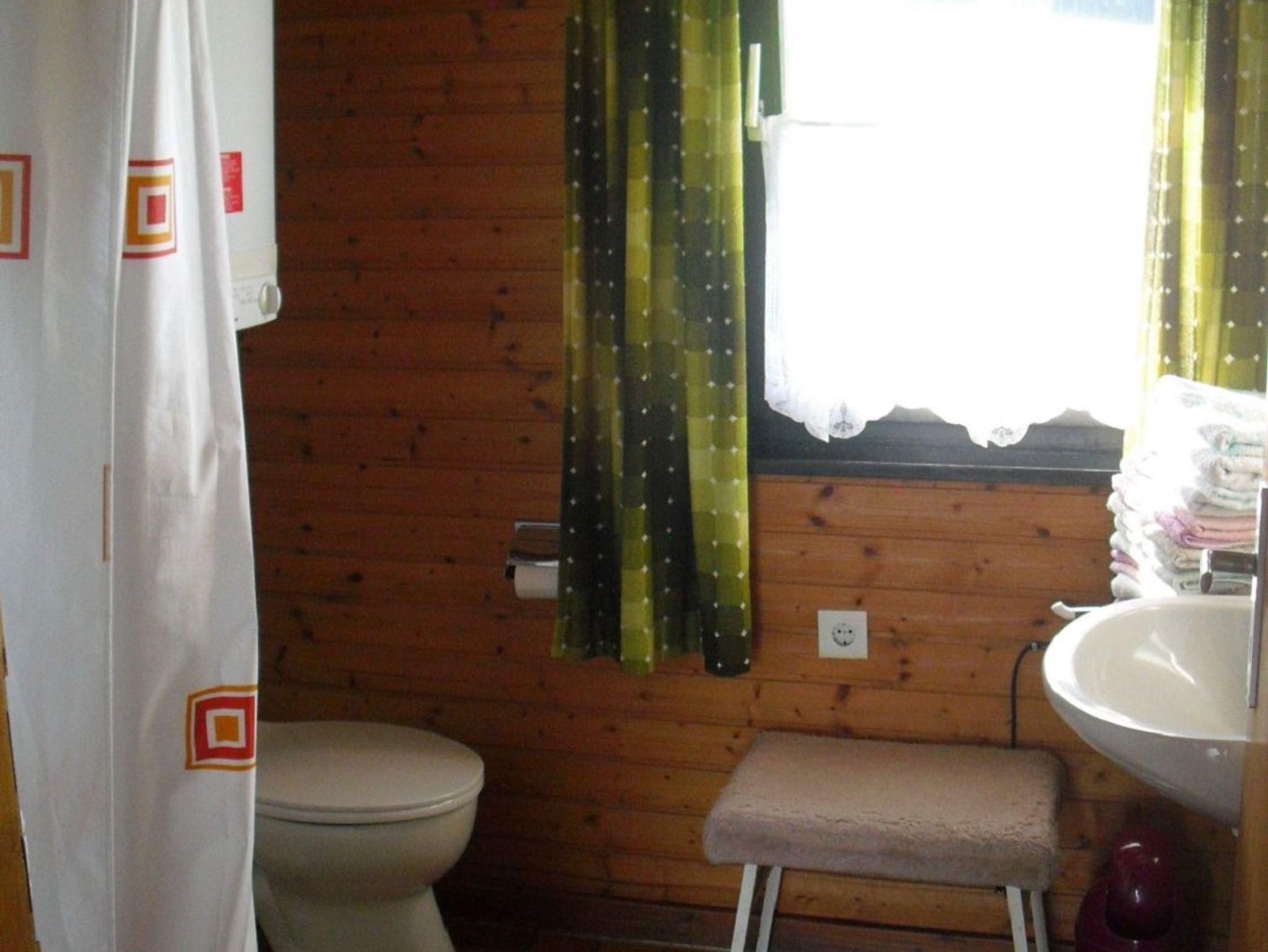 Das Bad verfügt über eine Dusche, ein WC, einen Haartrockner und ein Waschbecken. Handtücher liegen für Sie bereit.