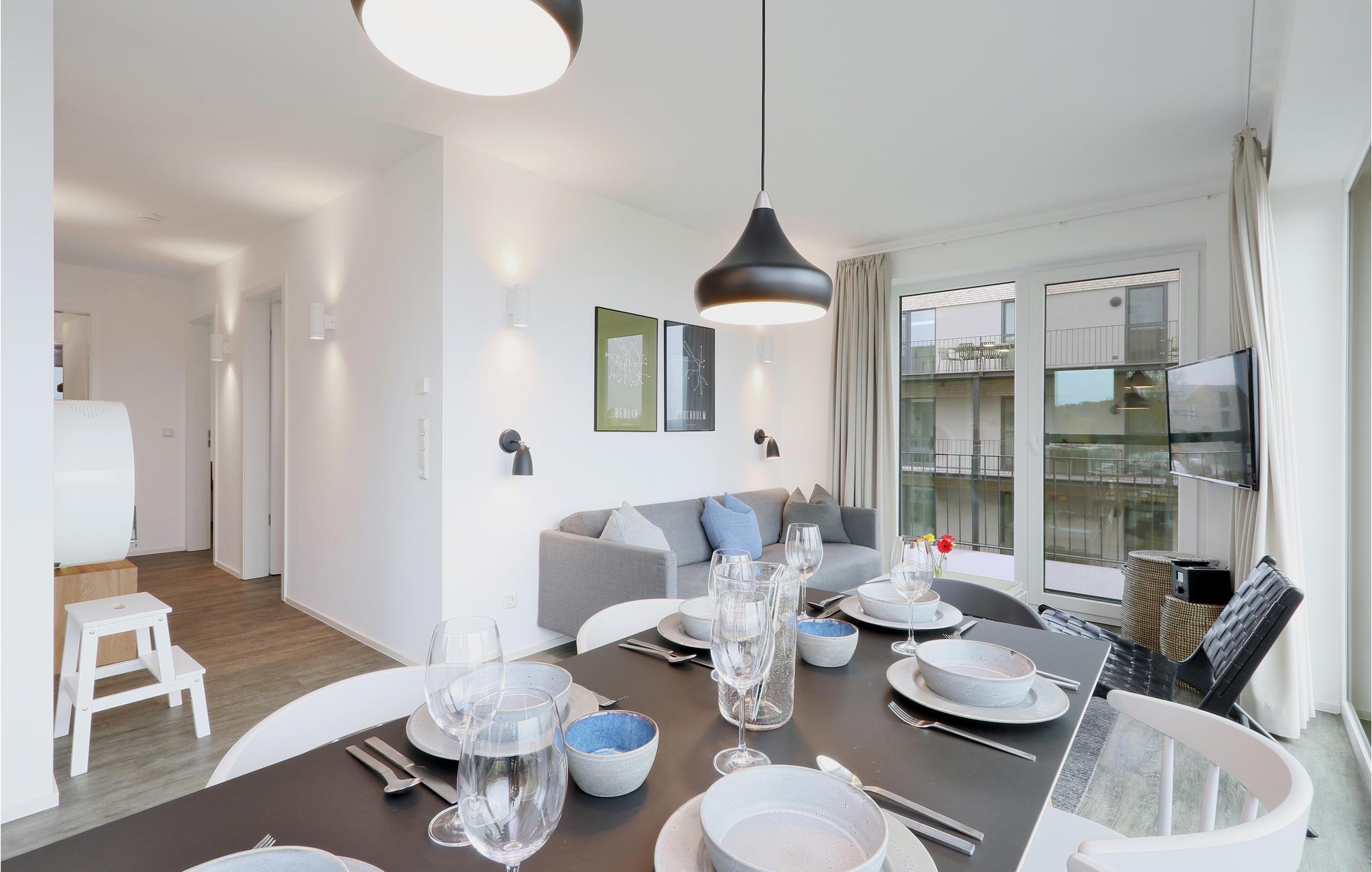 Willkommen in Ihrem Apartment, das Ihnen für bis zu 6 Personen ein gemütliches, wohnliches Ambiente mit Einrichtung im skandinavischen Design bietet. Sie können auf dem Balkon frische Luft schnappen. In der offenen Küche gelingt Ihnen beim Kochen für Freunde oder die Familie jedes Rezept.