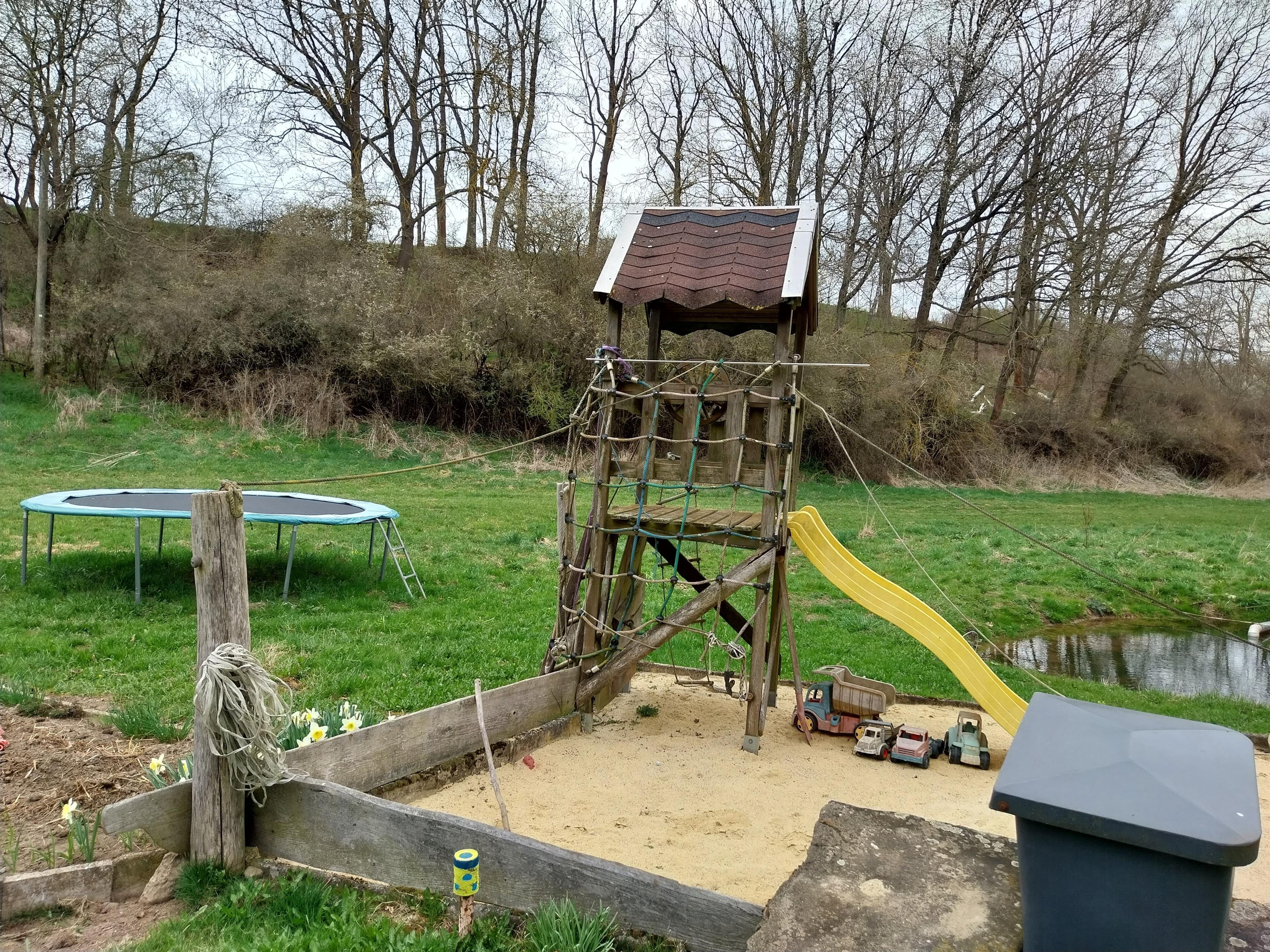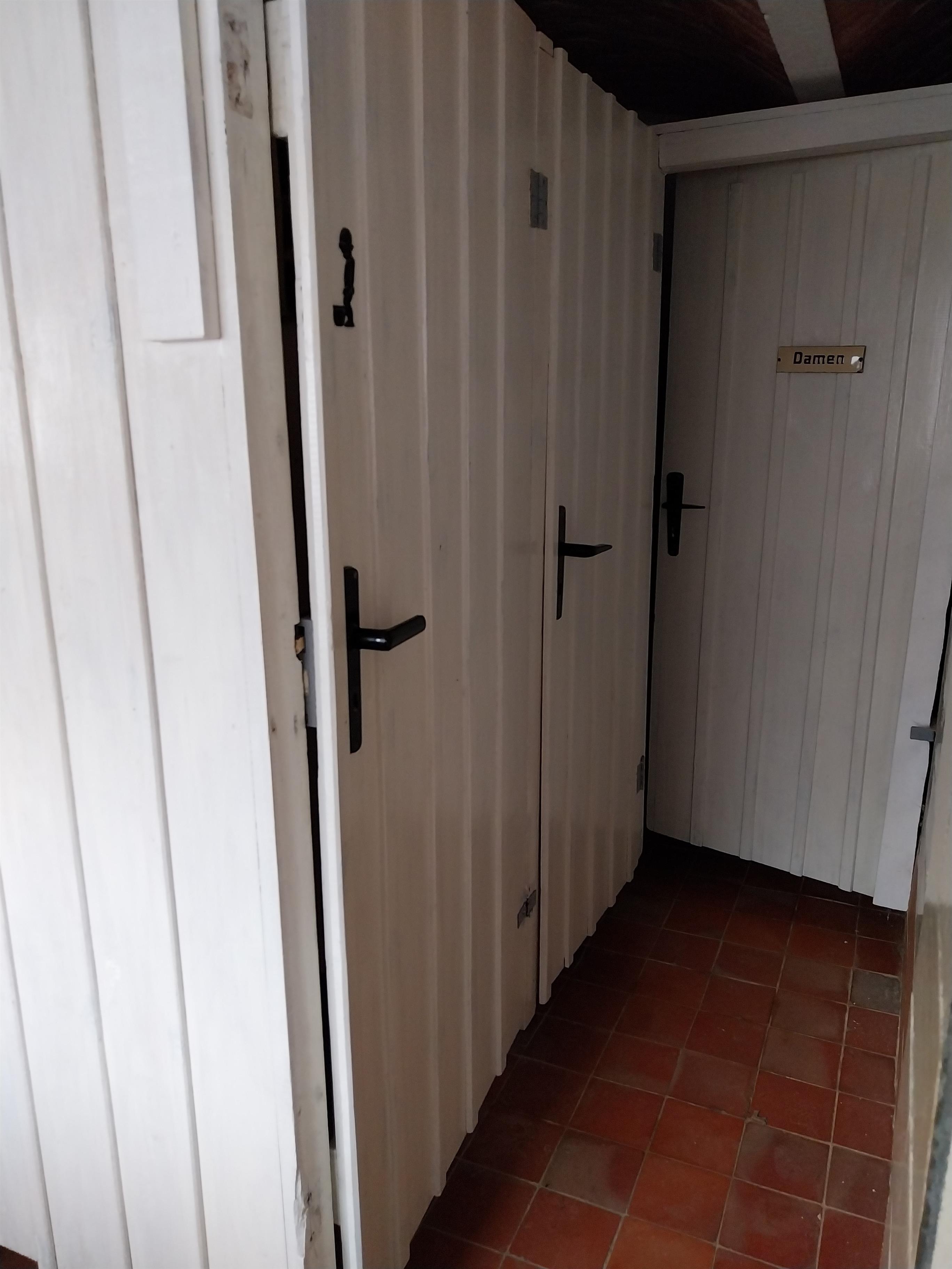 Die Dusche und das WC befinden sich auf unserem Hofgelände. Dies ist ca. 100 m vom Wohnwagen entfernt.