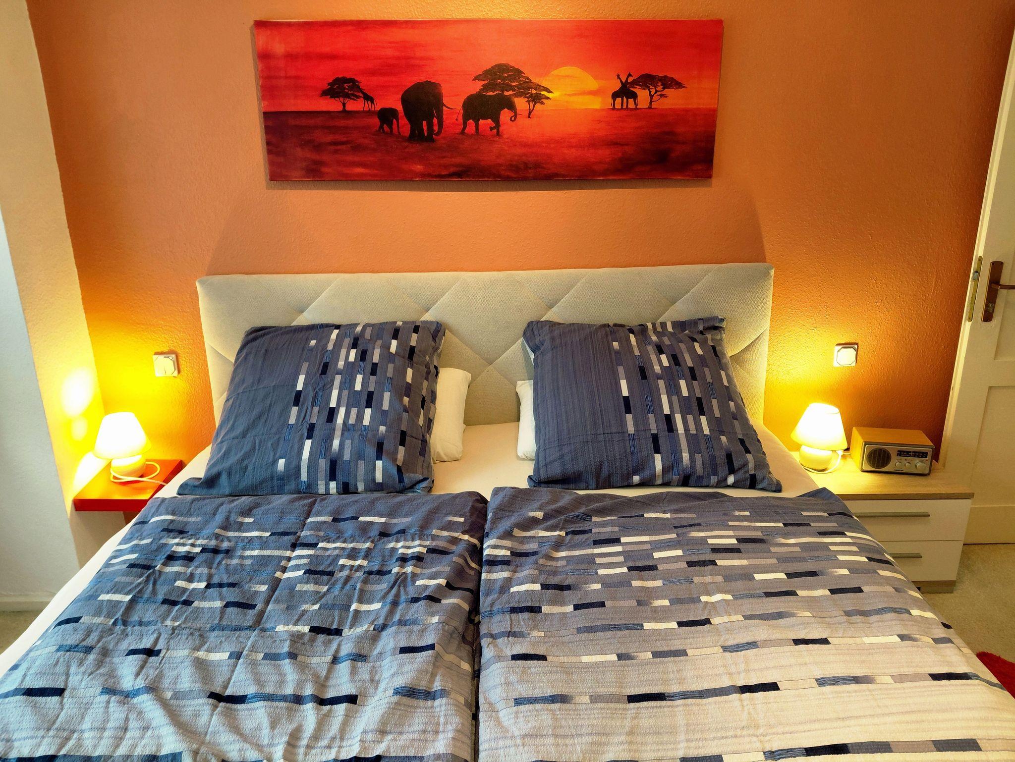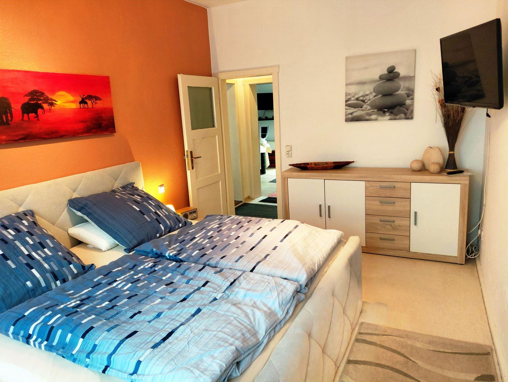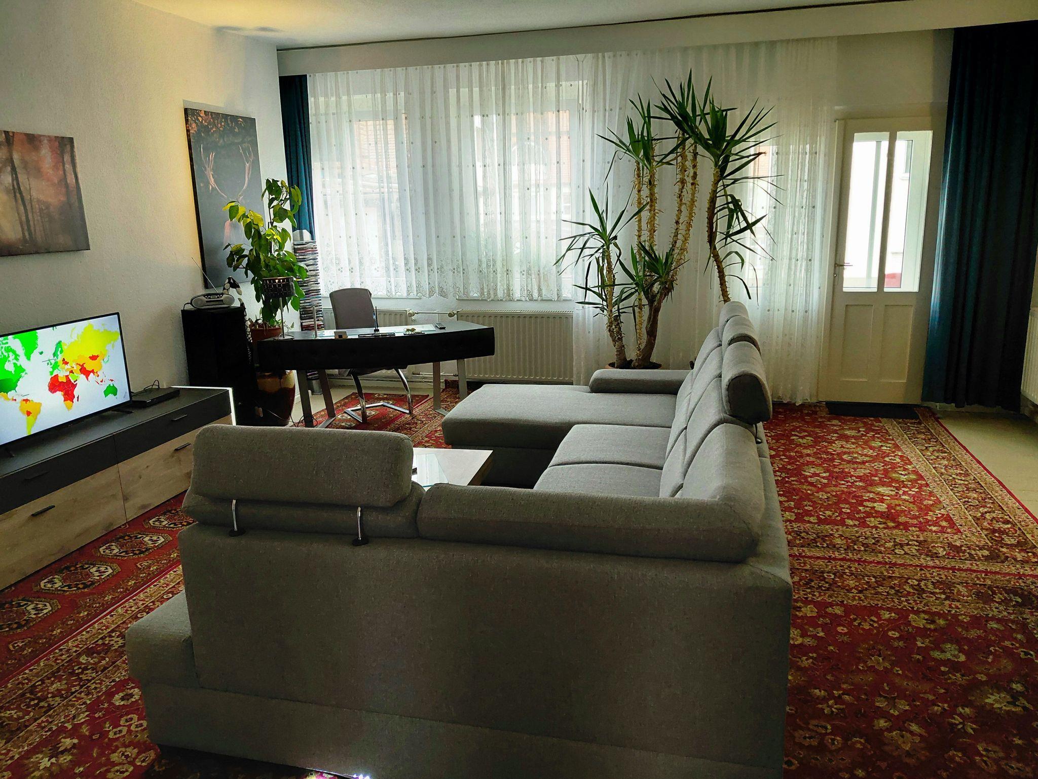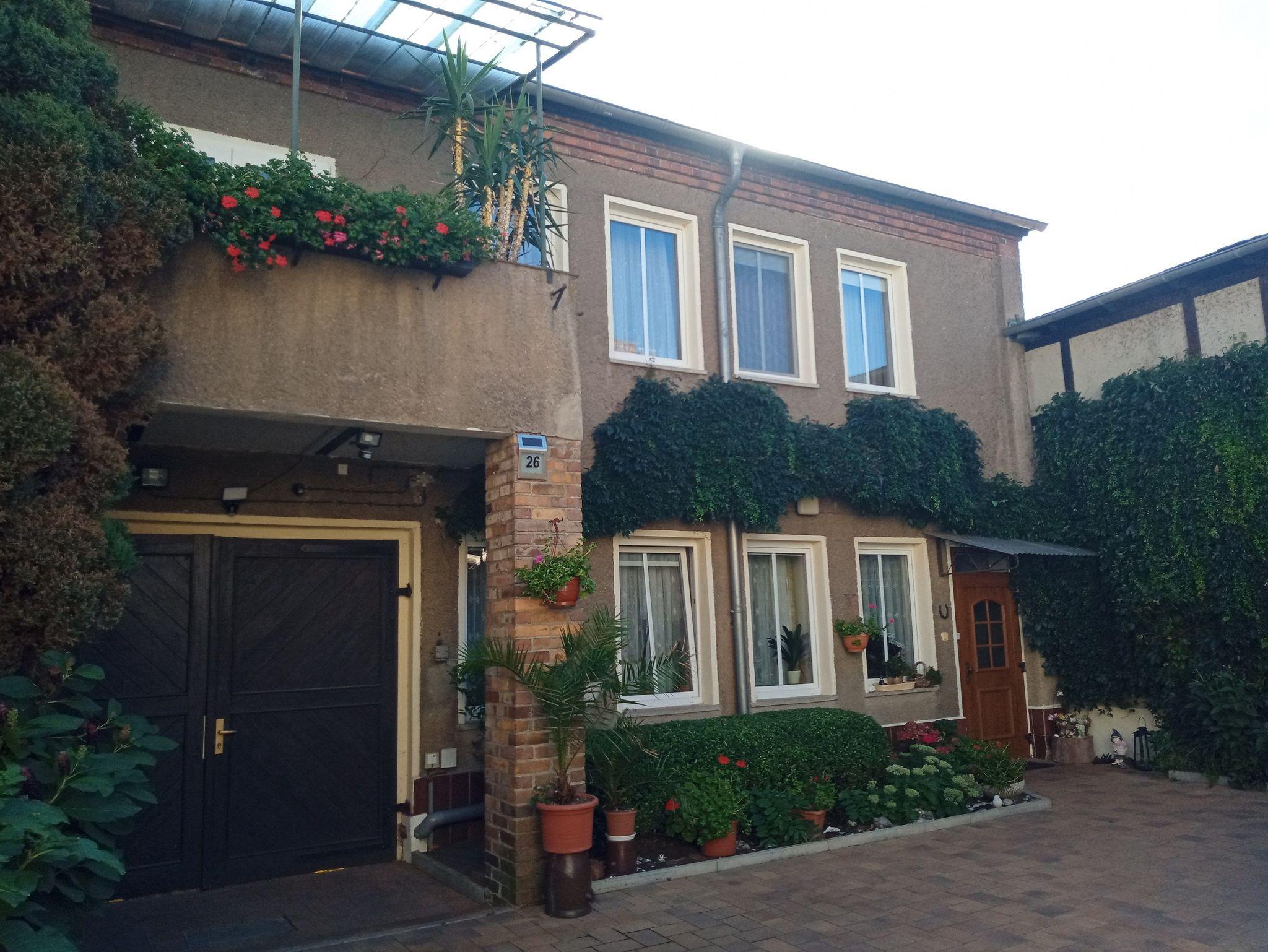 Die Gästewohnung befindet sich in der gesamten ersten Etage eines Zweifamilienhauses, welche über einen geräumigen Treppenaufgang und einem zusätzlich verschließbaren seperaten Eingang zu erreichen ist. Die Ferienwohnung verfügt über 5 Räume (Wohnzimmer, zwei Schlafzimmer, Küche, Bad - siehe Grundriss in der Galerie).