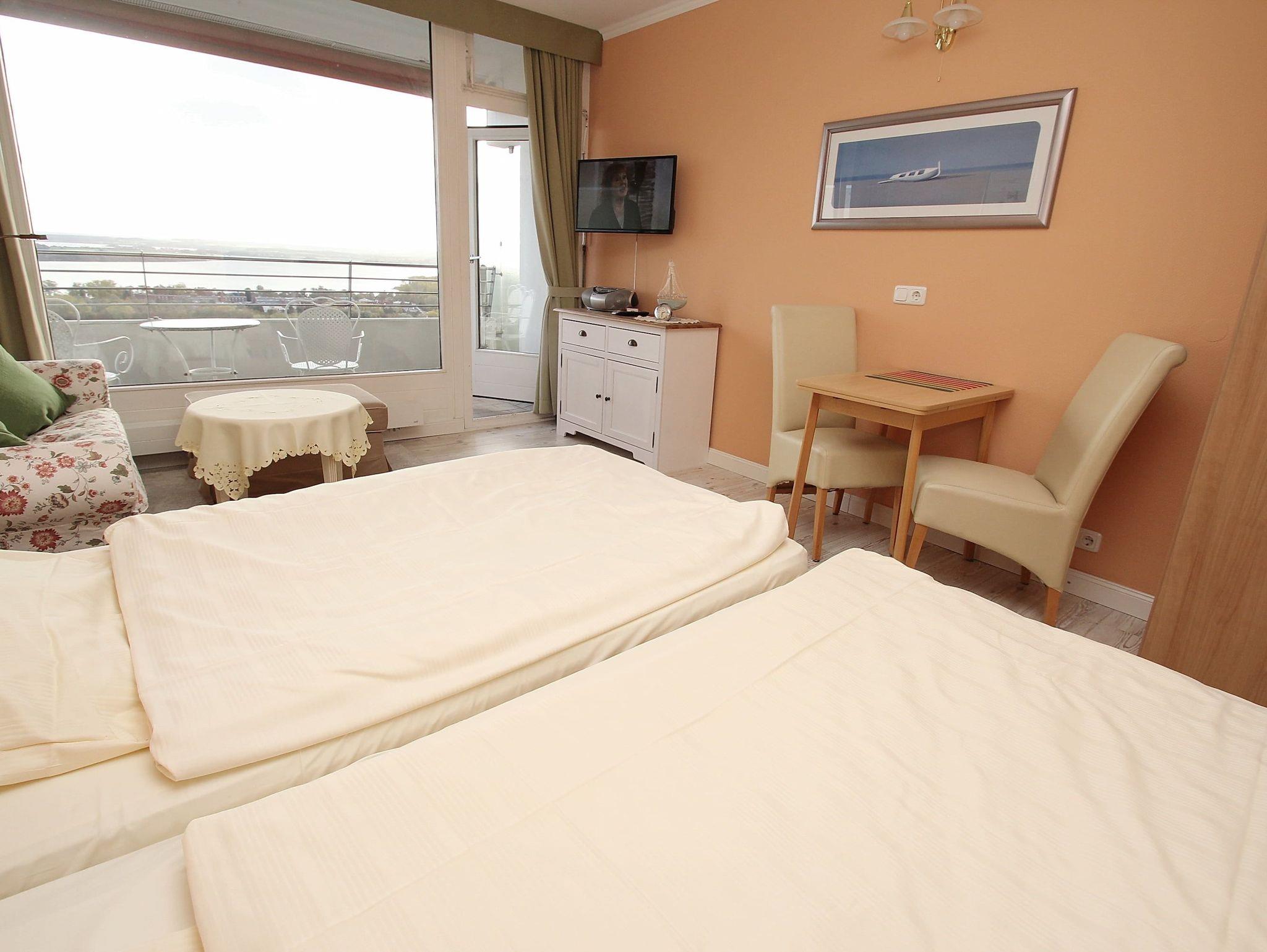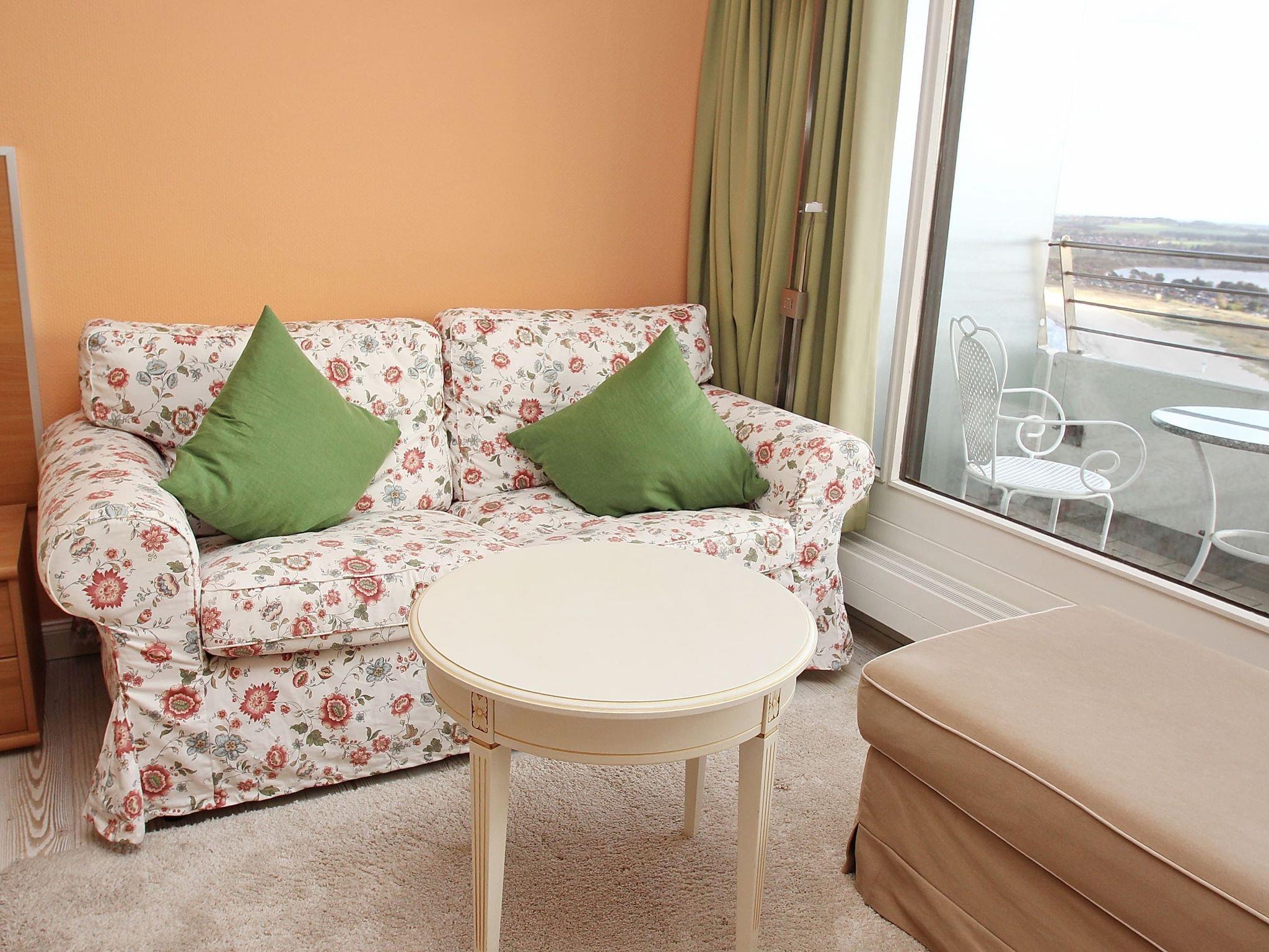 Dieses ansprechende Appartement ist exklusiv und komfortabel eingerichtet und lädt zu einem erholsamen Urlaubsaufenthalt an der Ostsee ein. Frische, warme Farben beleben das Ambiente dieser schönen Wohnung. Im Wohnraum befinden sich zwei komfortable zusammenstehende Einzelbetten (je 90 cm x 200 cm), ein Kleiderschrank und eine bequeme Couch mit Tisch. Gegenüber stehen eine schicke Anrichte und eine Essecke mit Stühlen. Die Küche ist im Flur integriert. Das helle und moderne Duschbad geht vom Flur ab. Vom Balkon genießen Sie einen traumhaften Blick auf die Mecklenburger Bucht, die Pötenitzer Wiek und auf die Trave mit ein- und ausfahrendem Schiffsverkehr.