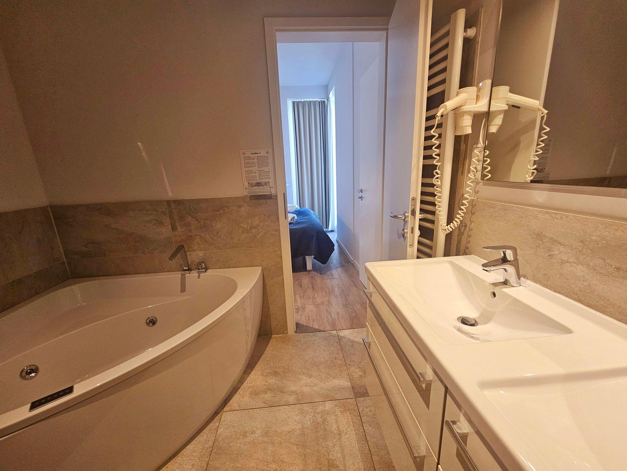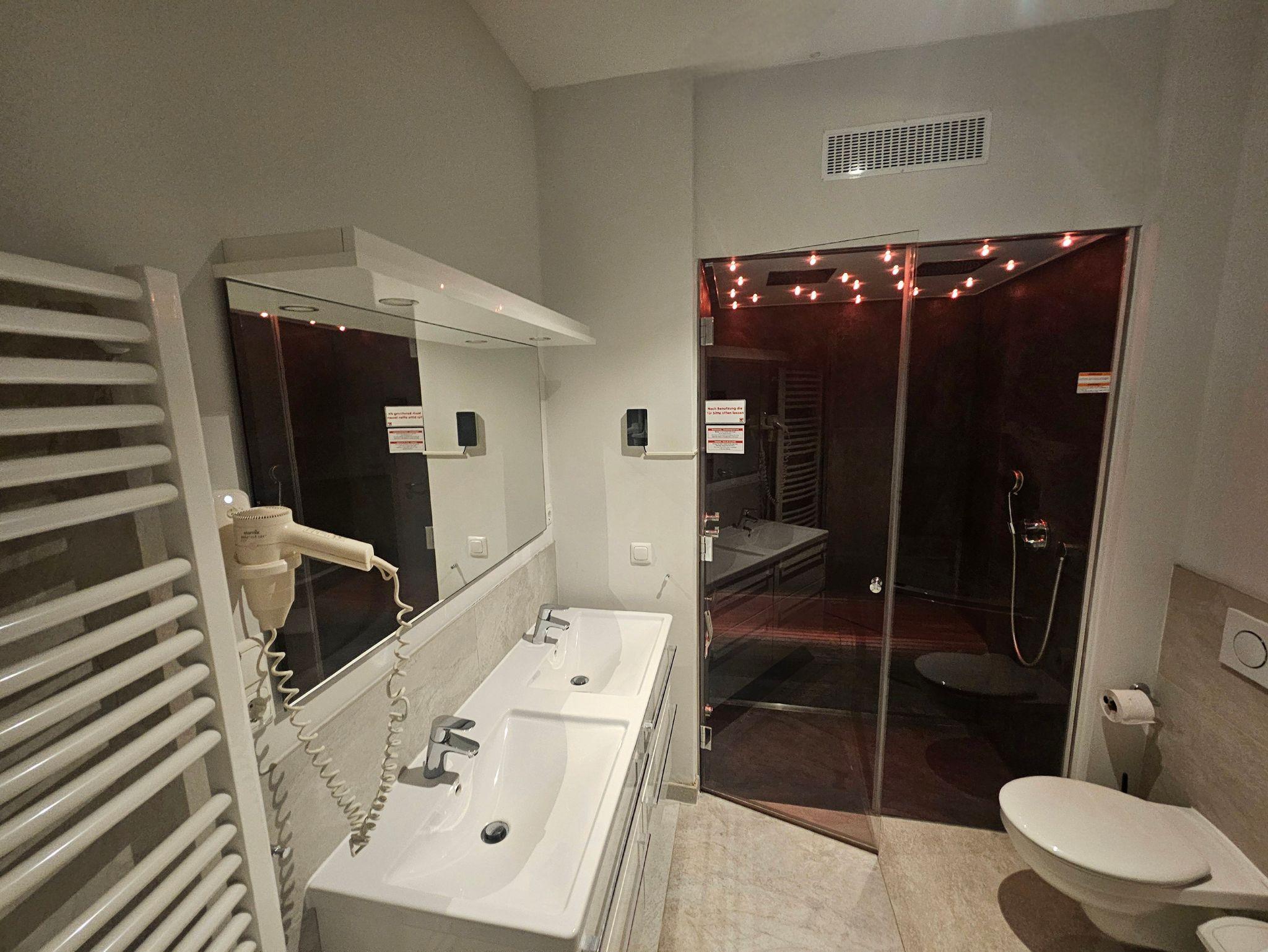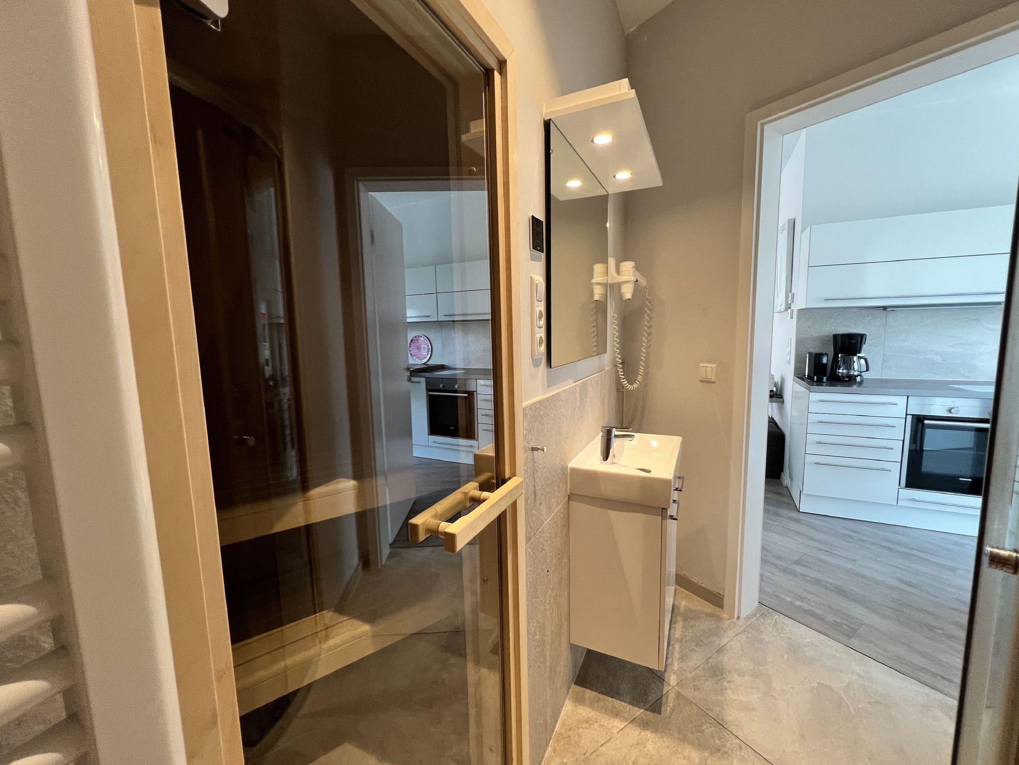 Die Wohnung ist stilvoll, hochwertig und modern eingerichtet. Ein besonderes Highlight ist ihr persönlicher Wellnessbereich mit Sauna, Whirlpool und Dampfbad mit integrierter Doppel-