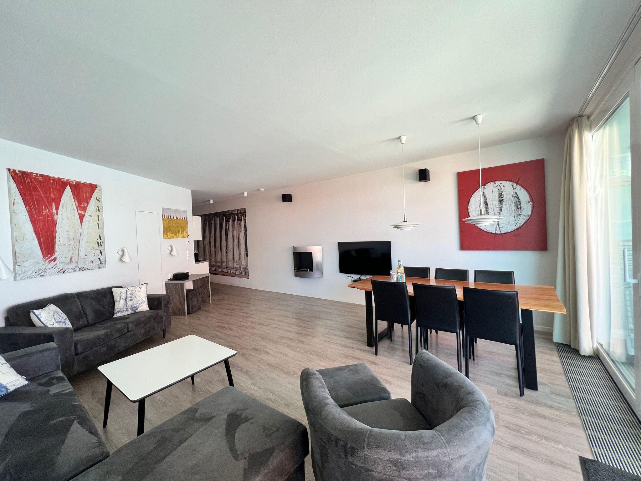 Diese exklusive Ferienwohnung bietet nicht nur großzügigen Raum, sondern auch ganztägig Sonne auf zwei großen Terrassen, die zum Entspannen und Genießen der herrlichen Aussicht einladen.