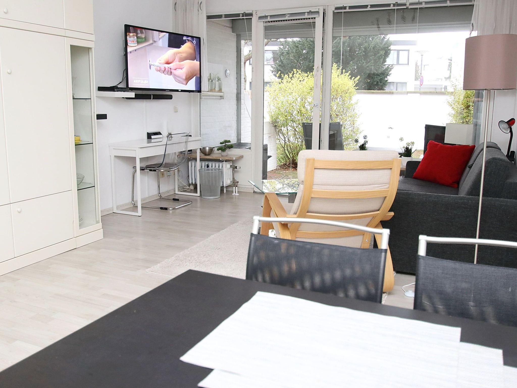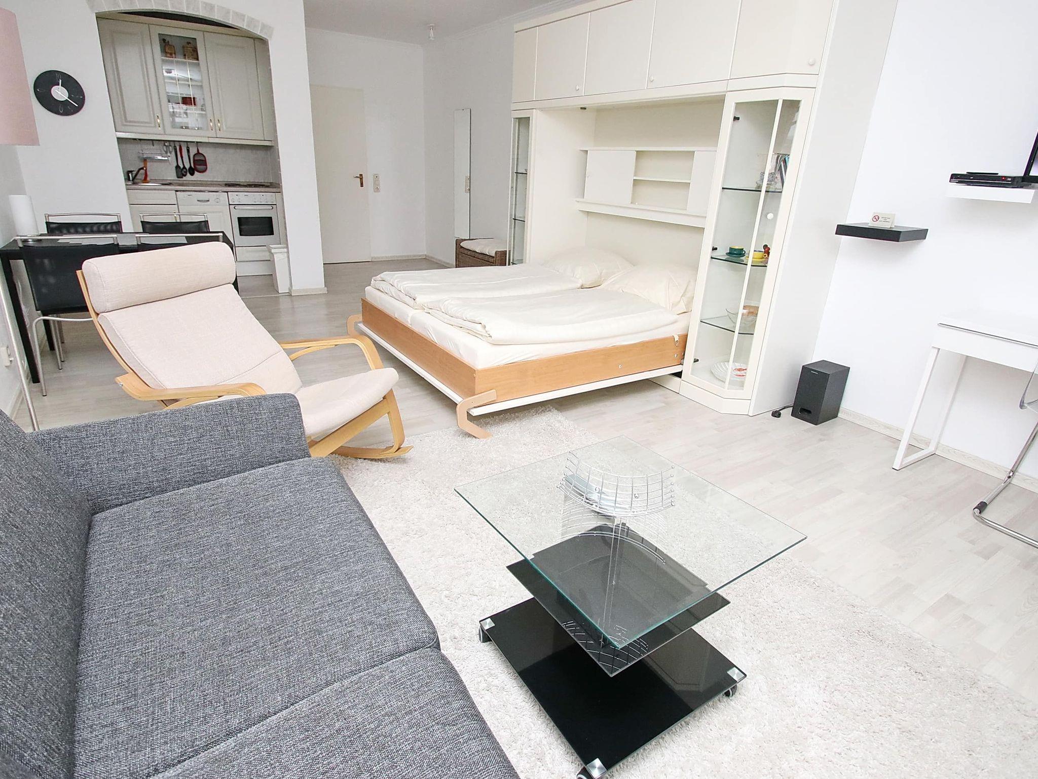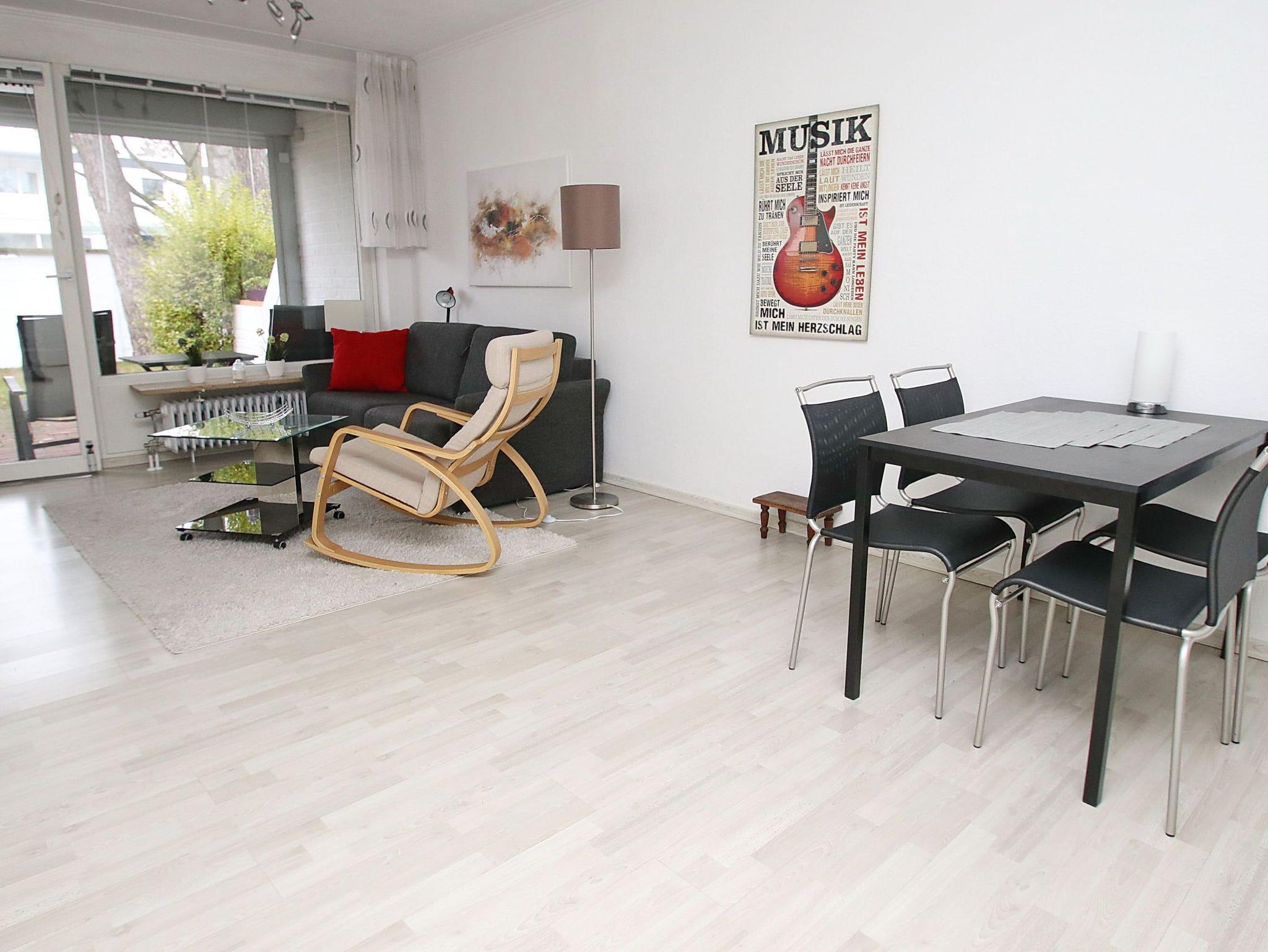 In einer gepflegten, ruhigen Wohnanlage erwartet Sie hier ein sehr schönes Appartement mit viel Komfort für Ihren Urlaub in strandnaher Lage. Der helle, gemütliche Wohnbereich besteht aus einer bequemen Couch mit einem Relaxsessel und einem Tisch. Des Weiteren befinden sich im Wohnraum ein kleiner Schreibtisch sowie ein Doppelschrankbett (2x 80 cm x 195 cm). Gegenüber der Einbauküche steht ein Esstisch mit vier Stühlen. Das neuwertige Bad geht separat vom Flur mit Kleiderschrank und Garderobe ab. Durch die Terrassentür geht es zur überdachten, sonnigen Terrasse mit Gartenmöbeln. Hier genießen Sie die frische Seeluft und schauen in die gepflegte Grünanlage. Rundum ein Appartement zum Wohlfühlen.