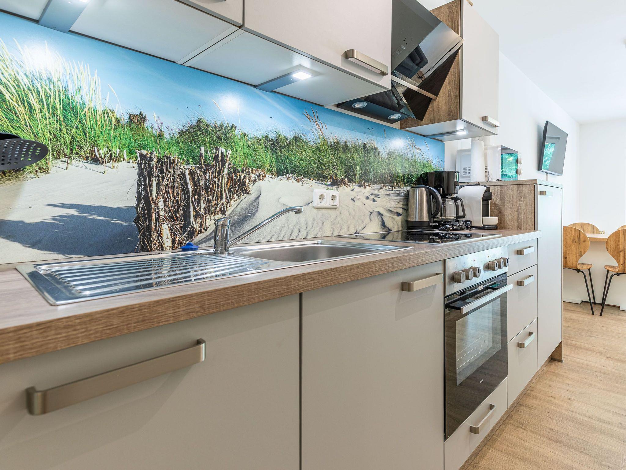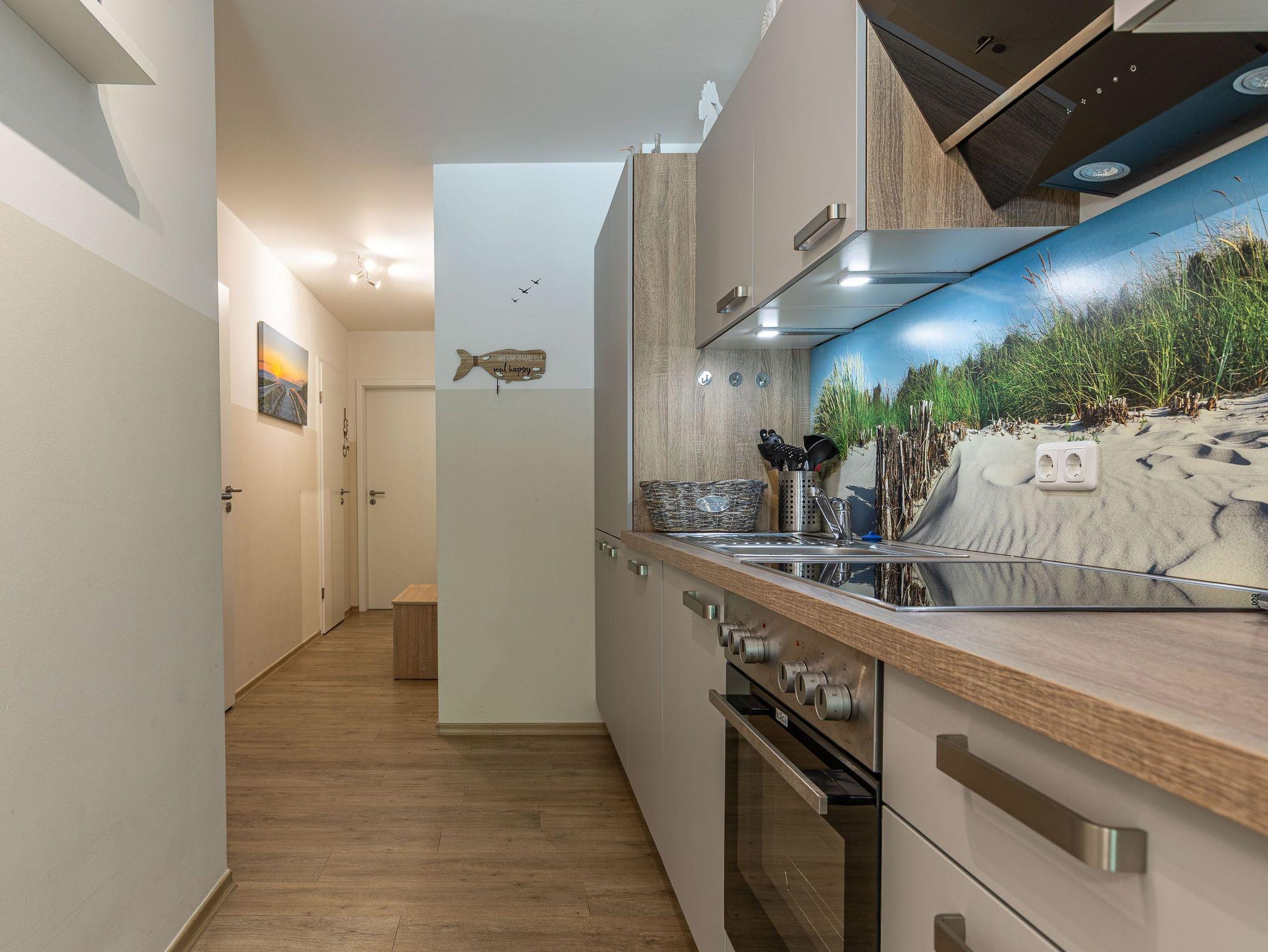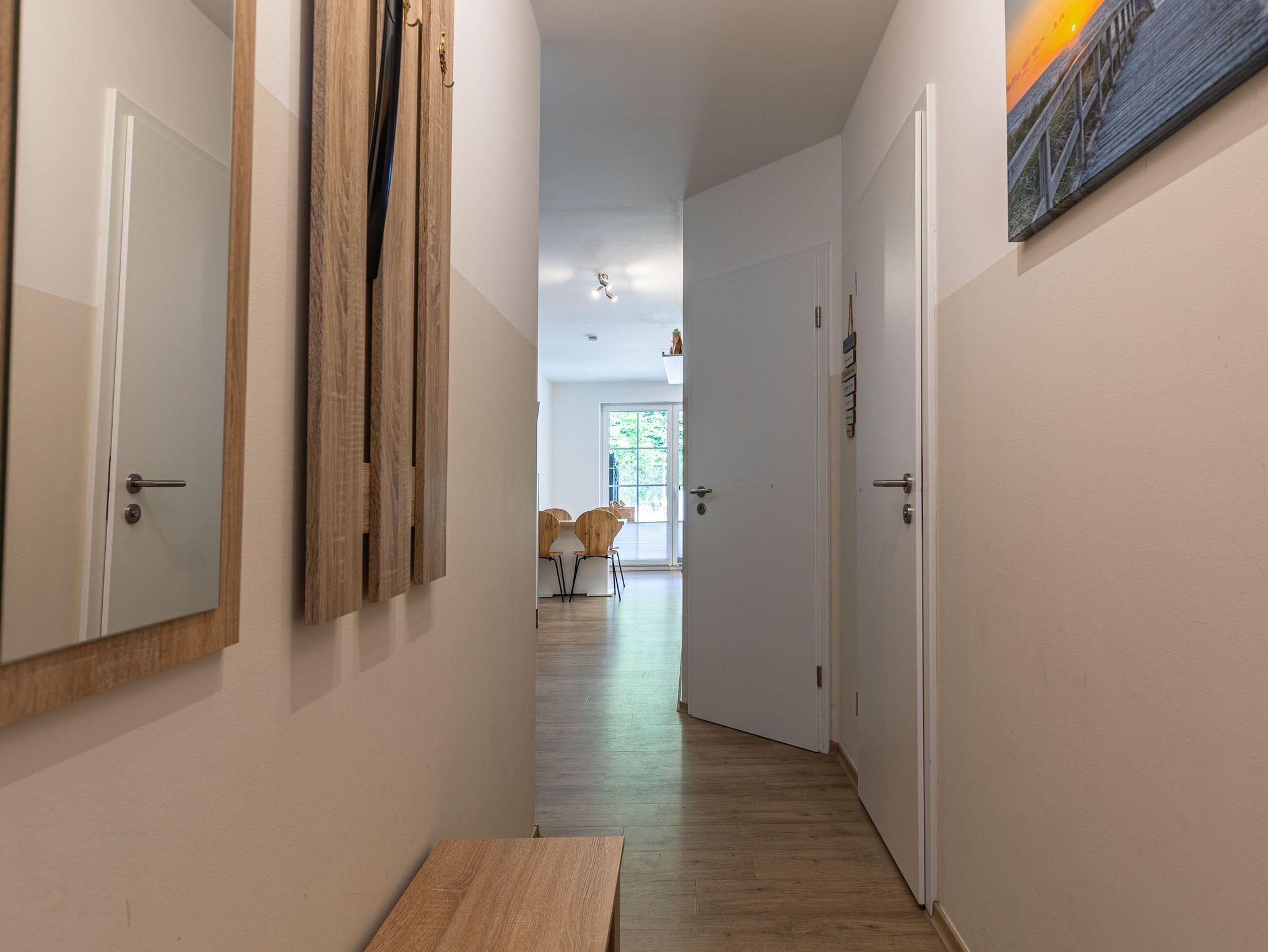 Freuen Sie sich auf diese exklusive Ferienwohnung mit reichlich Komfort. Die Ferienwohnungen im Haus Aaron sowie das Appartementhaus wurden im Jahr 2022 neu erbaut. Im hellen, und modern eingerichteten Wohnzimmer erwartet Sie eine gemütliche Couchgarnitur, einen Esstisch mit eleganten Stühlen, sowie eine komfortable offene Küche mit einem Geschirrspüler. Vom Wohnzimmer gelangen Sie auf die große Sonnen-Terrasse mit Ihrem privaten Strandkorb. Vom Flur dieser modernen Ferienwohnung erreichen Sie das große Schlafzimmer, welches über einen geräumigen Kleiderschrank sowie zwei Einzelbetten (90cmx200cm), diese können aber auch auseinander geschoben werden, verfügt. Im zweiten Schlafzimmer erwartet Sie ebenfalls ein Kleiderschrank und sowie ein Doppelbett (160cmx200cm). Die Ferienwohnung verfügt zusätzlich über zwei moderne Bäder, eins mit Dusche [&] WC und das zweite Badezimmer mit einer Badewanne [&] WC. Genießen Sie Ihren Urlaub in tollen Ambiente und mit exklusiver Ausstattung. Ihren PKW können Sie auf dem großen Grundstück auf der privaten Parkfläche abstellen. Eine Wallbox zum laden von E-Autos ist ebenfalls auf dem Gelände vorhanden und gegen Gebühr buchbar. Auch Ihr Vierbeiner ist in dieser Ferienwohnung herzlich Willkommen.