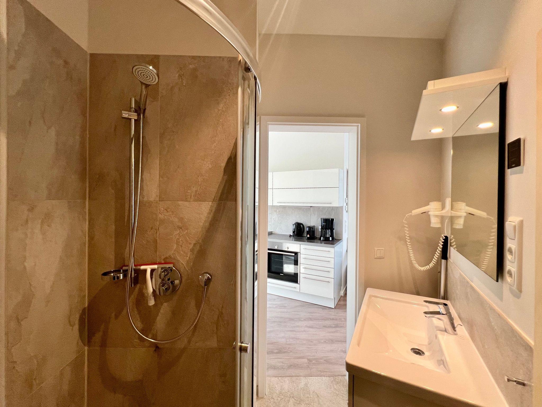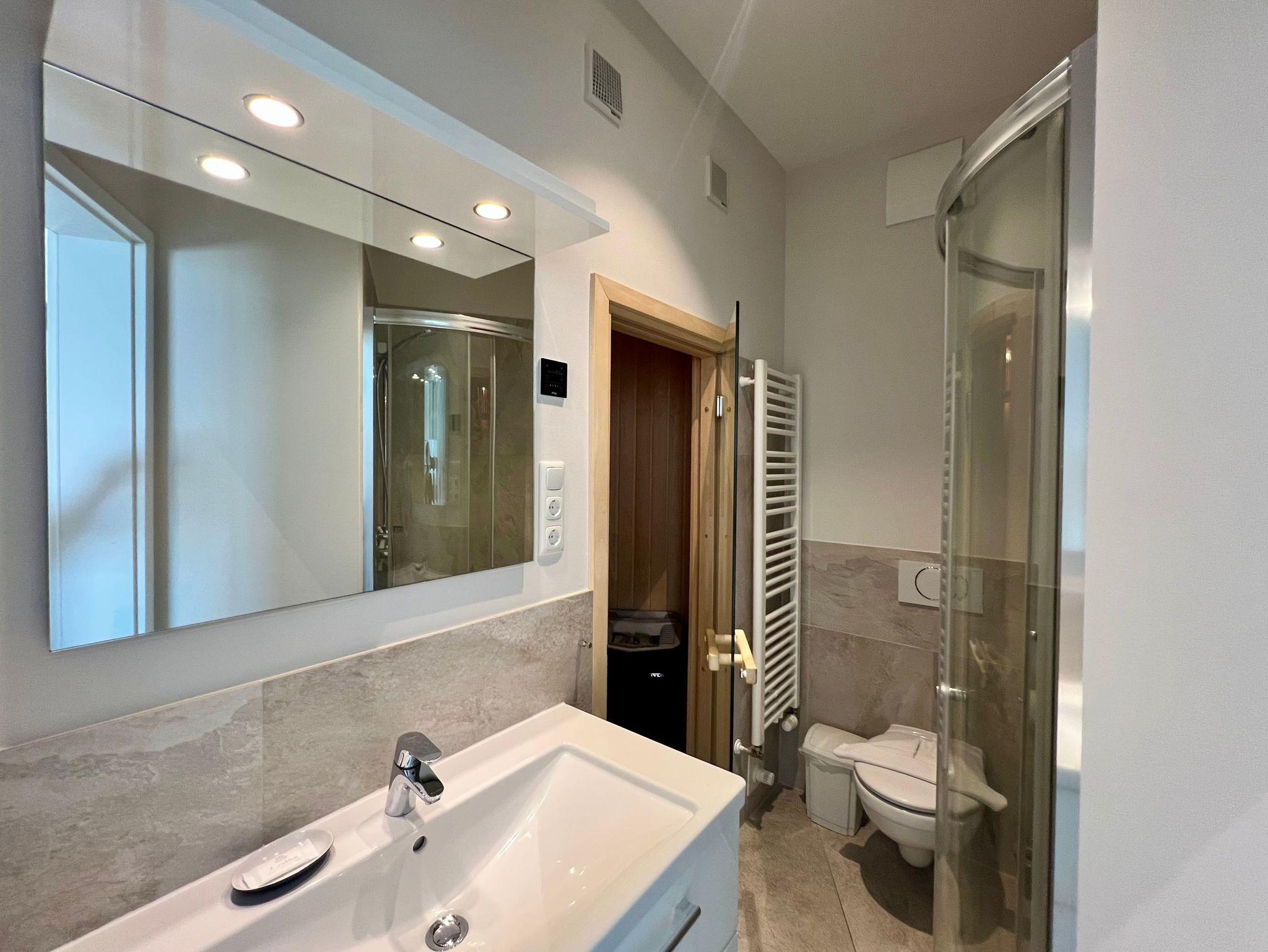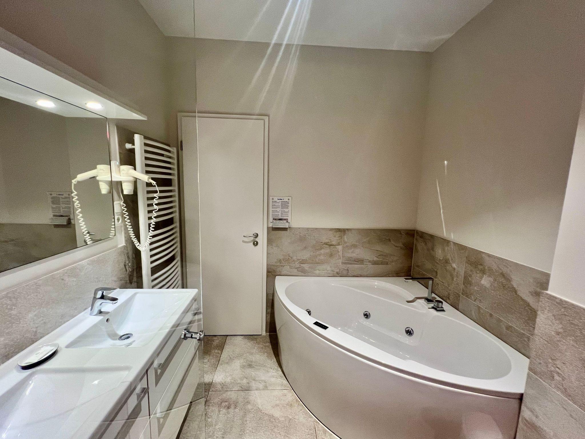 Die Wohnung ist stilvoll, hochwertig und modern eingerichtet. Ein besonderes Highlight ist ihr persönlicher Wellnessbereich mit Sauna, Whirlpool und Dampfbad mit integrierter Doppel-