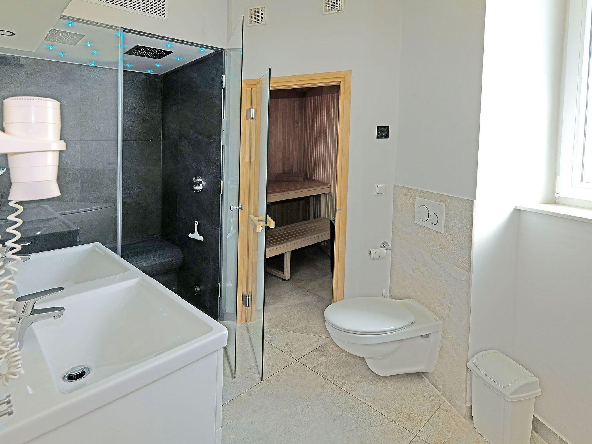 Die Wohnung ist stilvoll, hochwertig und modern eingerichtet. Ein besonderes Highlight ist ihr persönlicher Wellnessbereich mit Sauna, Whirlpool und Dampfbad mit integrierter Doppel-