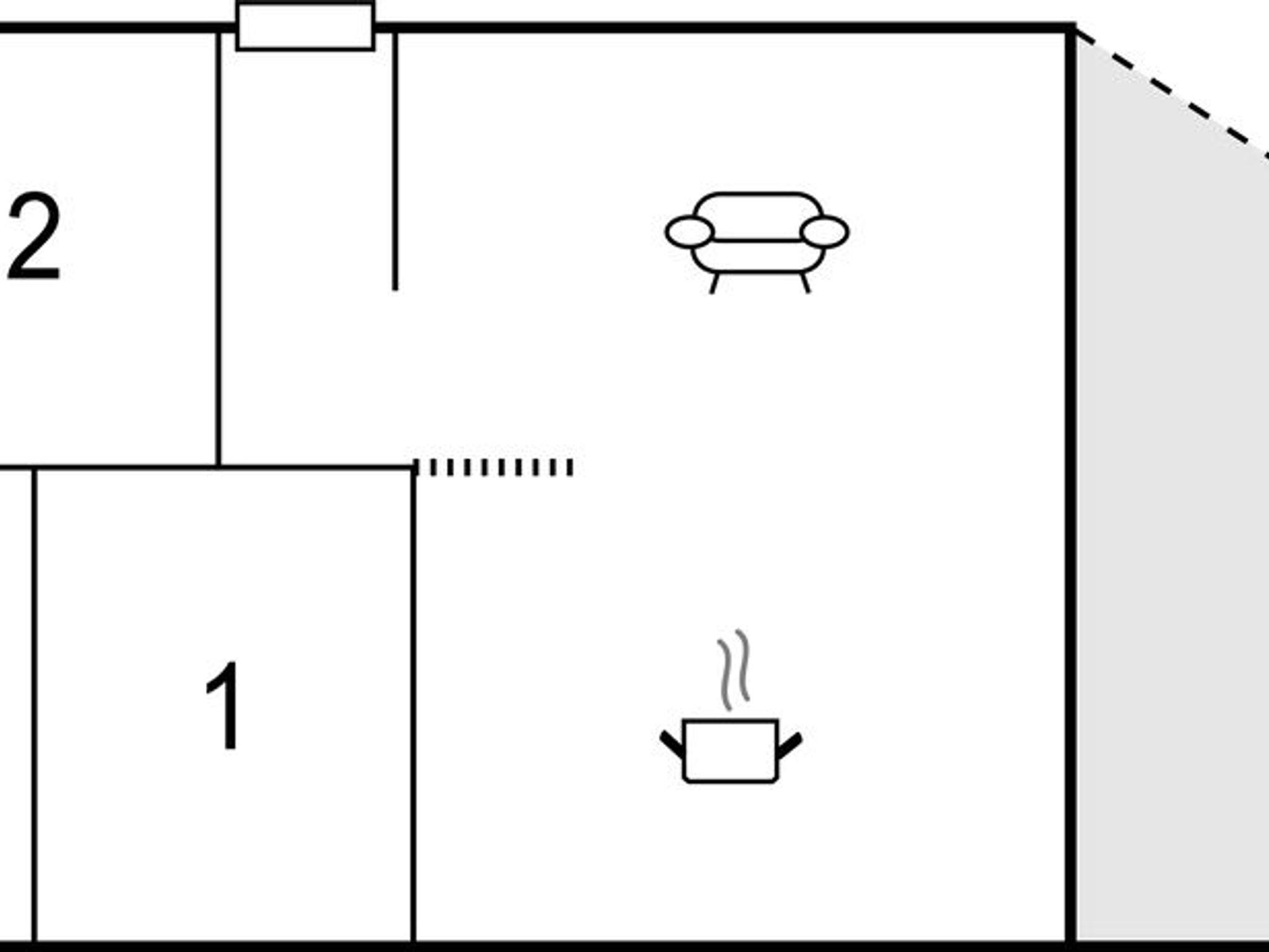 Das Wohnzimmer und die Küche liegen in offener Verbindung miteinander. Im Wohnzimmer finden Sie einen Bioethanolofen sowie den Ausgang auf die Terrasse. Das Ferienhaus bietet ausreichend Platz für bis zu 4 Personen und verfügt über 2 Schlafzimmer, ein Bad mit Dusche und Sauna sowie eine voll ausgestattete Küche.