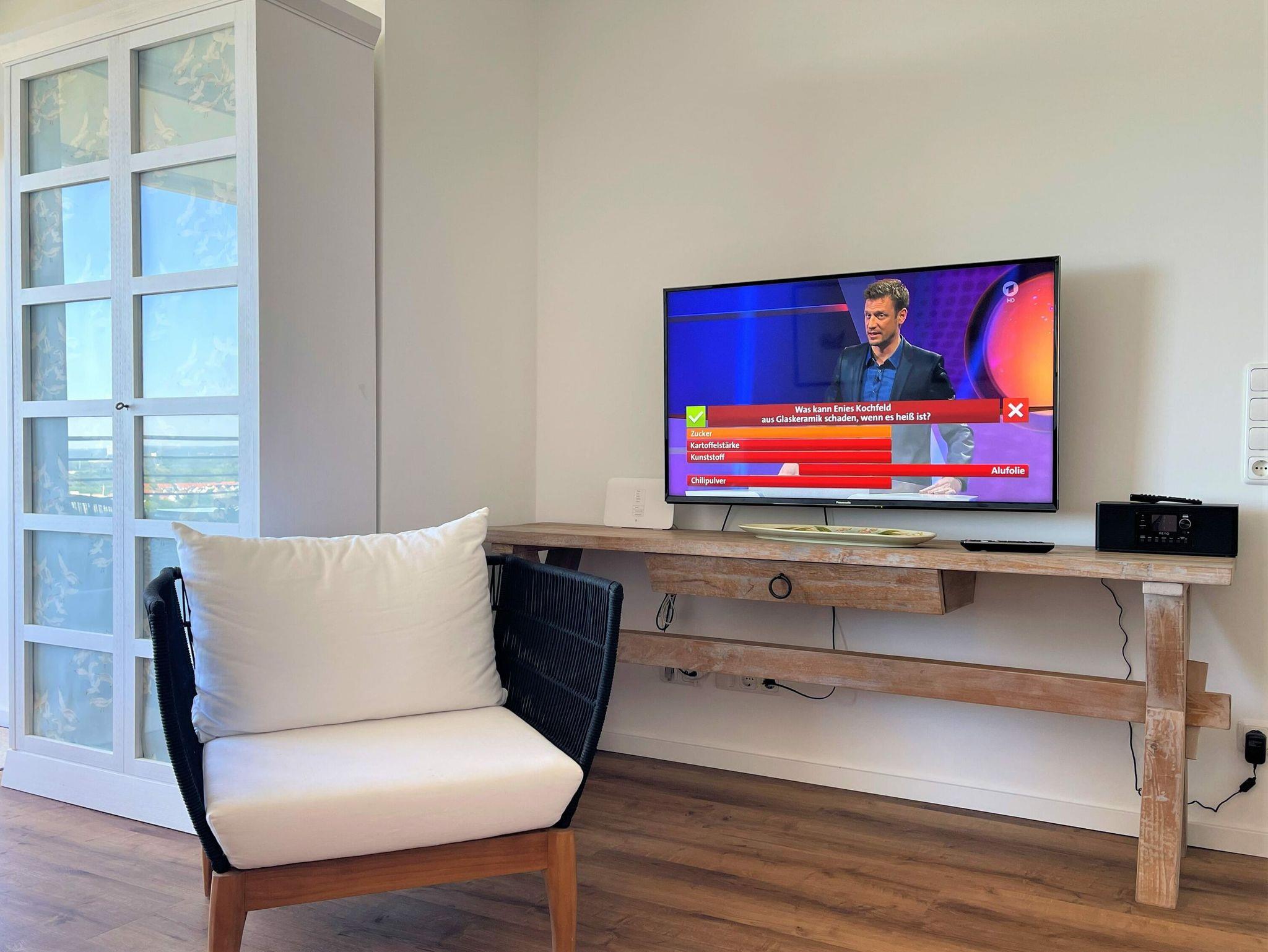 Dieses komfortabel und elegant eingerichtete Appartement ist im Jahr 2022 frisch saniert worden und bietet Ihnen ein Wohnerlebnis für höchste Ansprüche. Genießen Sie den umwerfenden Blick auf die Lübecker-Bucht direkt vom Wohnzimmer und vom Schlafzimmer. Die Ferienwohnung lädt zum Wohlfühlen und Entspannen fern des Alltags, direkt am Strand ein. Das Wohnzimmer besteht aus einer großen gemütlichen Schlafcouchgarnitur (160cm x 200cm) mit Tisch, einem maritimen Treibholz-Sideboard, einem großen Smart-TV, sowie einem Esstisch mit 4 modischen Stühlen. Im Schlafzimmer befindet sich ein gemütliches Boxspringbett (180 cm x 200 cm), ein großer Kleiderschrank , sowie ein Smart-TV. In der offenen Küche finden Sie unteranderem einen Geschirrspüler sowie einen 4 Flammenherd vor. Das moderne Duschbad, erreichen Sie vom Eingangsbereich aus. Den großen Balkon mit herrlichem Blick auf die Ostsee und den Strand erreichen Sie vom Wohn- und Schlafraum aus. Diese exklusive Ferienwohnung ist in hellen Farbentönen und modern mit maritimen Akzenten eingerichtet.