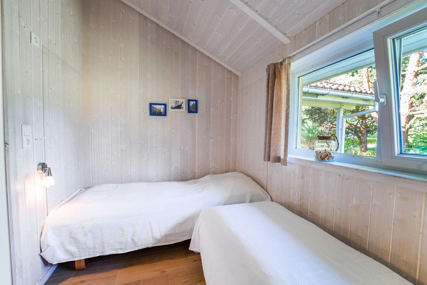 Zwei Schlafzimmer sind mit zwei Einzelbetten (je 80 x 200) ausgestattet, die zu Doppelbetten zusammengeschoben sind. Das dritte Schlafzimmer ist mit 2 getrennten Einzelbetten (80 x 200) ausgestattet. Jedes Schlafzimmer bietet einen geräumigen Kleiderschrank für Deine Urlaubsgarderobe.
