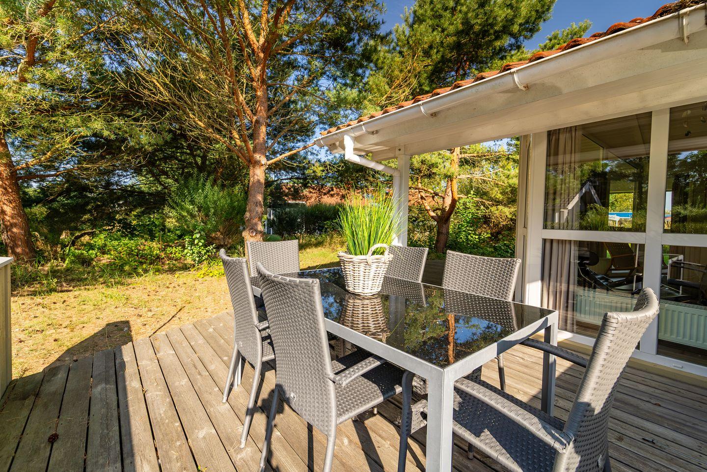 Die riesige Terrasse ist ein echtes Highlight! Ausgestattet mit Gartenmöbeln und einem Grill ist sie der perfekte Ort für gesellige Grillabende und entspannte Sonnenstunden. Du kannst mit Deinen Liebsten den grandiosen Blick über die Dünen bis hin zur Ostsee in aller Ruhe genießen!