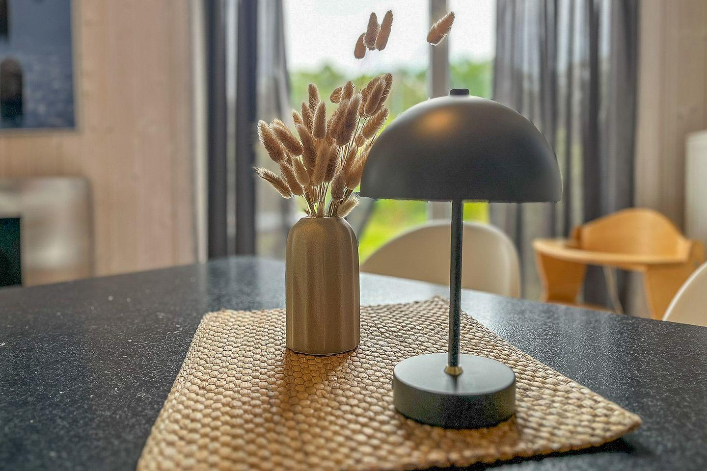 Der offene Wohn- und Essbereich ist der perfekte Ort, um zusammenzukommen. Ein modernes Sofa und ein einladender Essbereich schaffen eine gemütliche Atmosphäre. Der Kaminofen (Bio-Ethanol) sorgt für wohlige Wärme, während der Flachbild-TV, die HiFi-Anlage mit Radio, CD-Spieler und Bluetooth sowie der DVD-Player für Unterhaltung sorgen. Große Fenster mit Vorhängen garantieren eine angenehme Privatsphäre.