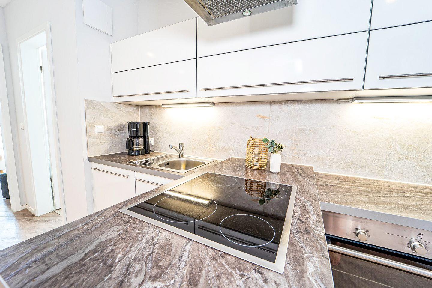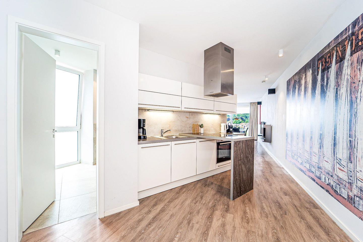 Auf rund 82 m² im 1. Stock erwartet Dich ein hochwertig ausgestattetes Zuhause mit Wohn-Essbereich, offener Küche, zwei separaten Schlafzimmern, einem luxuriösen Badezimmer sowie einem großzügigen Balkon mit außergewöhnlich schönem Blick auf die Ostsee.