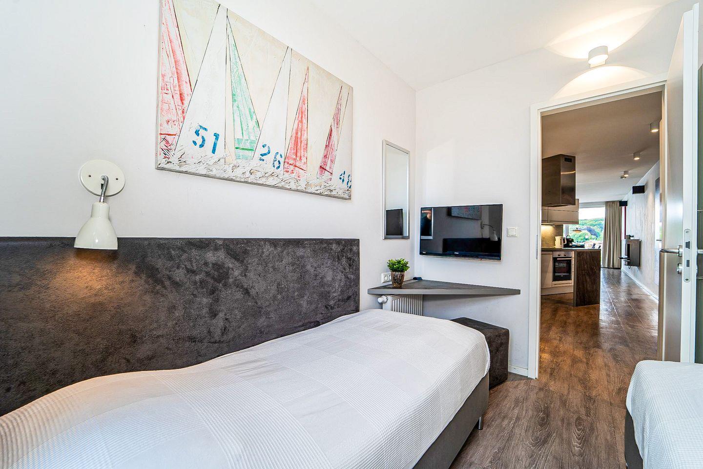 In den beiden separaten Schlafzimmern erwarten Dich komfortable Betten, Stauraum und je ein eigener Fernseher – ideal für entspannte Stunden.