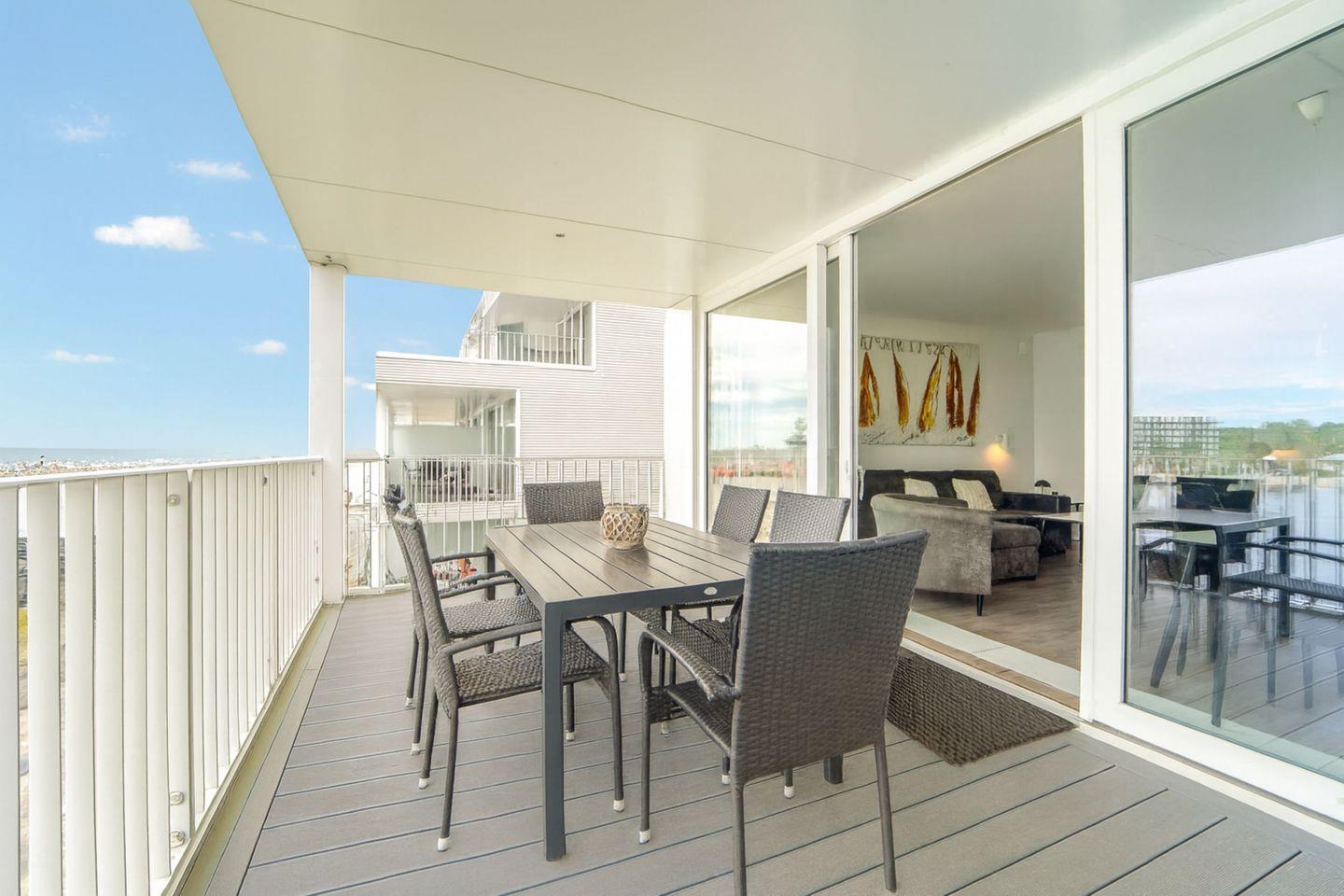 Der großzügige Balkon mit Gartenmöbeln lädt Dich ein, die frische Ostseeluft zu genießen. Durch die erhöhte Lage im 3. Stock erlebst Du einen besonders freien und weiten Blick über das Meer.