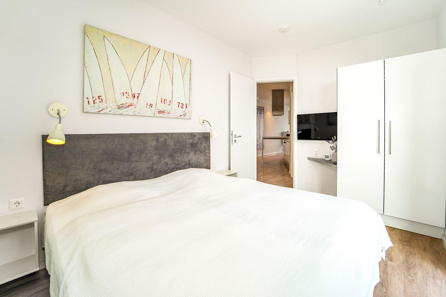 In den beiden separaten Schlafzimmern findest Du komfortable Betten, ausreichend Stauraum und je einen eigenen Fernseher – perfekt für entspannte Stunden im privaten Rückzugsbereich.