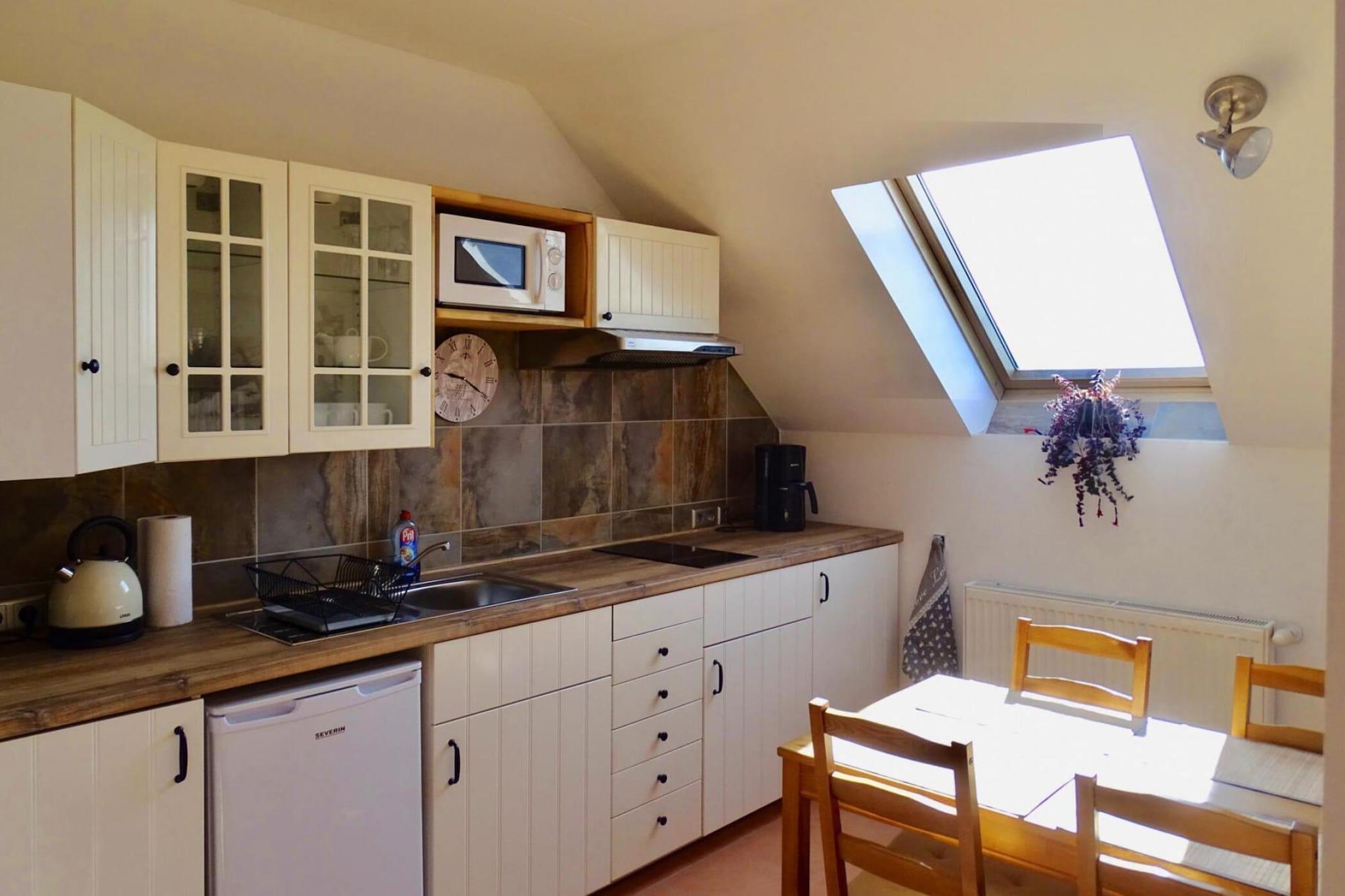 Cozy vacation apartment on the upper floor with Wi-Fi in the tranquil village of Lütow, in the Neuendorf district on the Gnitz peninsula below Zinnowitz. On the south coast of Gnitz lies a nature reserve, perfect for short hikes, which you can end with a refreshing beer in a cozy beer garden. You'll be staying close to the Achterwasser lagoon. The sandy beach in Zinnowitz is also easily accessible, offering a refreshing dip in the Baltic Sea on hot summer days. Highlights: All utilities included Wi-Fi included Activities nearby: Hiking and cycling tours through the beautiful countryside of Usedom. A lovely day trip by bike is the circular route around the Gnitz peninsula – Zinnowitz – Trassenheide – Wolgast – Krummin – Gnitz peninsula, which is approximately 55 kilometers long. This route takes you through the heart of Usedom, includes a visit to the beach, a detour to the former residence of the Pomeranian dukes, and then back through the peaceful hinterland of the Gnitz peninsula.