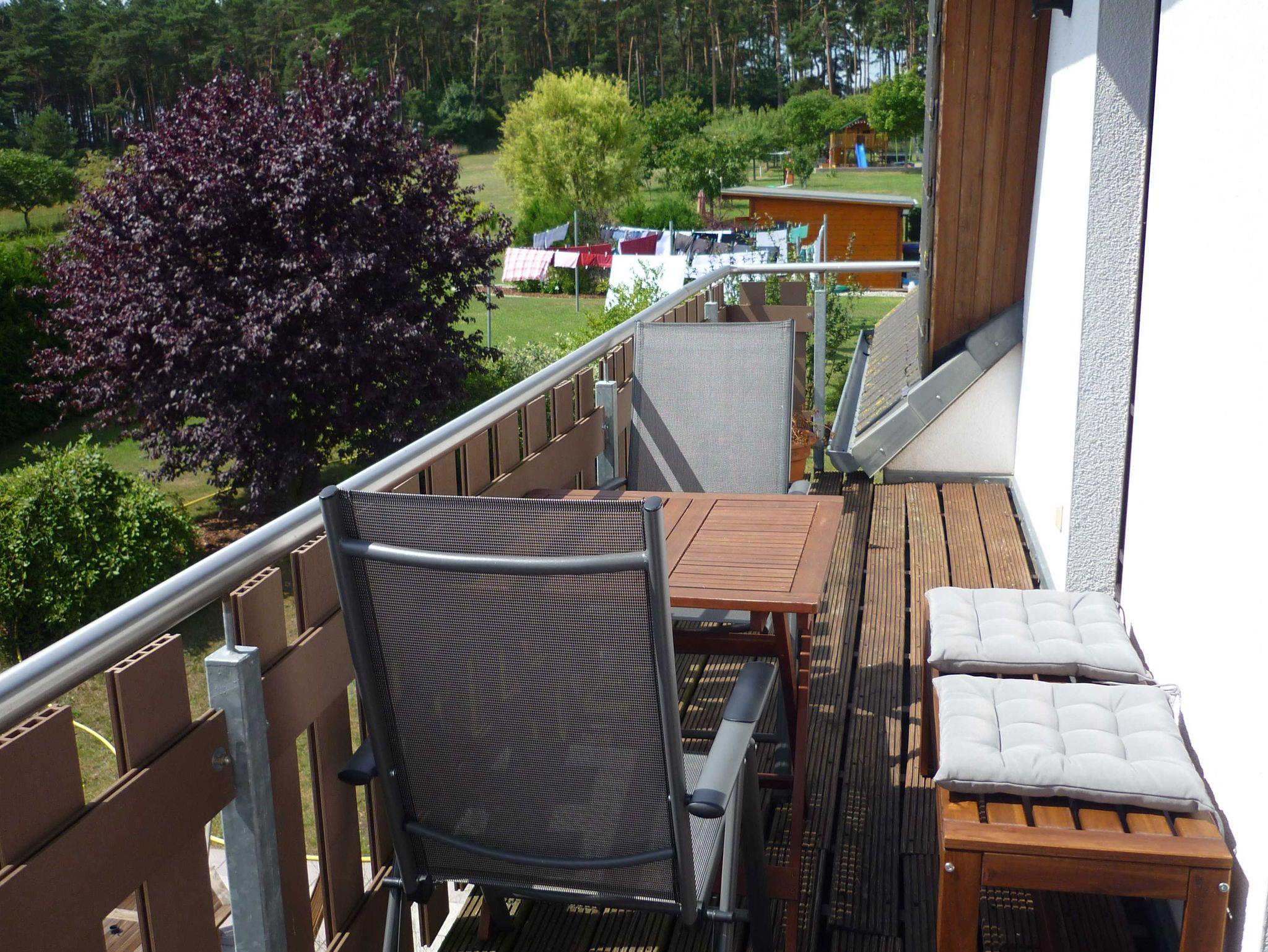 Die gemütliche 1-Raum-Ferienwohnung befindet sich im Dachgeschoss des Hauses. Sie verfügt über ein Doppelbett, einen Kleiderschrank, Couchsitzecke mit Flat-TV und Radio. Die separate Küche mit Cerankochfeld, Backofen, Kühlschrank mit Gefrierfach, Spülmaschine, Kaffeemaschine, Wasserkocher und Toaster ist gut ausgestattet. Vom Wohnschlafraum gelangen Sie auf den möblierten Balkon und genießen einen schönen Blick auf die umliegende Natur. Die Erstausstattung Bettwäsche, Parkplatz, Nebenkosten und Endreinigung sind im Preis enthalten. Handtücher müssen mitgebracht werden. WLAN ist vorhanden.