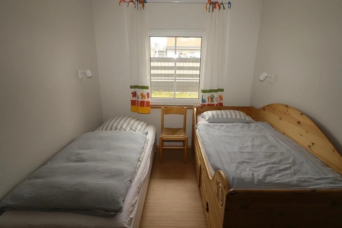 Das Kuschelnest ist eine gemütliche, 76 m² große Nichtraucher-Haushälfte auf 2 Etagen für bis zu 4 Personen. Zwei Schlafzimmer, ein Wohnbereich mit Sofaecke, eine geschlossene Küche mit Esstisch sowie eine überdachte Terrasse und ein eingezäunter Garten mit Gartenmöbeln, Grill und Strandkorb sorgen für entspannte Urlaubstage. Haustiere sind willkommen, bis zu 2 Hunde sind möglich.