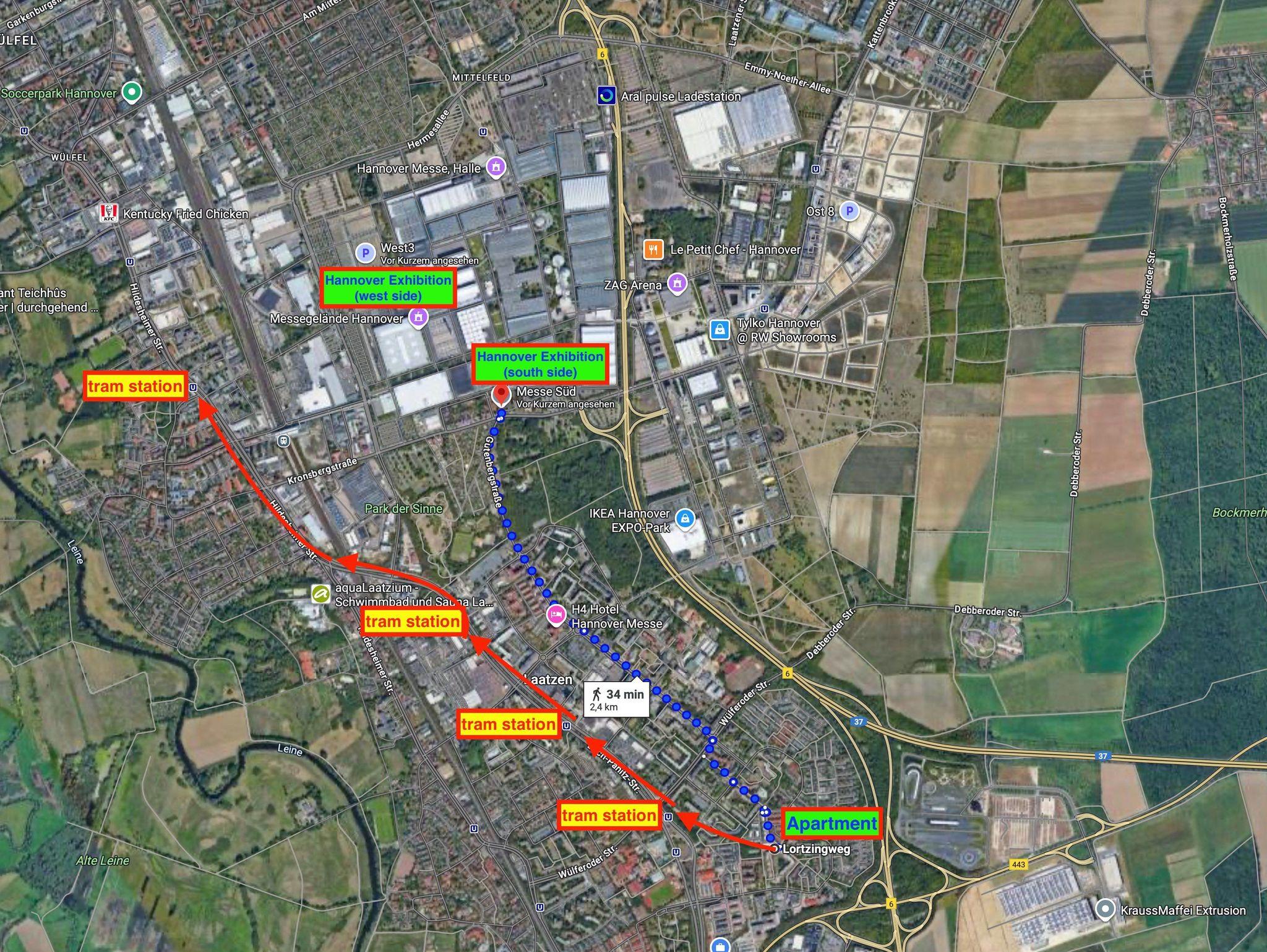 • Nur 3 Haltestellen mit der Stadtbahn bis Messe Hannover