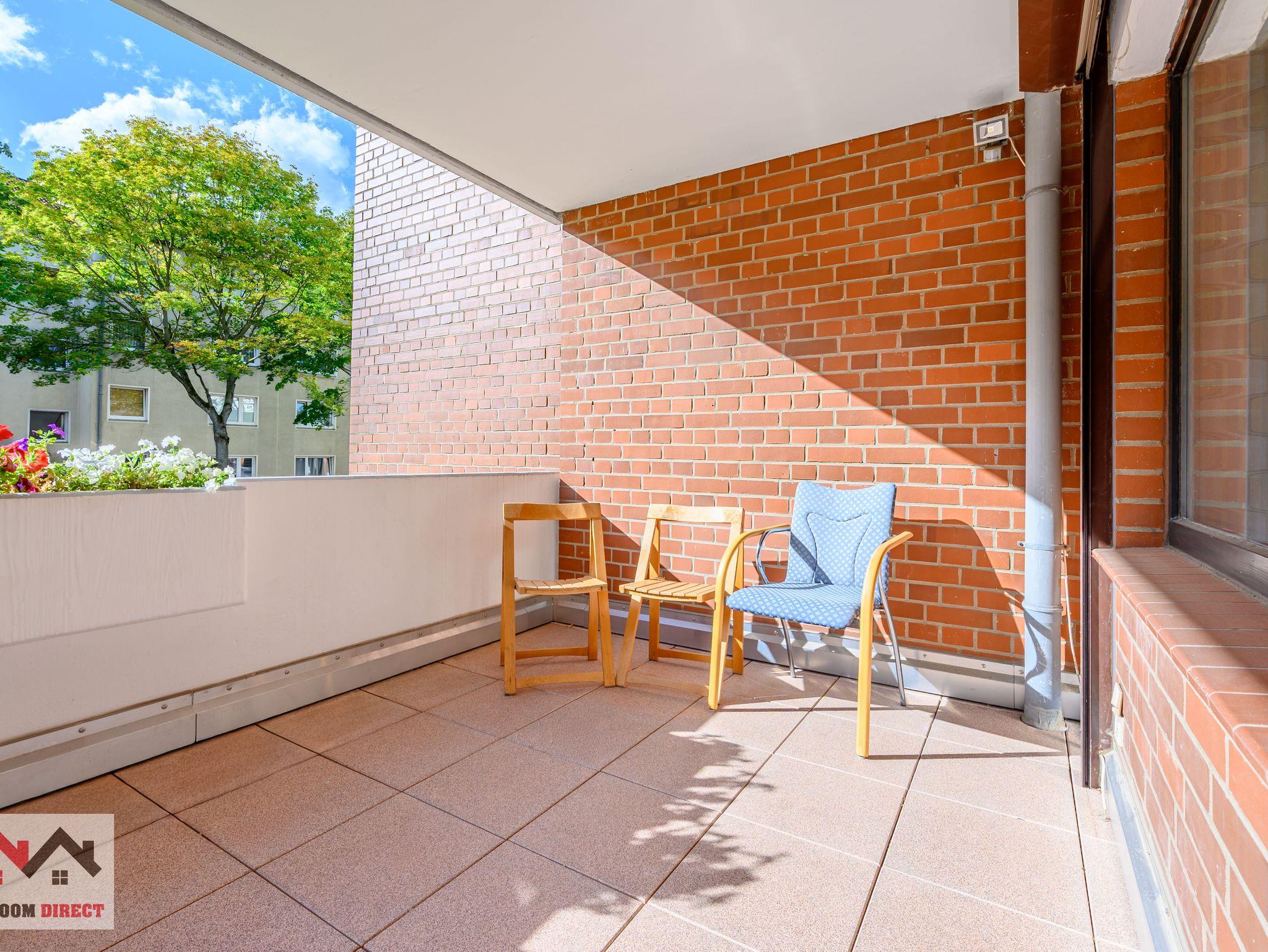 • Ein großer Balkon mit Sitzgelegenheiten