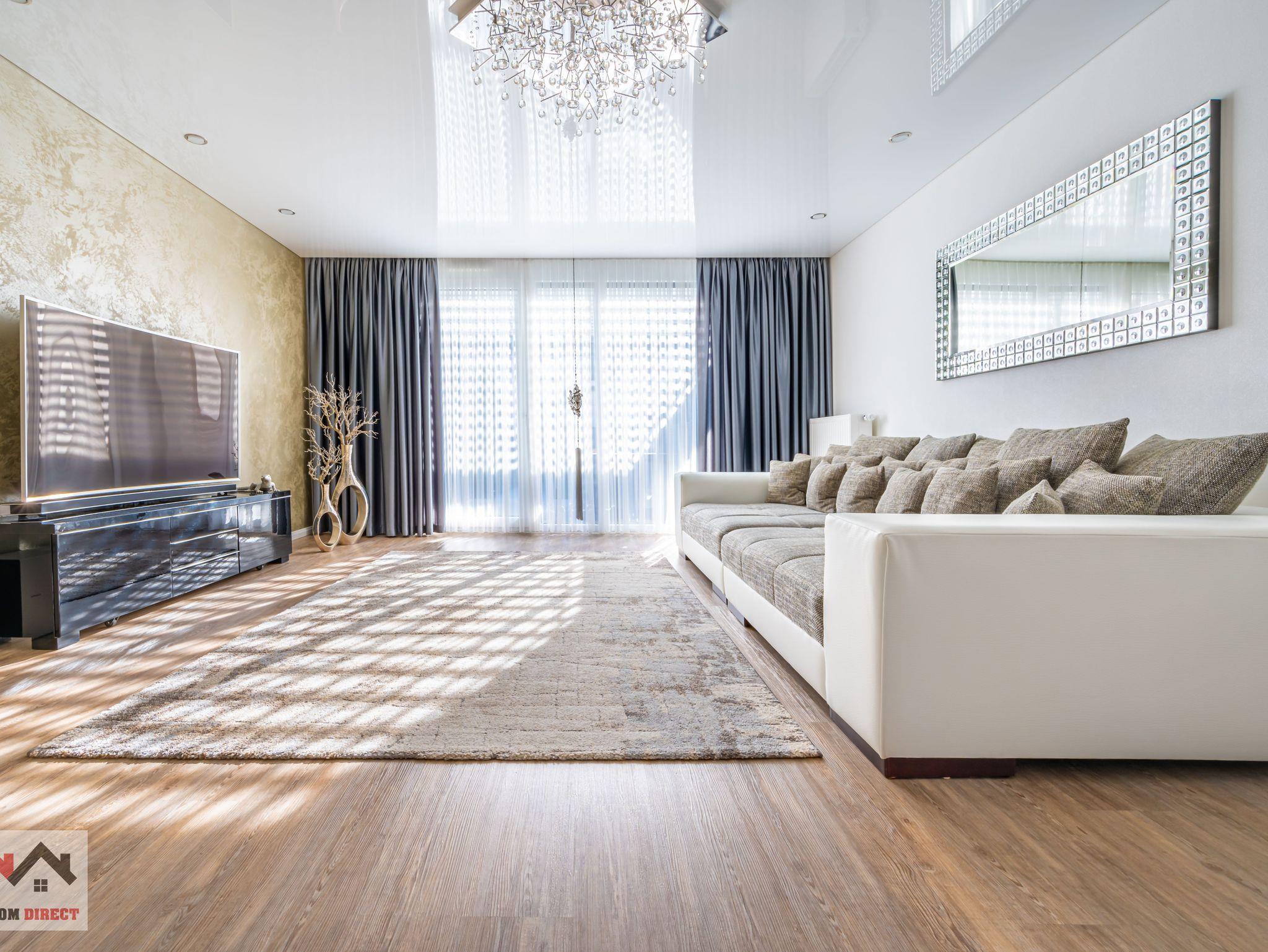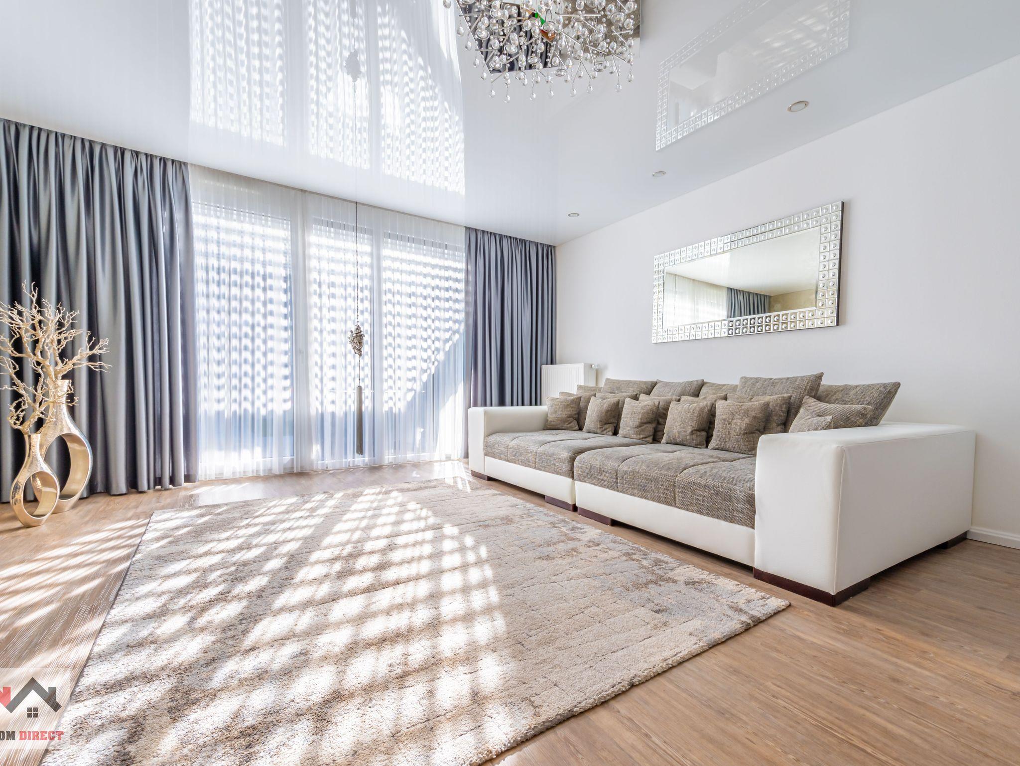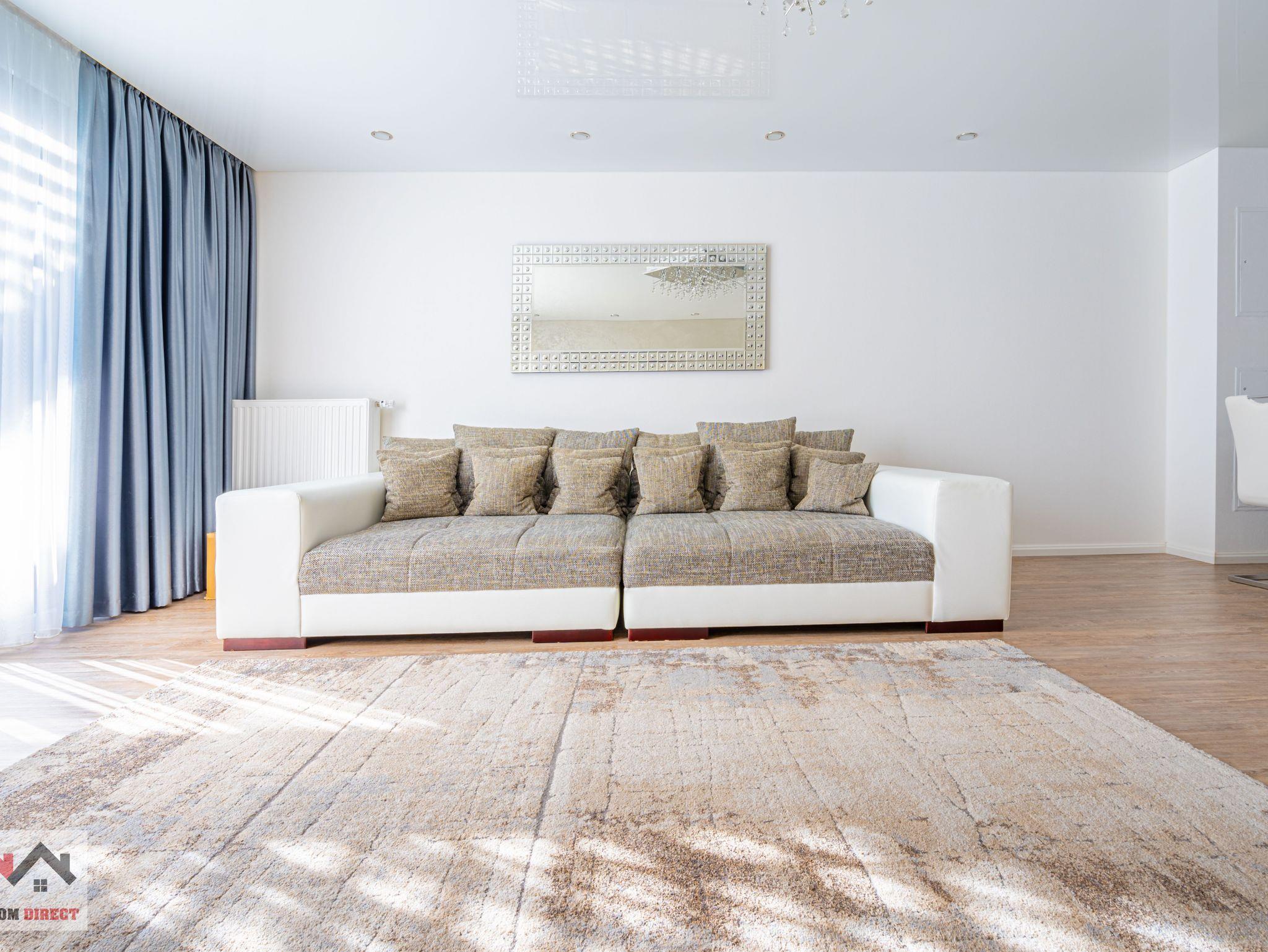 Das Sofa im Wohnzimmer lässt sich auch in ein zusätzliches Bett umwandeln und bietet so eine flexible Schlafmöglichkeit.