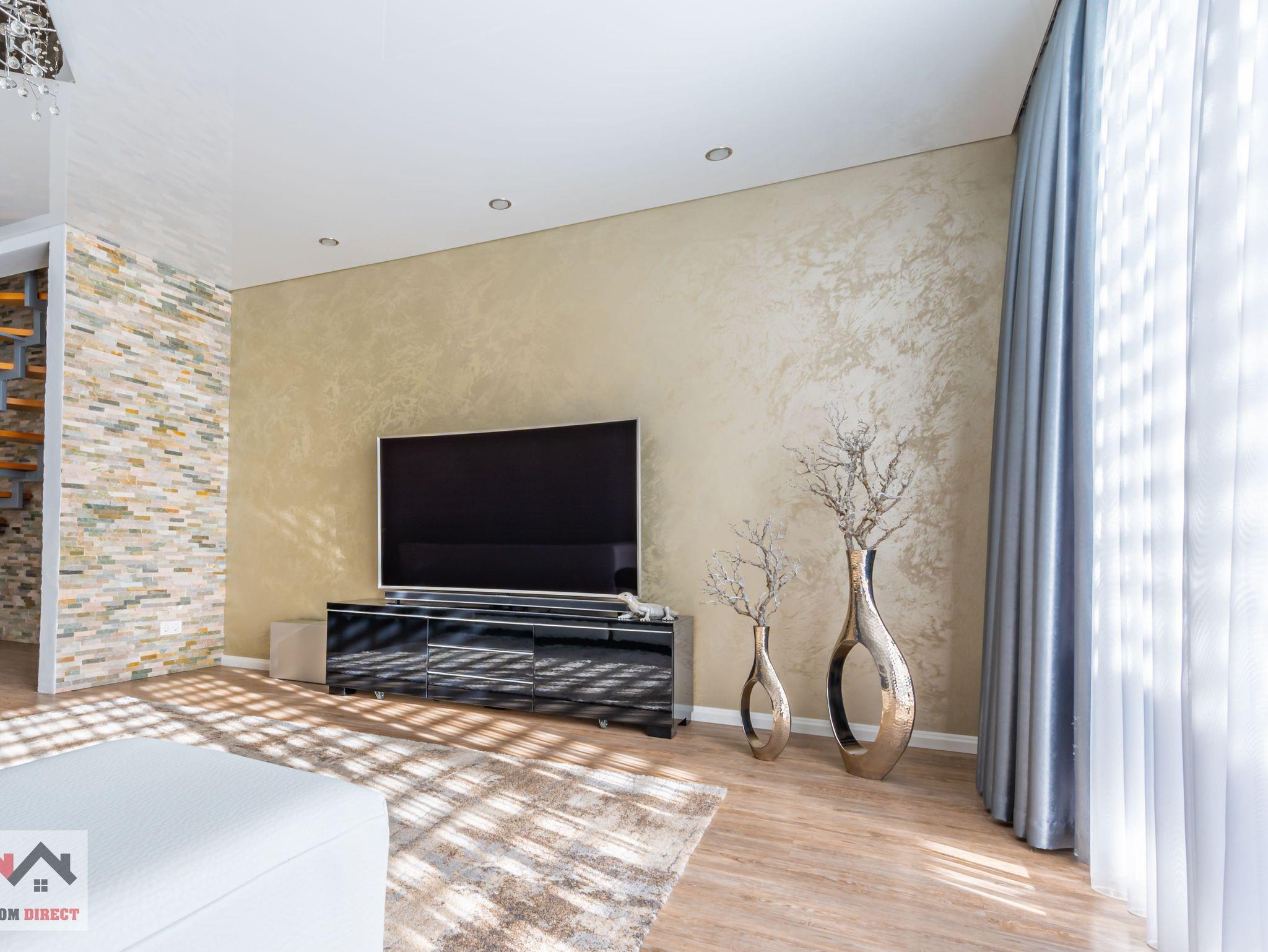 Das Haus verfügt über drei geräumige Schlafzimmer, die alle auf Komfort ausgelegt sind. Zwei Schlafzimmer sind mit Doppelbetten ausgestattet, während das dritte ein gemütliches Einzelbett bietet. Das große Wohnzimmer dient als einladender Raum und ist nahtlos mit einer offenen Küche verbunden, die mit allen notwendigen Geräten ausgestattet ist. Ein gemütlicher Fernsehbereich und ein geräumiger Essbereich machen das Wohnzimmer zum zentralen Treffpunkt des Hauses.