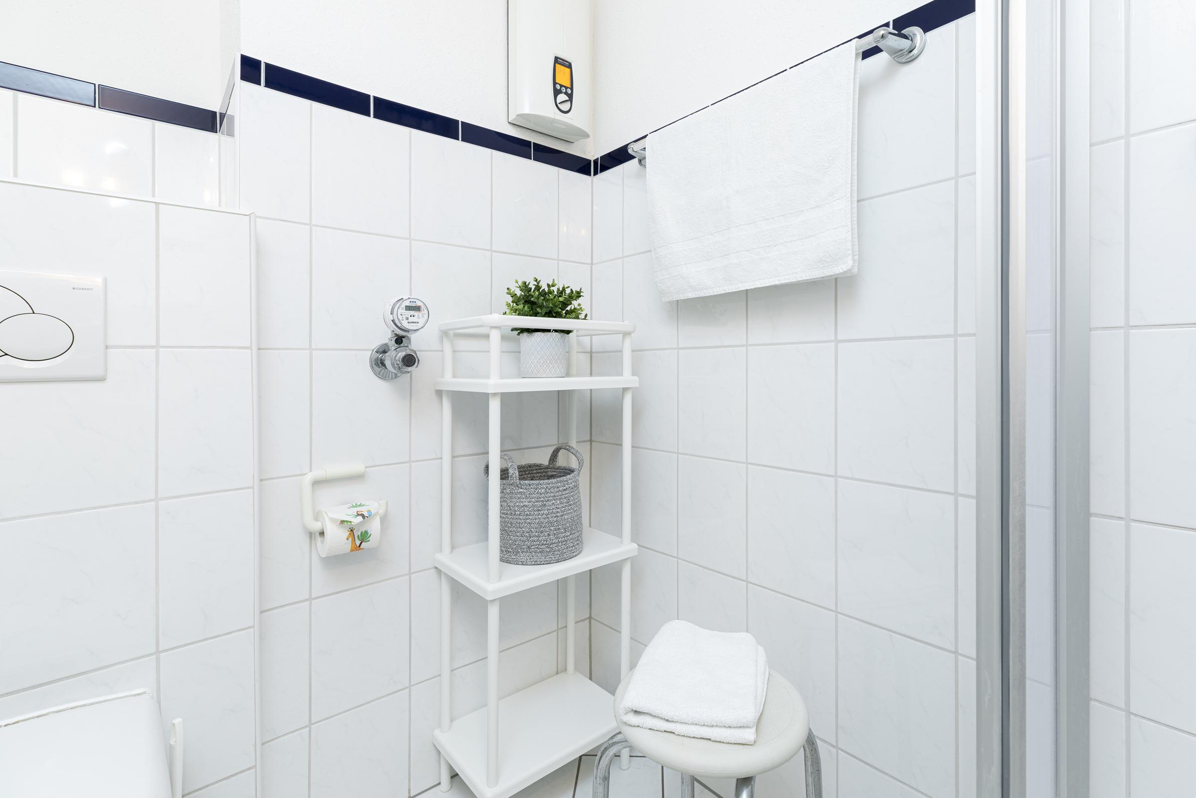 Unmittelbar vor der Tür haben Sie einen PKW-Stellplatz (freie Platzwahl nach Verfügbarkeit). Im Haus können Sie Waschmaschine und Trockner (Münzautomaten) nutzen. Für unsere Angler halten wir einen Gefrierschrank mit separaten Fächern bereit.