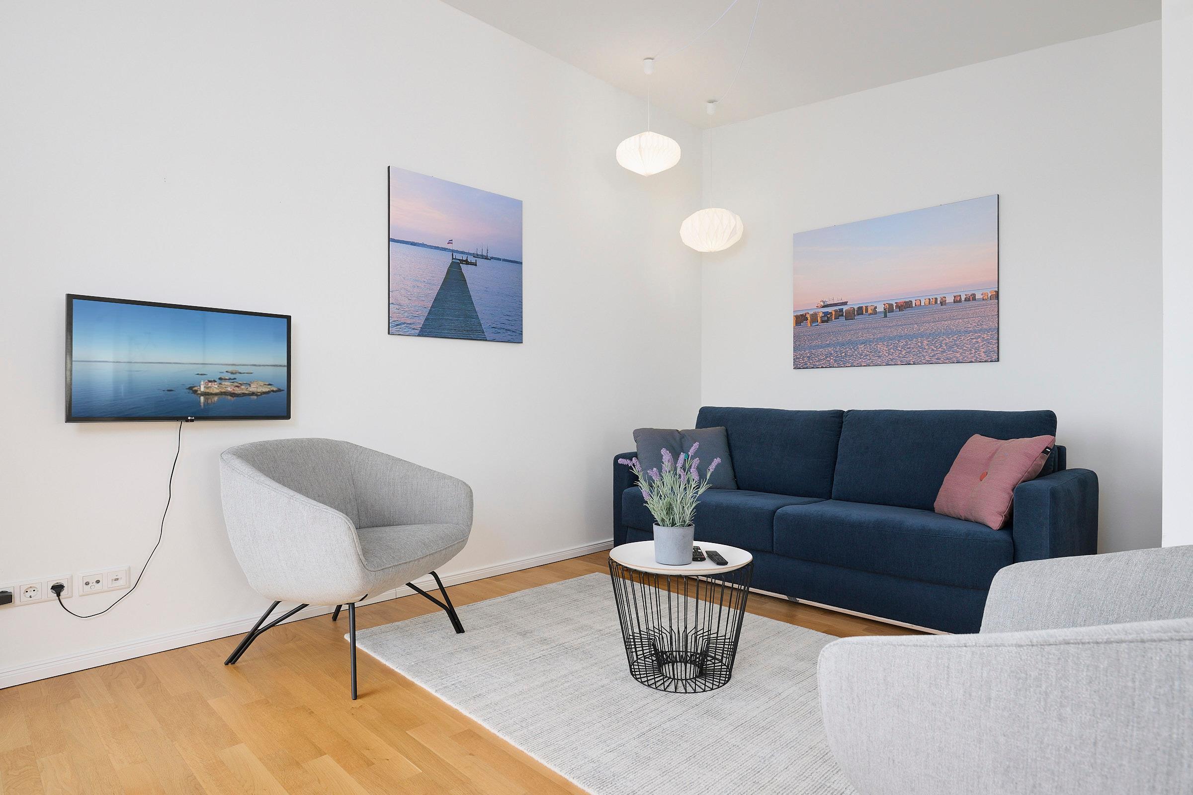 In diesem modernen, etwa 65m² großen Ferienappartement nur wenige Gehminuten vom Sandstrand entfernt und in direkter Nähe des Yachthafens Baltic Bay, dürfen sich bis zu 4 Personen ganz besonders über einen atemberaubenden Blick auf die Kieler Förde freuen.