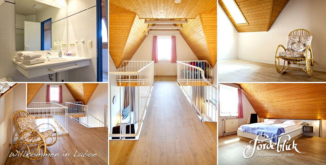 Dieser besonders geräumige Appartement-Typ ist im Maisonette-Stil über zwei Etagen gehalten. Es ist sehr schön eingerichtet und verfügt über ein großzügiges Wohn-Esszimmer mit einer komfortablen Doppelbettcouch für zwei Personen, eine Essecke, und ein Duschbad mit WC. Über eine Wendeltreppe erreichen Sie die Galerie Dort befindet sich ein weiteres Badezimmer mit Badewanne und WC. Sowie ein separates Schlafzimmer mit einem Doppelbett. Mit der gut eingerichteten Küchenzeile mit Ceranfeld, Kühlschrank und Mikrowelle lassen sich leckere Speisen zubereiten. Der gemütliche Dachbalkon bietet einen wunderschönen Blick auf die Ostsee mit den vorbeiziehenden großen Schiffen. Genießen Sie von dort zum Tagesausklang den Sonnenuntergang. Sie werden begeistert sein.