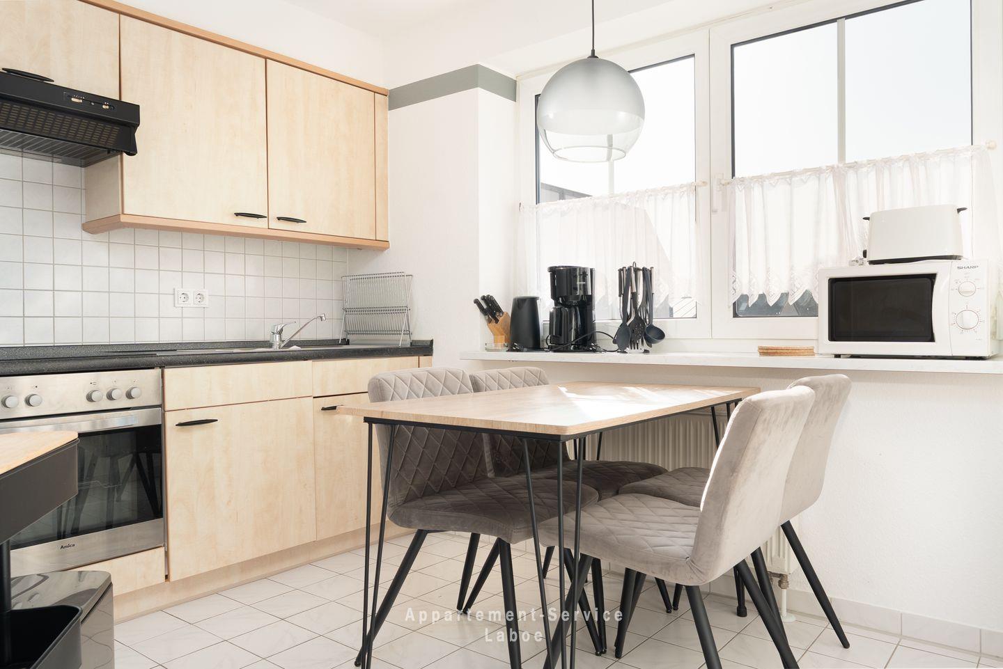 Die voll ausgestattete Küche lässt keine Wünsche offen und bietet dir alles, was du für deine kulinarischen Ideen brauchst. Der angrenzende Essplatz ist ideal für gemeinsame Mahlzeiten und gesellige Stunden – ob ein gemütliches Frühstück oder ein selbst gekochtes Abendessen.