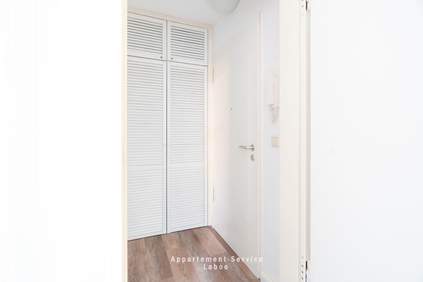 Zur Ausstattung gehören WLAN, SAT-TV und eine kleine Musikanlage. Das moderne Bad mit Dusche und WC ist hell und freundlich, im Flur sorgt ein praktischer Einbauschrank für Stauraum.