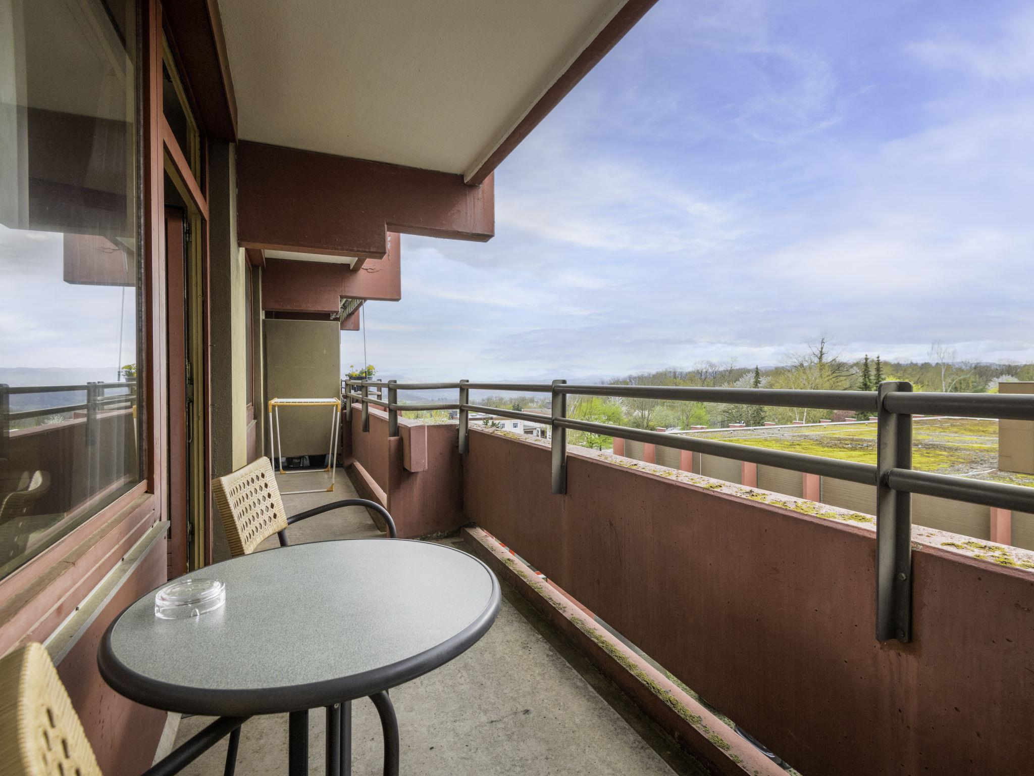 Lahnstein 12 km from Koblenz: Apartment block "Ferienpark Rhein-Lahn". In the district of Lahnstein auf der Höhe 4 km from the centre of Lahnstein, 12 km from the centre of Koblenz, 4 km from the river. For shared use: indoor pool (11 x 6 m, depth 120 cm) with internal staircase. Shower/WC in the pool area. In the complex: reception, WiFi, table tennis, lift, central heating system, washing machine, tumble dryer (for shared use, extra). Parking at the house. E-charging station. Grocery 200 m, supermarket 4.5 km, restaurant 800 m, bakery 4.5 km, bicycle rental 4.5 km, 45 minute walk to the centre, bus stop "Kurklinik" 200 m, railway station "Koblenz (HBF)" 12 km, park "Kurpark" 200 m, outdoor swimming pool 1.5 km, indoor swimming pool 5 km, thermal baths "Emser Therme" 10 km. Golf course (18 hole) 16 km, tennis 500 m, minigolf 6 km, walking paths from the house 100 m, cycle lane 4.5 km, children's playground 100 m. Nearby attractions: Burg Lahneck 3 km, Marksburg 7 km, Deutsches Eck Koblenz / Seilbahn 10 km, Schloss Stolzenfels 13 km. Hiking paths: Lahn-Höhenweg 100 m, Rheinsteig (11) 100 m, Jakobswege Rhein-Lahn. Please note: car recommended. Lahn River 4 km. Boat trips (KD) on the Rhine 4.5 km. Moselle River 10 km. A small kiosk with a small animal enclosure is 300 m away. The Rhein-Lahn holiday park is located 200 m above the town of Lahnstein, in the heart of the 530 km² Nassau Nature Park. It consists of two interconnected apartment buildings and its own Interhome service office. Smoking is permitted on the balconies of the apartments. An 11 kW electric charging station is located in the parking lot. Usage and billing are handled through the Interhome service office.