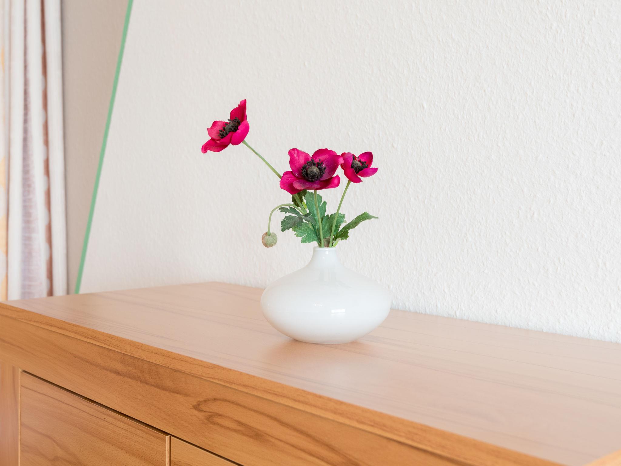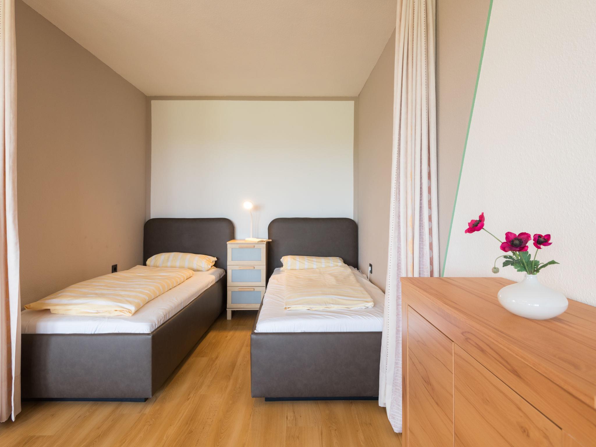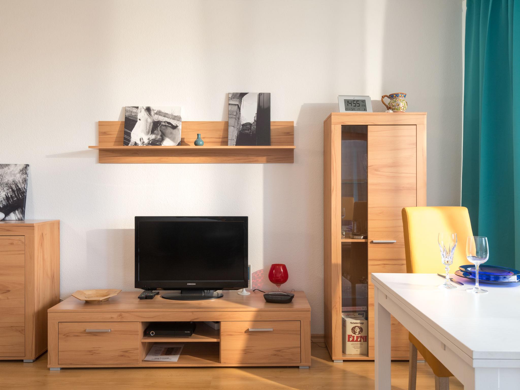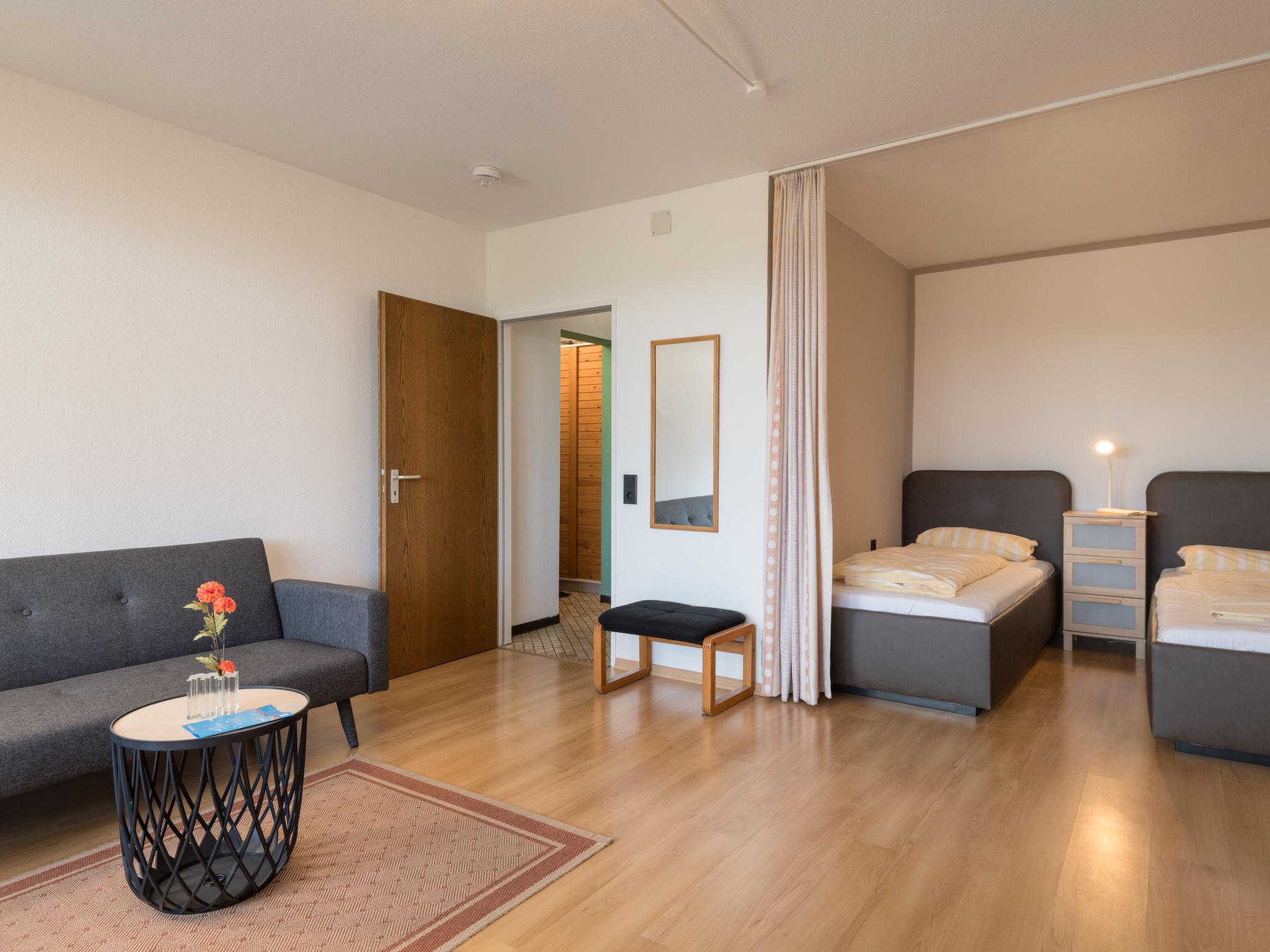 "Auszeit (B403)", 1-room apartment 38 m2 on 4th floor, east facing position. Object suitable for 2 adults + 1 child. Living/dining room with satellite TV (flat screen), CD-player. Exit to the balcony. Alcove with 2 beds (90 cm, length 200 cm). Kitchenette in the entrance (4 hot plates, oven, toaster, kettle, electric coffee machine). Bath/shower/WC. Balcony furniture. Beautiful view of the countryside. Facilities: Internet (WiFi, free). Please note: non-smokers only. Maximum 1 pet/ dog allowed. Smoke alarm. Instead of an enclosed bedroom, some sleeping areas are located in an open-plan area (gallery, alcove, etc.).