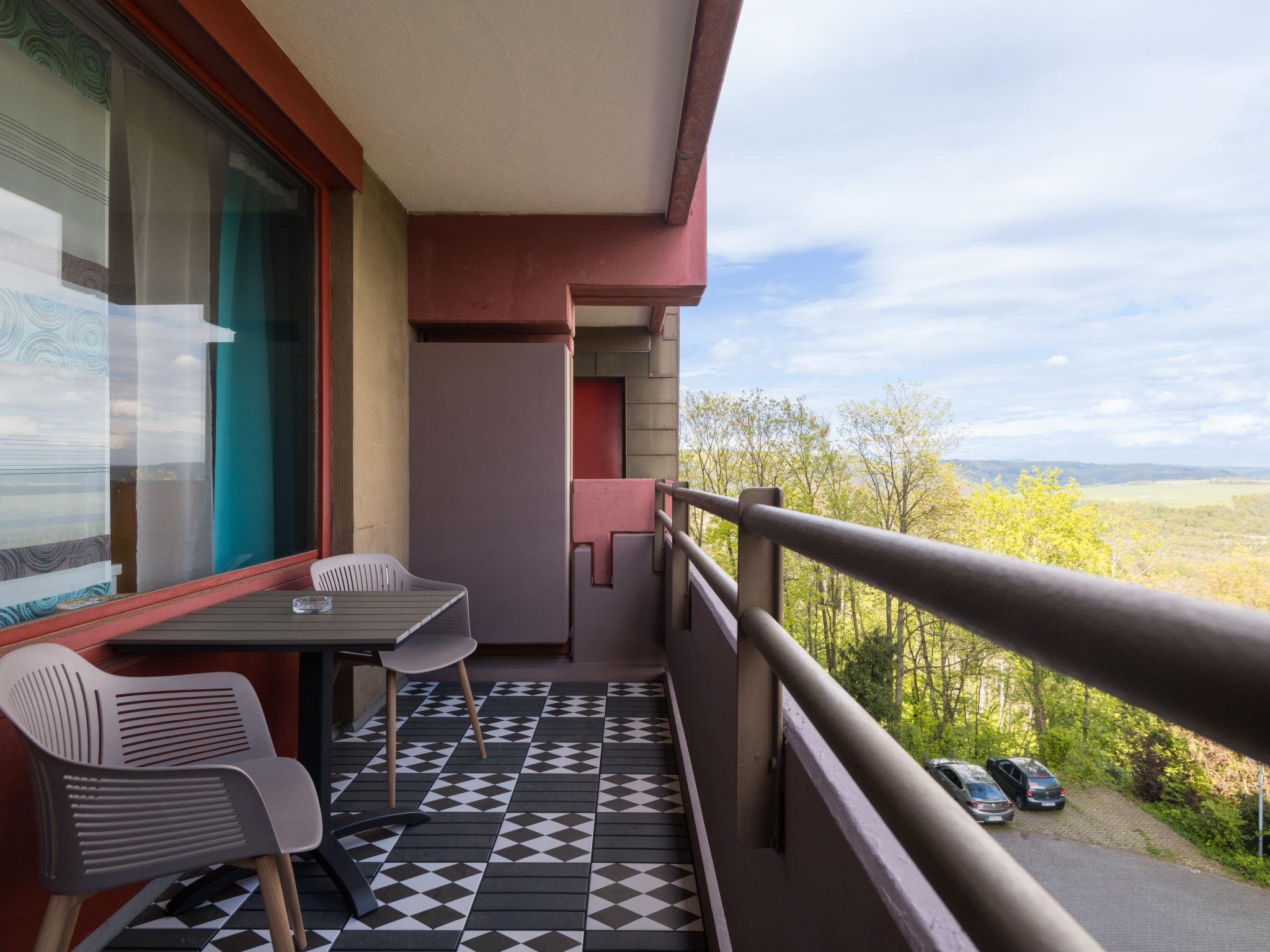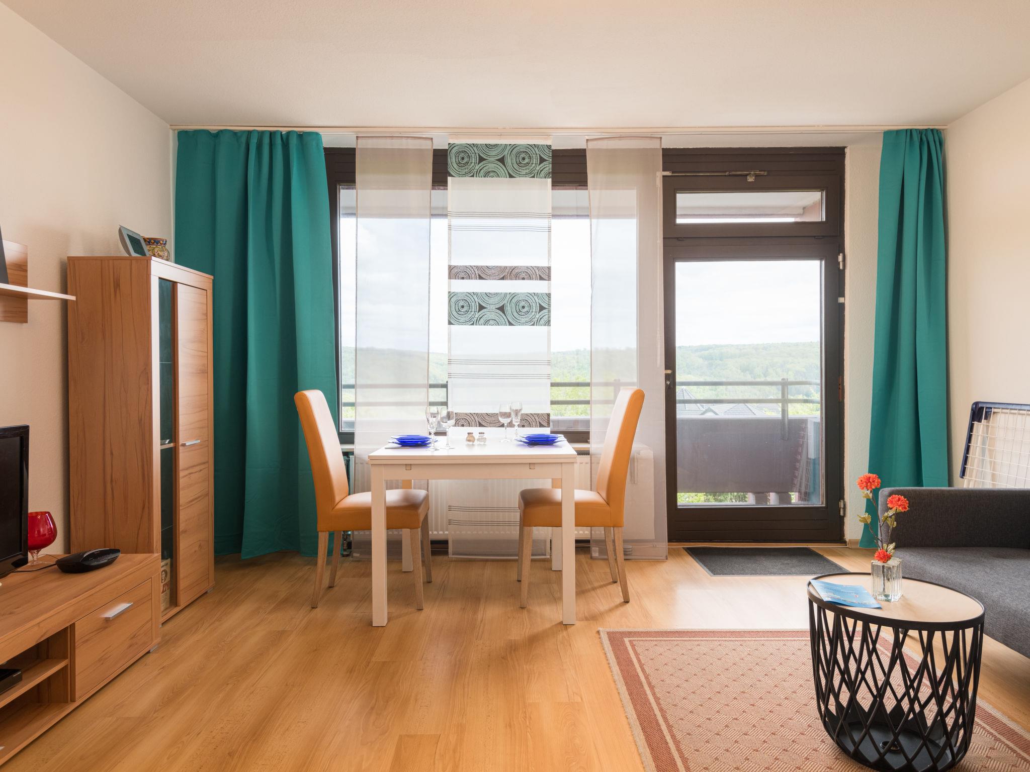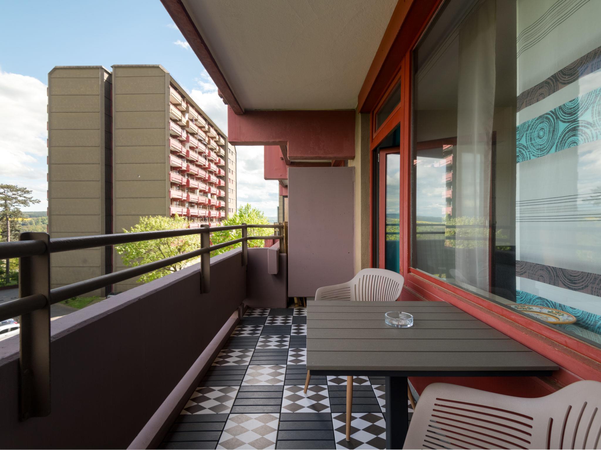 Lahnstein 12 km from Koblenz: Apartment block "Ferienpark Rhein-Lahn". In the district of Lahnstein auf der Höhe 4 km from the centre of Lahnstein, 12 km from the centre of Koblenz, 4 km from the river. For shared use: indoor pool (11 x 6 m, depth 120 cm) with internal staircase. Shower/WC in the pool area. In the complex: reception, WiFi, table tennis, lift, central heating system, washing machine, tumble dryer (for shared use, extra). Parking at the house. E-charging station. Grocery 200 m, supermarket 4.5 km, restaurant 800 m, bakery 4.5 km, bicycle rental 4.5 km, 45 minute walk to the centre, bus stop "Kurklinik" 200 m, railway station "Koblenz (HBF)" 12 km, park "Kurpark" 200 m, outdoor swimming pool 1.5 km, indoor swimming pool 5 km, thermal baths "Emser Therme" 10 km. Golf course (18 hole) 16 km, tennis 500 m, minigolf 6 km, walking paths from the house 100 m, cycle lane 4.5 km, children's playground 100 m. Nearby attractions: Burg Lahneck 3 km, Marksburg 7 km, Deutsches Eck Koblenz / Seilbahn 10 km, Schloss Stolzenfels 13 km. Hiking paths: Lahn-Höhenweg 100 m, Rheinsteig (11) 100 m, Jakobswege Rhein-Lahn. Please note: car recommended. Lahn River 4 km. Boat trips (KD) on the Rhine 4.5 km. Moselle River 10 km. A small kiosk with a small animal enclosure is 300 m away. The Rhein-Lahn holiday park is located 200 m above the town of Lahnstein, in the heart of the 530 km² Nassau Nature Park. It consists of two interconnected apartment buildings and its own Interhome service office. Smoking is permitted on the balconies of the apartments. An 11 kW electric charging station is located in the parking lot. Usage and billing are handled through the Interhome service office.