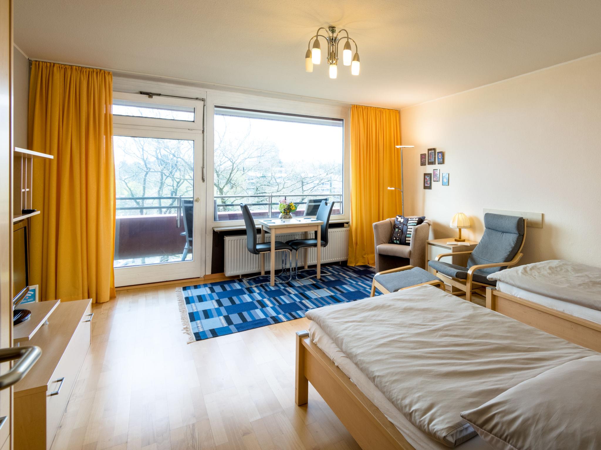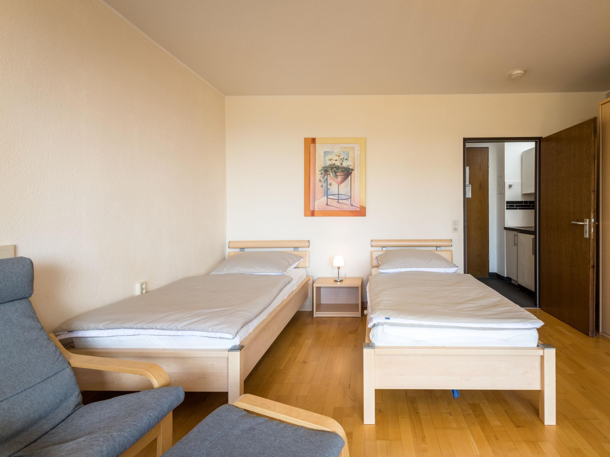 "Pusteblume (B609)", 1-room apartment 33 m2 on 6th floor, west facing position. Beautiful furnishings: living/sleeping room with 2 beds (100 cm, length 200 cm), satellite TV (flat screen), hi-fi system. Exit to the balcony. Kitchenette in the entrance (2 ceramic glass hob hotplates, toaster, kettle, microwave, electric coffee machine). Shower/WC. Parquet floors. Balcony furniture. Facilities: Internet (WiFi, free). Please note: non-smokers only. Smoke alarm.