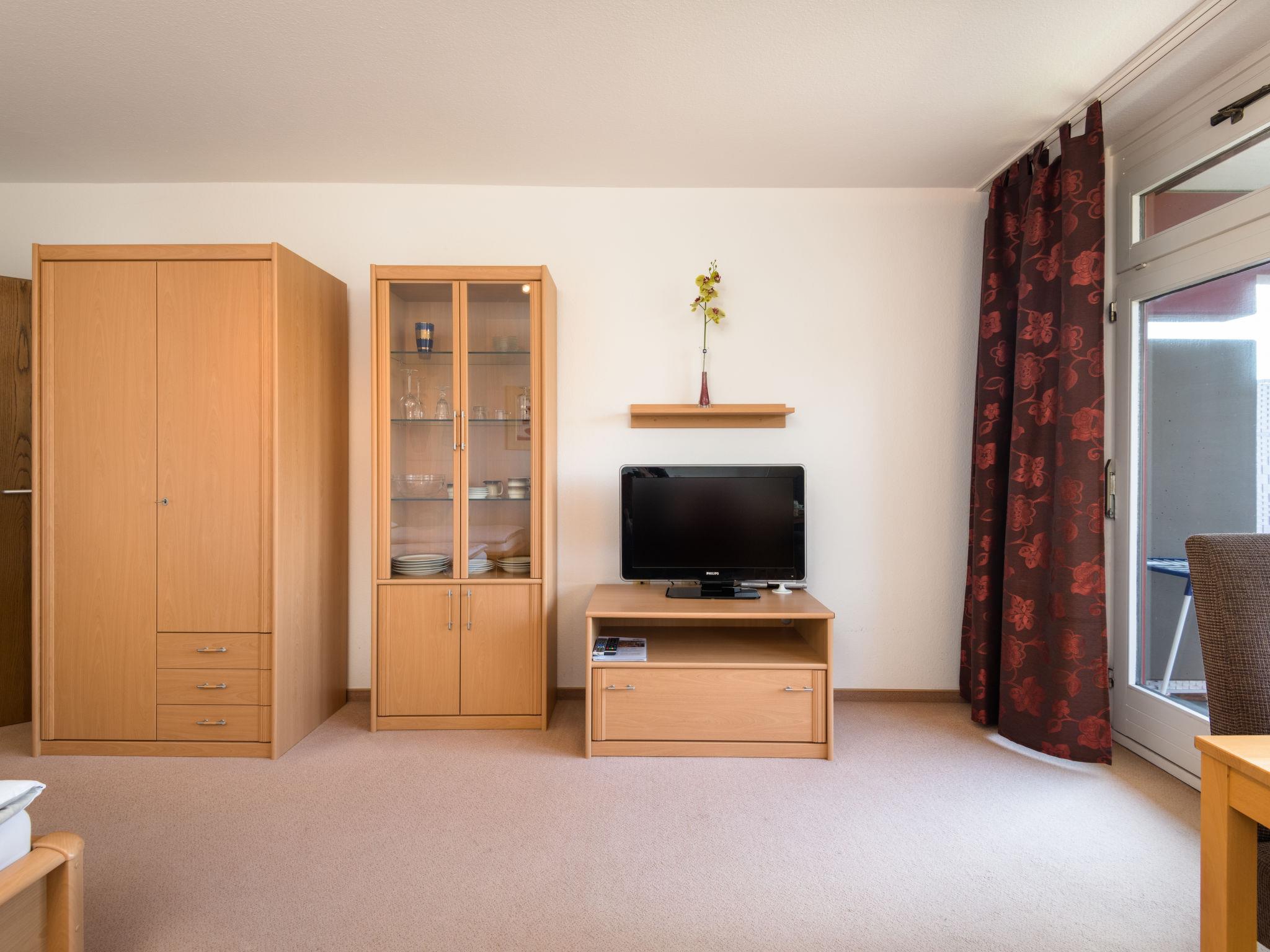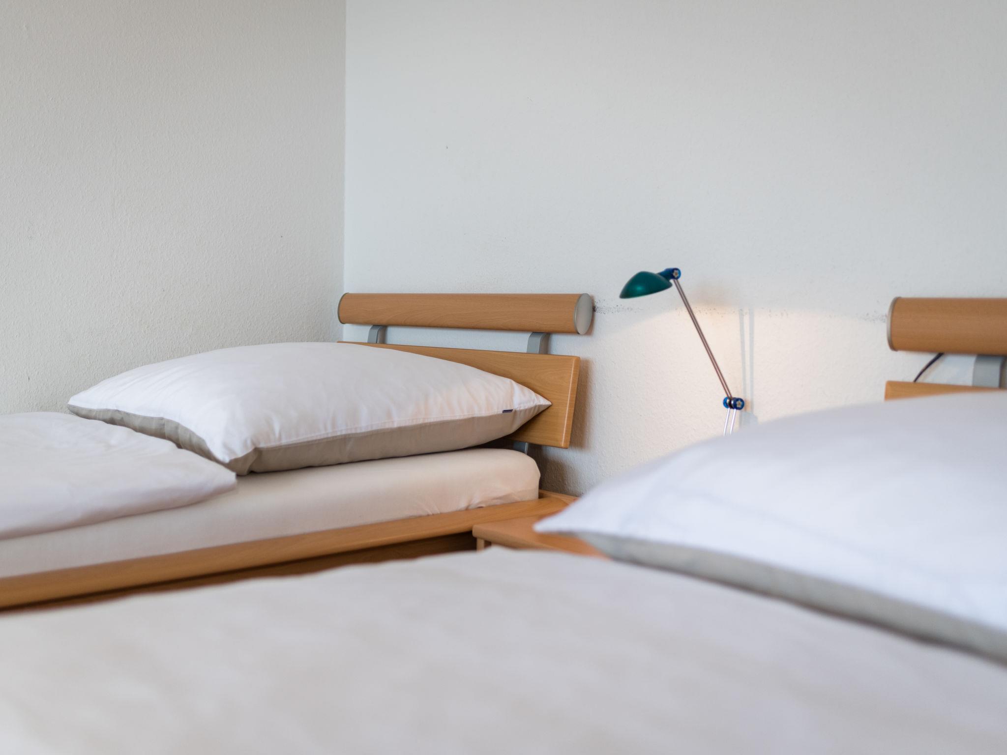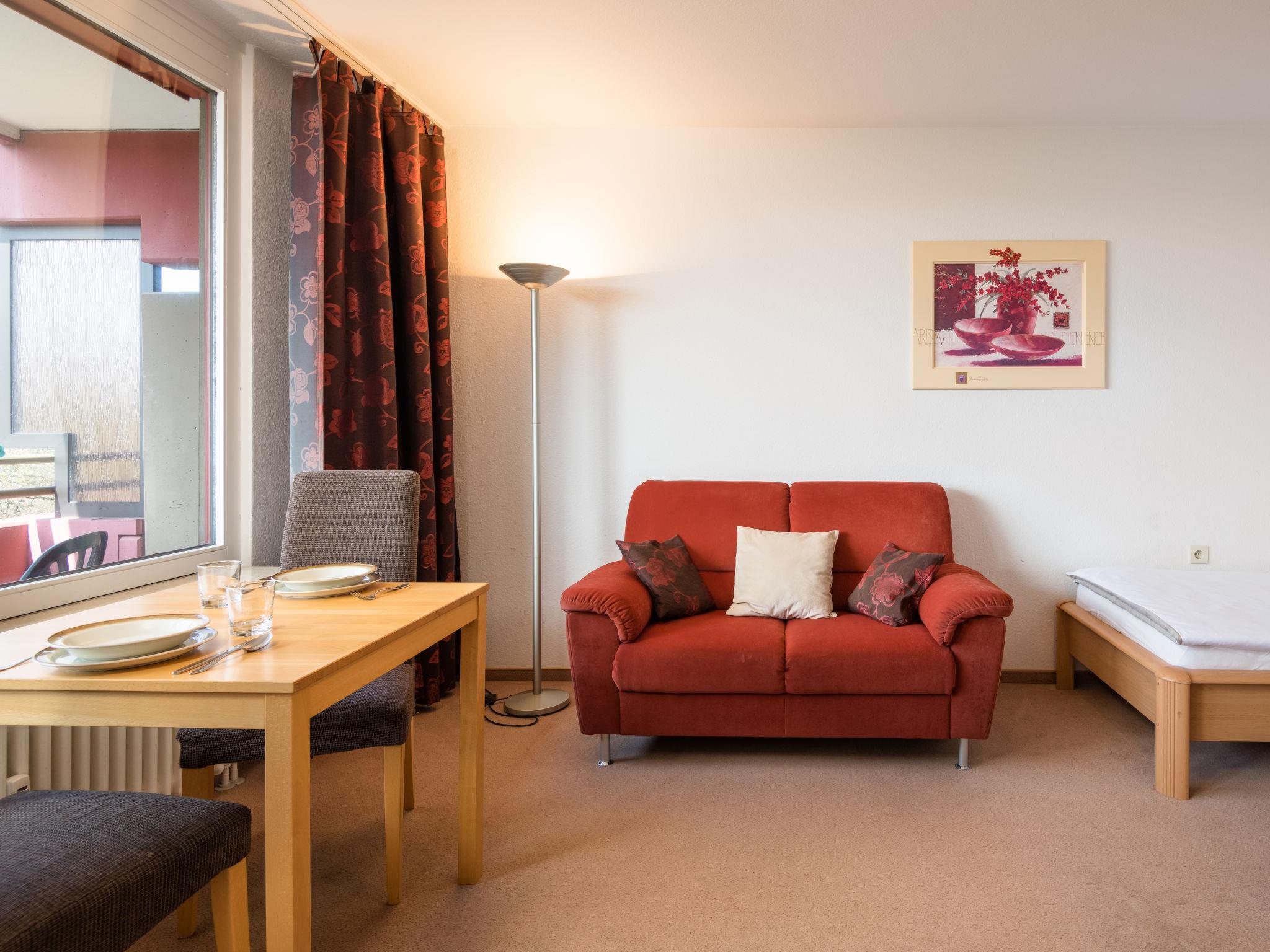 "Möwe (B512)", 1-room apartment 33 m2 on 5th floor, west facing position. Living/sleeping room with 2 beds (90 cm, length 200 cm), satellite TV (flat screen). Exit to the balcony. Kitchenette in the entrance (2 hot plates, toaster, kettle, electric coffee machine). Bath/shower/WC. Balcony furniture. Facilities: Internet (WiFi, free). Please note: non-smokers only. Smoke alarm.