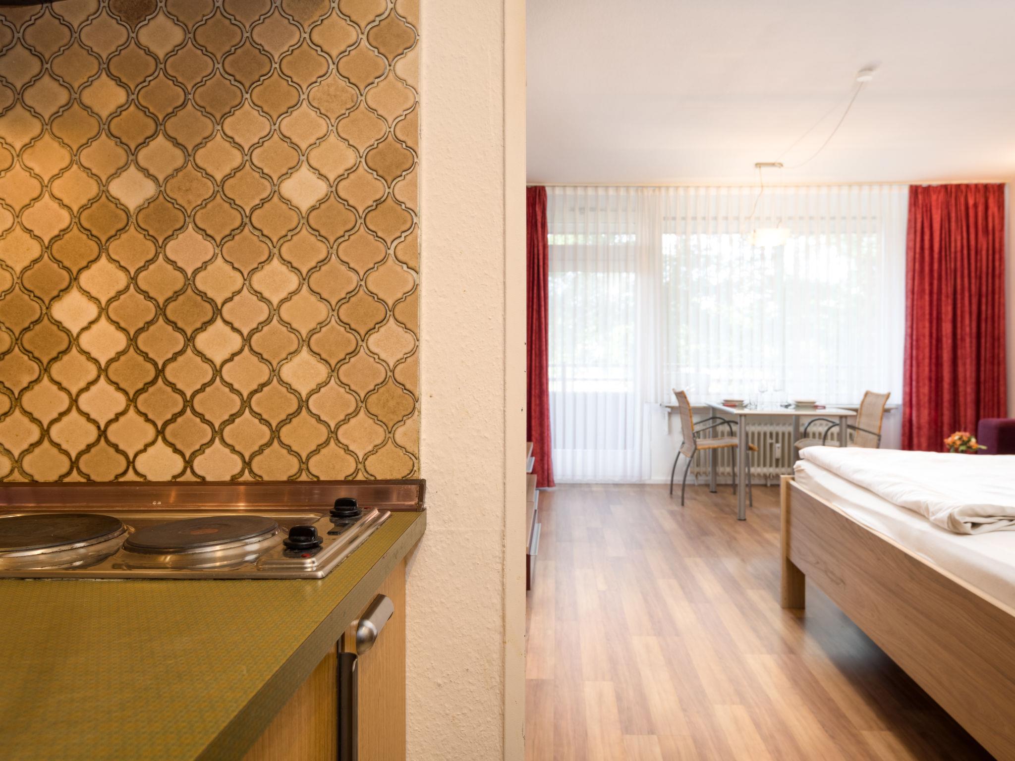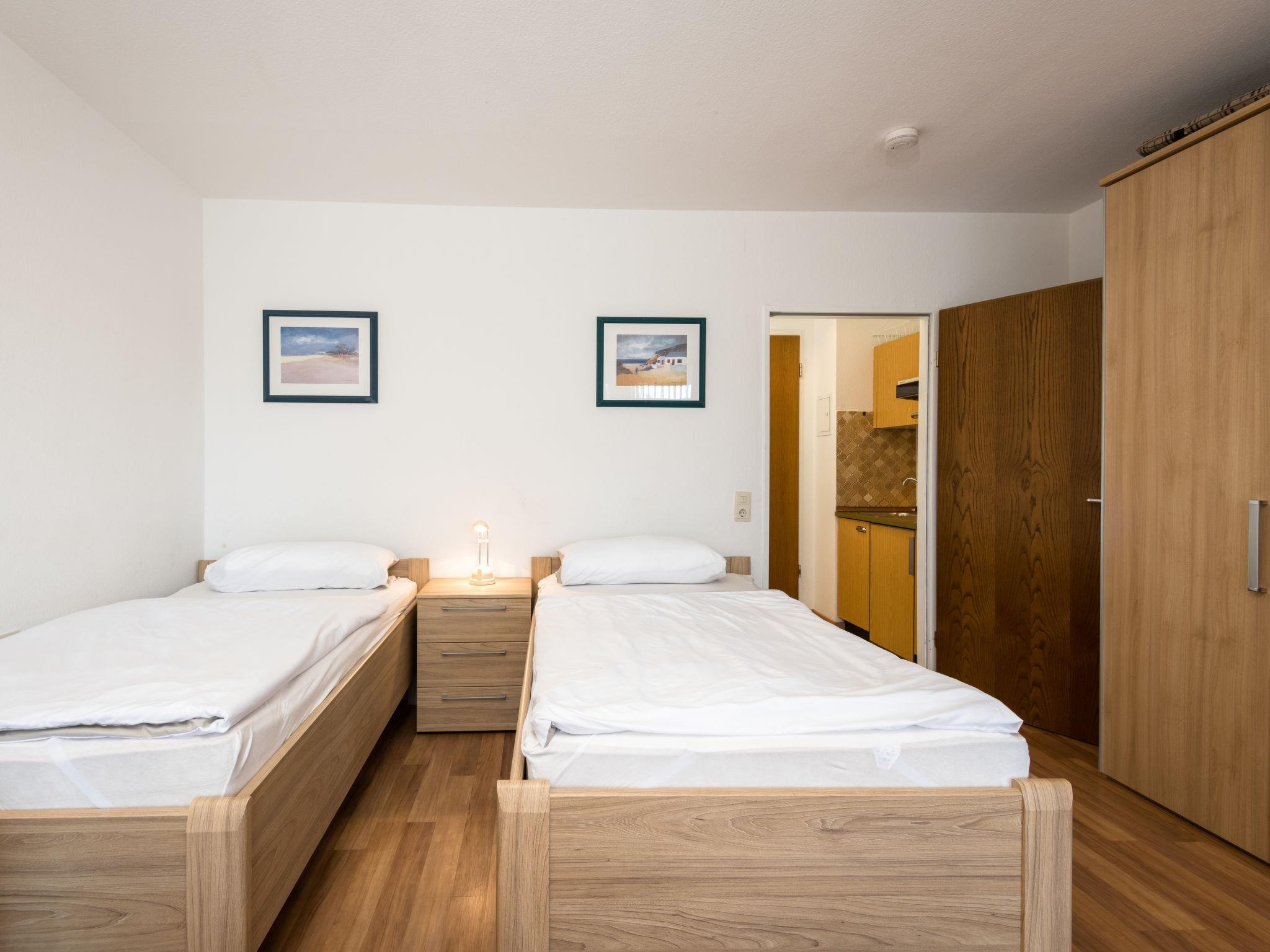 "Wanderlust (B212)", 1-room apartment 33 m2 on 2nd floor, west facing position. Living/sleeping room with 2 beds (100 cm, length 200 cm), satellite TV (flat screen), hi-fi system. Exit to the balcony. Kitchenette in the entrance (2 hot plates, toaster, kettle, electric coffee machine). Bath/shower/WC. Balcony furniture. Facilities: Internet (WiFi, free). Please note: non-smokers only. Smoke alarm.