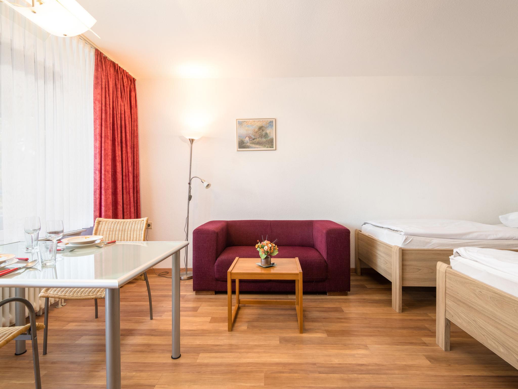 Lahnstein 12 km from Koblenz: Apartment block "Ferienpark Rhein-Lahn". In the district of Lahnstein auf der Höhe 4 km from the centre of Lahnstein, 12 km from the centre of Koblenz, 4 km from the river. For shared use: indoor pool (11 x 6 m, depth 120 cm) with internal staircase. Shower/WC in the pool area. In the complex: reception, WiFi, table tennis, lift, central heating system, washing machine, tumble dryer (for shared use, extra). Parking at the house. E-charging station. Grocery 200 m, supermarket 4.5 km, restaurant 800 m, bakery 4.5 km, bicycle rental 4.5 km, 45 minute walk to the centre, bus stop "Kurklinik" 200 m, railway station "Koblenz (HBF)" 12 km, park "Kurpark" 200 m, outdoor swimming pool 1.5 km, indoor swimming pool 5 km, thermal baths "Emser Therme" 10 km. Golf course (18 hole) 16 km, tennis 500 m, minigolf 6 km, walking paths from the house 100 m, cycle lane 4.5 km, children's playground 100 m. Nearby attractions: Burg Lahneck 3 km, Marksburg 7 km, Deutsches Eck Koblenz / Seilbahn 10 km, Schloss Stolzenfels 13 km. Hiking paths: Lahn-Höhenweg 100 m, Rheinsteig (11) 100 m, Jakobswege Rhein-Lahn. Please note: car recommended. Lahn River 4 km. Boat trips (KD) on the Rhine 4.5 km. Moselle River 10 km. A small kiosk with a small animal enclosure is 300 m away. The Rhein-Lahn holiday park is located 200 m above the town of Lahnstein, in the heart of the 530 km² Nassau Nature Park. It consists of two interconnected apartment buildings and its own Interhome service office. Smoking is permitted on the balconies of the apartments. An 11 kW electric charging station is located in the parking lot. Usage and billing are handled through the Interhome service office.