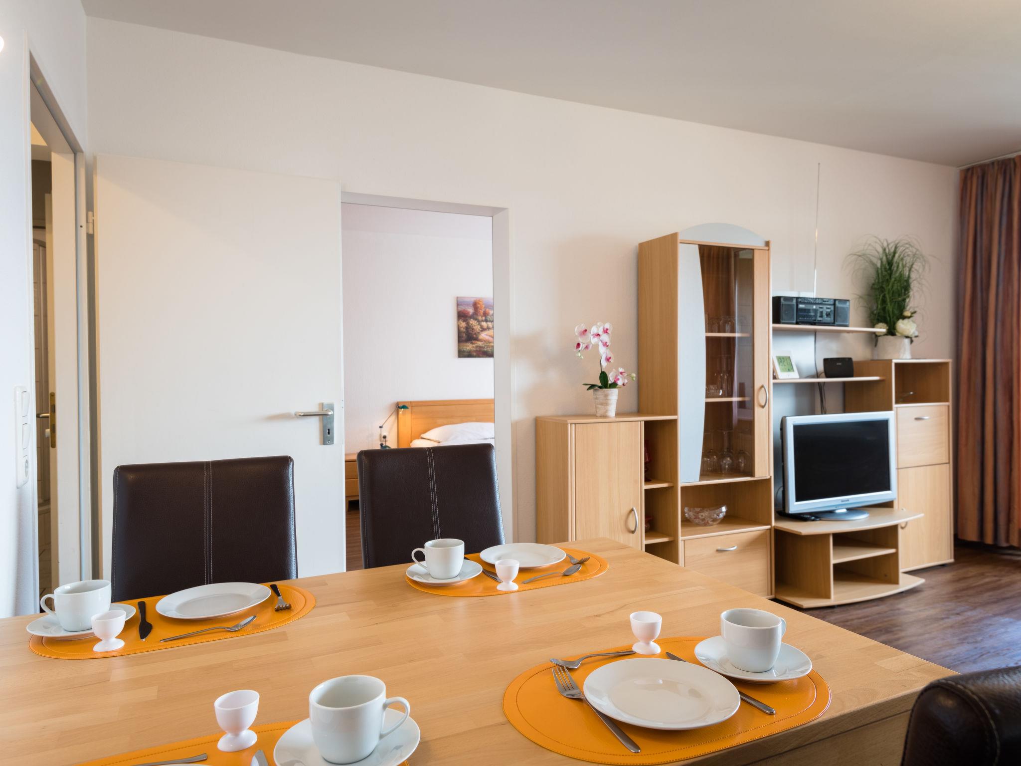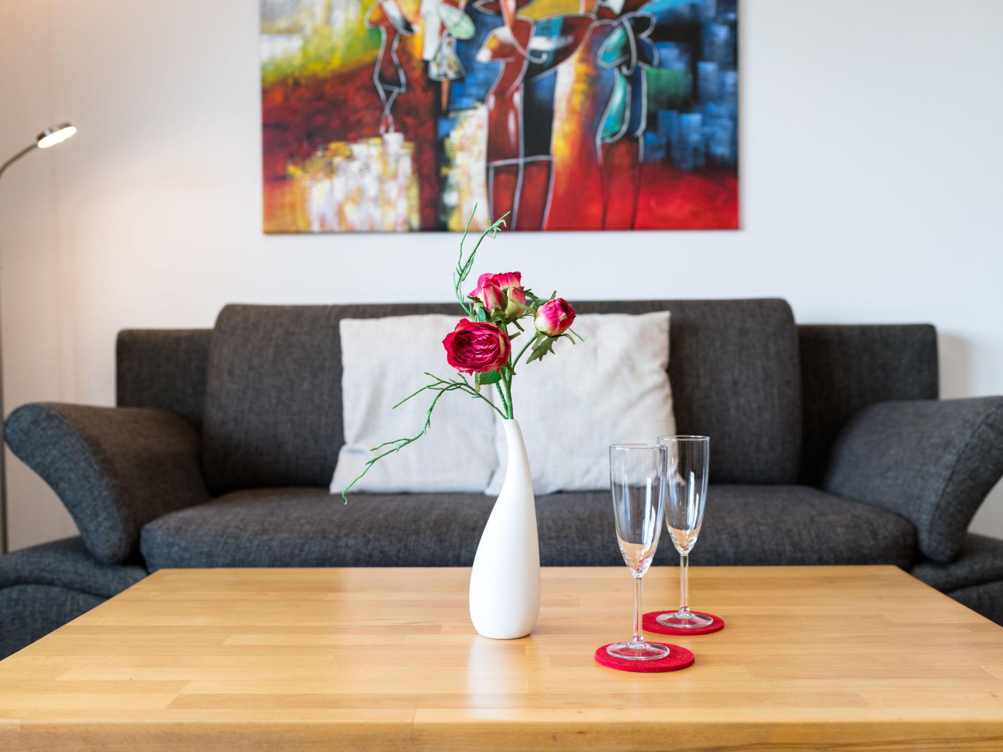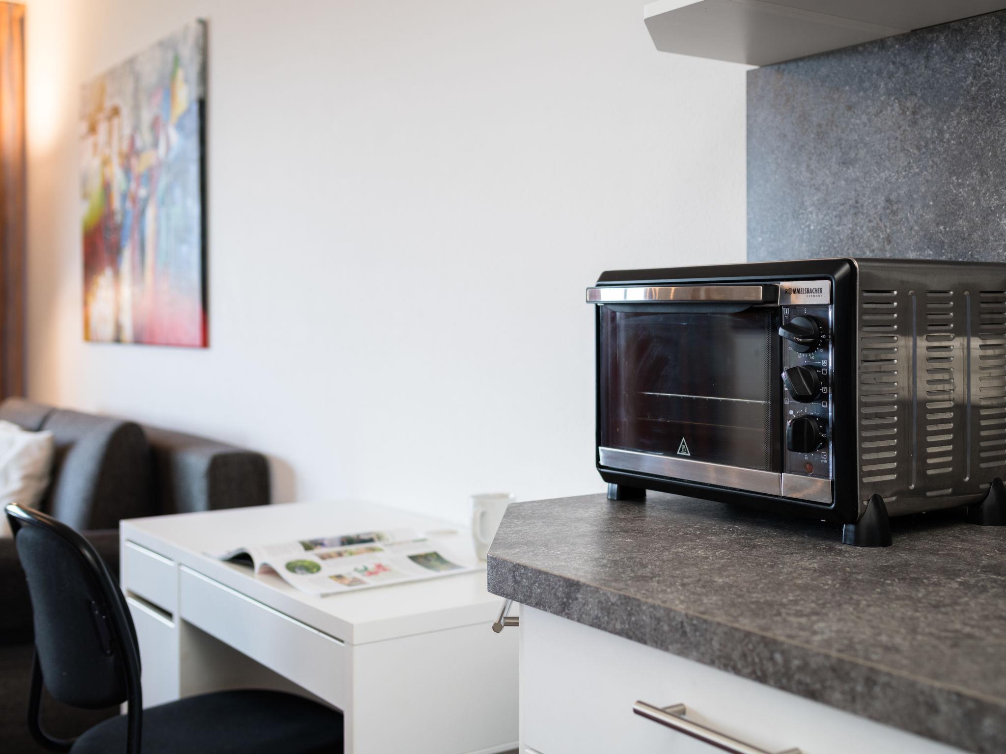 "Sonnenblick (B905)", 2-room apartment 56 m2 on 9th floor, east facing position. Beautiful and modern furnishings: living/dining room with 1 double sofabed (150 cm, length 200 cm), satellite TV (flat screen). Exit to the balcony. 1 room with 1 double bed (2 x 100 cm, length 200 cm). Kitchenette (mini-oven, dishwasher, 2 ceramic glass hob hotplates, toaster, kettle, electric coffee machine). Shower/WC. Balcony furniture. Marvellous view of the countryside. Facilities: Internet (WiFi, free). Please note: non-smokers only. Smoke alarm.