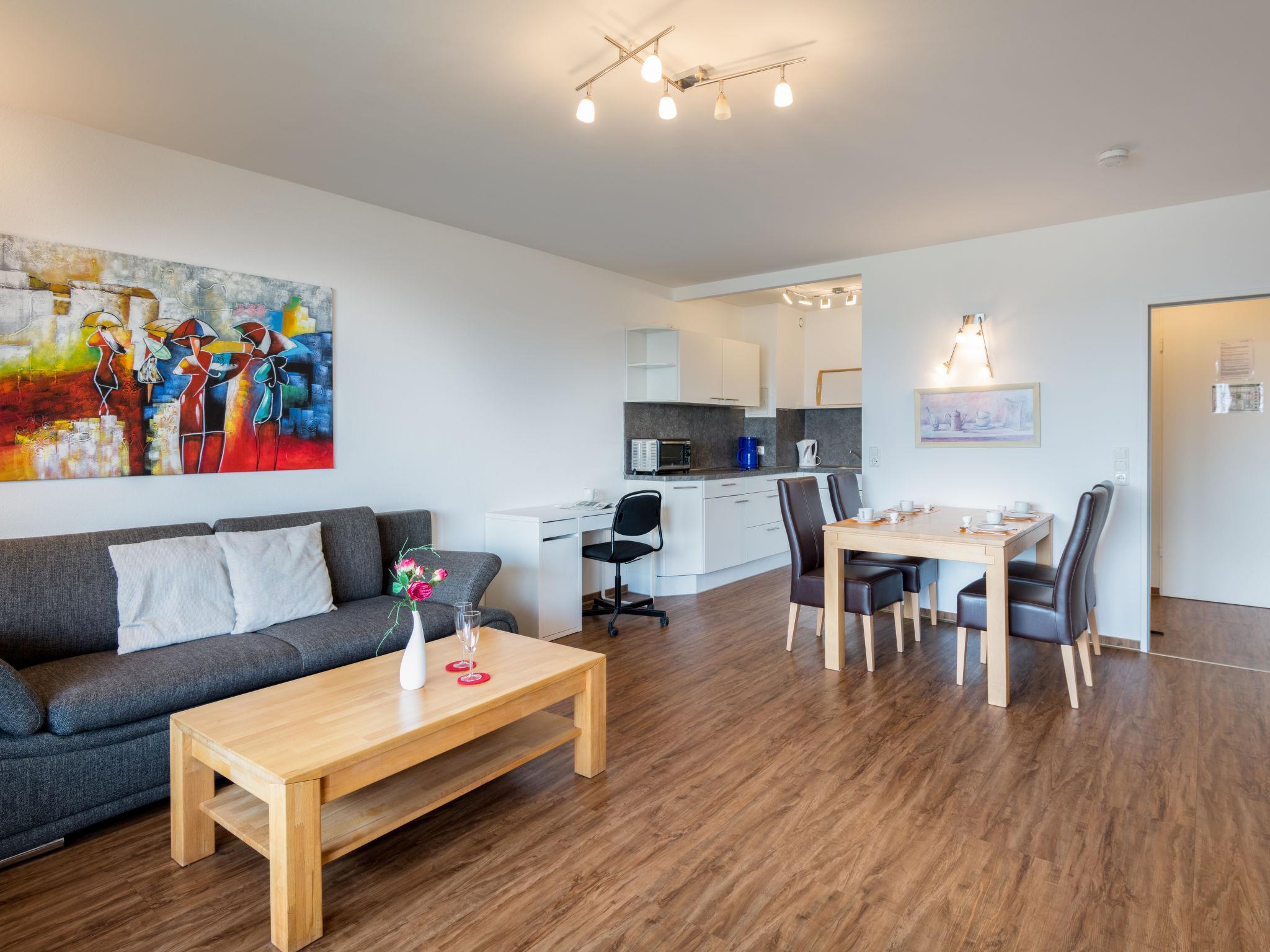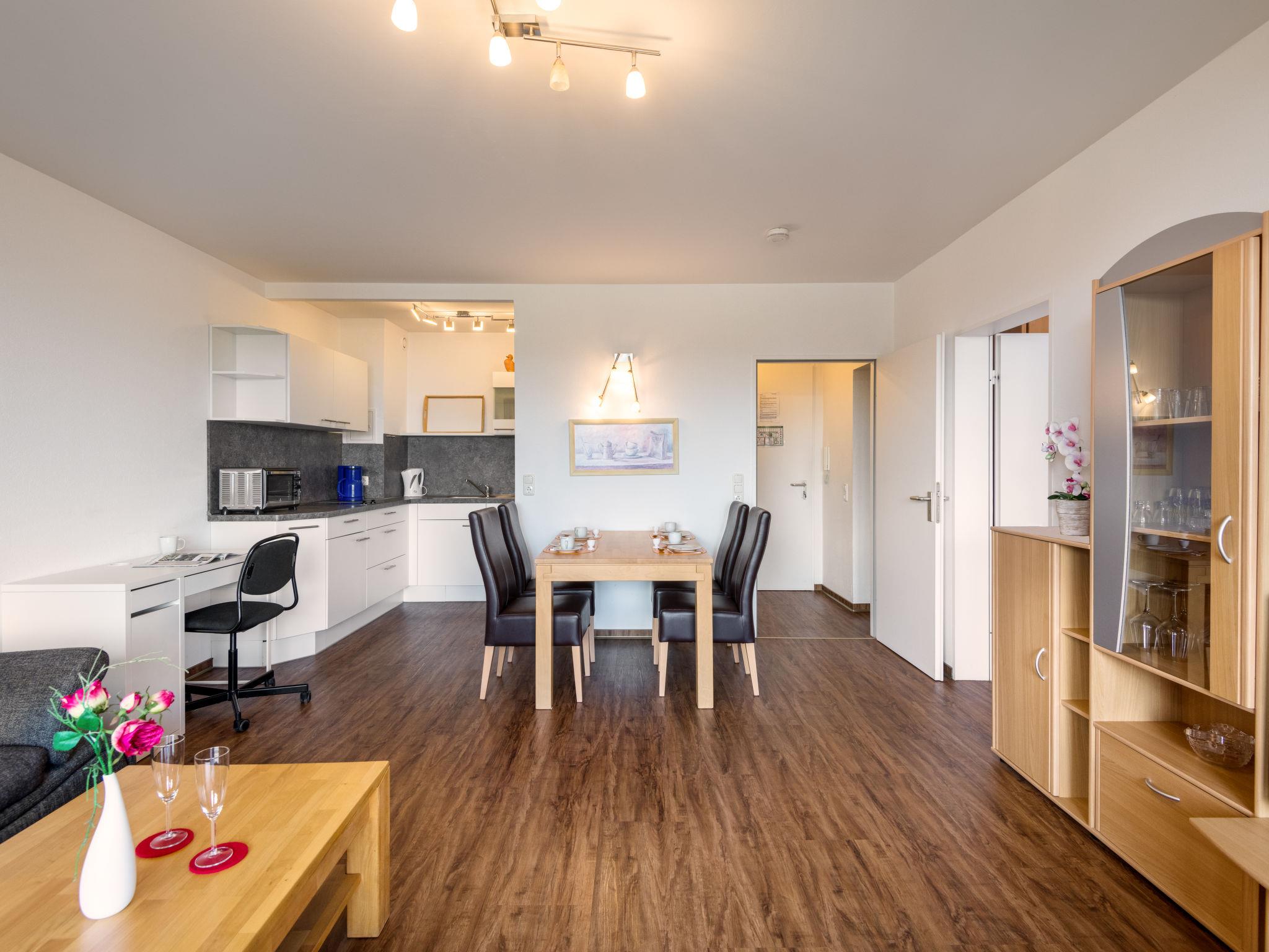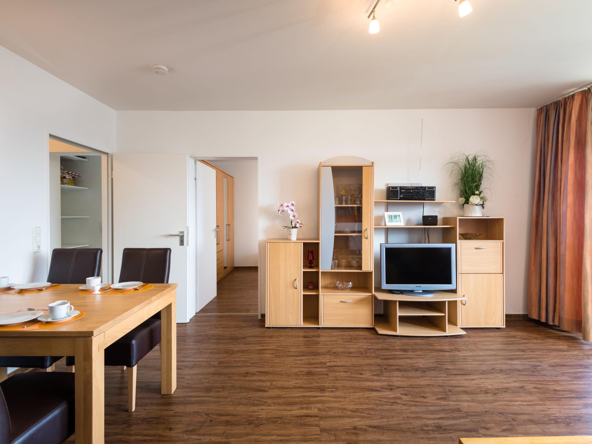 "Sonnenblick (B905)", 2-room apartment 56 m2 on 9th floor, east facing position. Beautiful and modern furnishings: living/dining room with 1 double sofabed (150 cm, length 200 cm), satellite TV (flat screen). Exit to the balcony. 1 room with 1 double bed (2 x 100 cm, length 200 cm). Kitchenette (mini-oven, dishwasher, 2 ceramic glass hob hotplates, toaster, kettle, electric coffee machine). Shower/WC. Balcony furniture. Marvellous view of the countryside. Facilities: Internet (WiFi, free). Please note: non-smokers only. Smoke alarm.