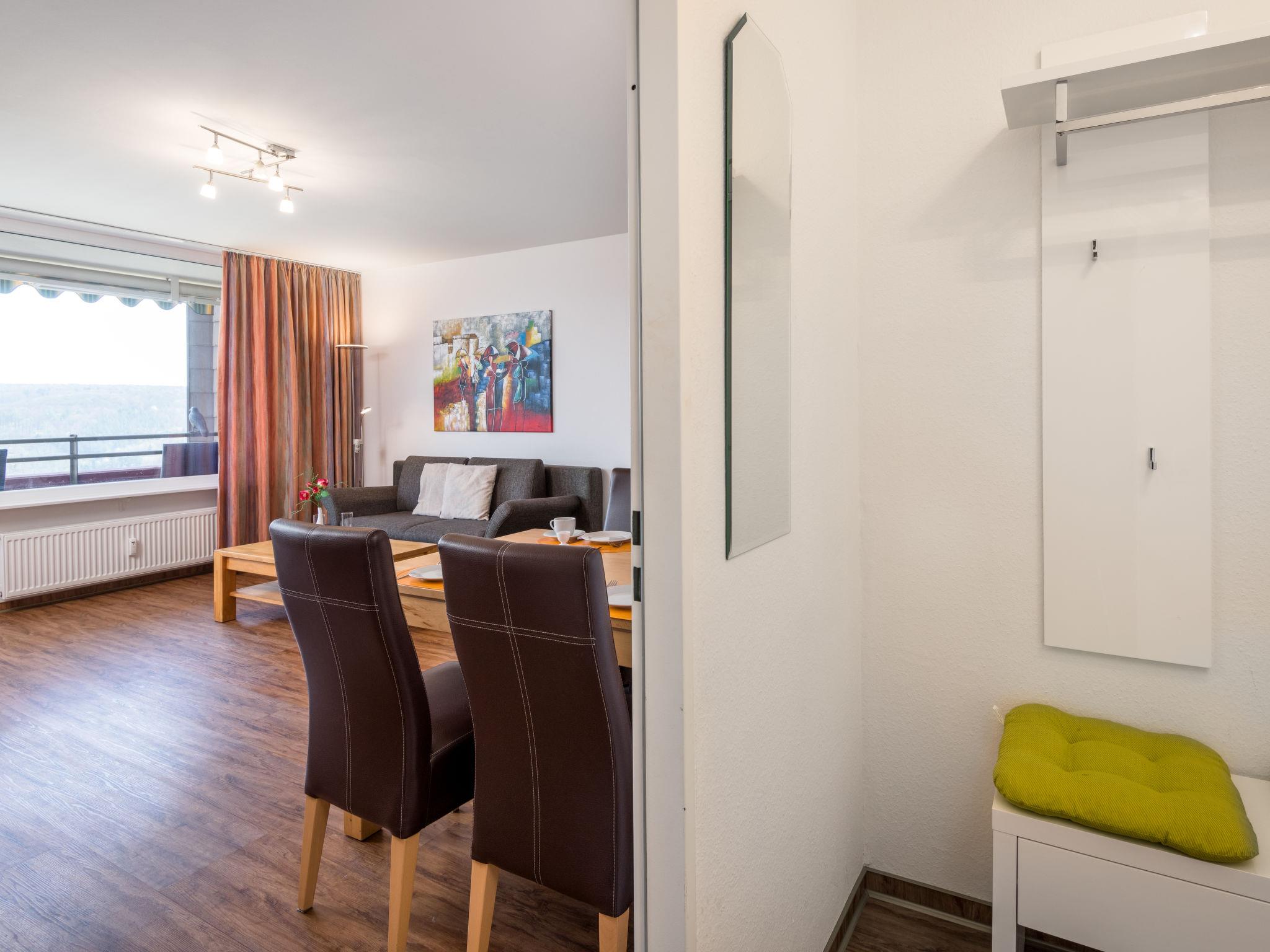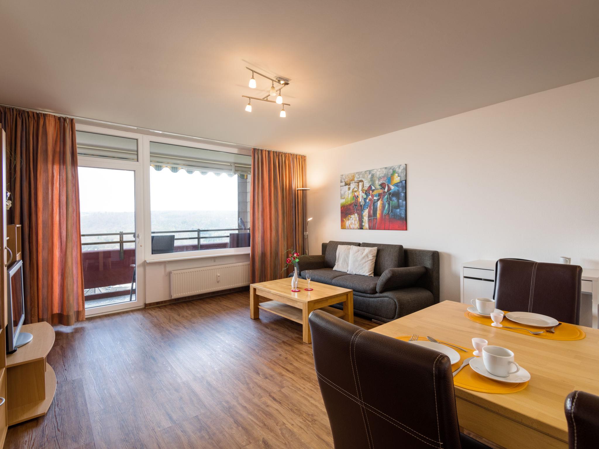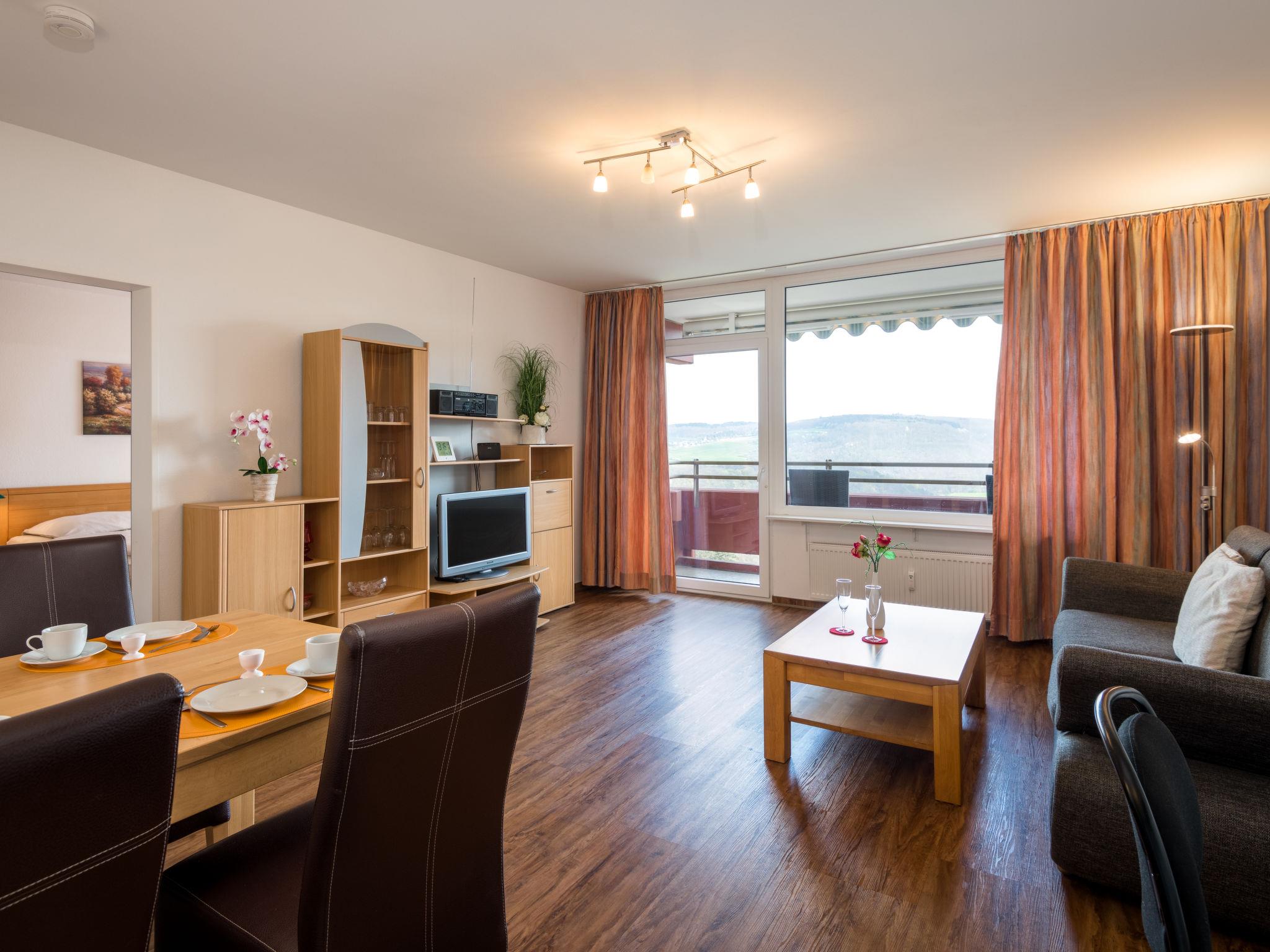 Lahnstein 12 km from Koblenz: Apartment block "Ferienpark Rhein-Lahn". In the district of Lahnstein auf der Höhe 4 km from the centre of Lahnstein, 12 km from the centre of Koblenz, 4 km from the river. For shared use: indoor pool (11 x 6 m, depth 120 cm) with internal staircase. Shower/WC in the pool area. In the complex: reception, WiFi, table tennis, lift, central heating system, washing machine, tumble dryer (for shared use, extra). Parking at the house. E-charging station. Grocery 200 m, supermarket 4.5 km, restaurant 800 m, bakery 4.5 km, bicycle rental 4.5 km, 45 minute walk to the centre, bus stop "Kurklinik" 200 m, railway station "Koblenz (HBF)" 12 km, park "Kurpark" 200 m, outdoor swimming pool 1.5 km, indoor swimming pool 5 km, thermal baths "Emser Therme" 10 km. Golf course (18 hole) 16 km, tennis 500 m, minigolf 6 km, walking paths from the house 100 m, cycle lane 4.5 km, children's playground 100 m. Nearby attractions: Burg Lahneck 3 km, Marksburg 7 km, Deutsches Eck Koblenz / Seilbahn 10 km, Schloss Stolzenfels 13 km. Hiking paths: Lahn-Höhenweg 100 m, Rheinsteig (11) 100 m, Jakobswege Rhein-Lahn. Please note: car recommended. Lahn River 4 km. Boat trips (KD) on the Rhine 4.5 km. Moselle River 10 km. A small kiosk with a small animal enclosure is 300 m away. The Rhein-Lahn holiday park is located 200 m above the town of Lahnstein, in the heart of the 530 km² Nassau Nature Park. It consists of two interconnected apartment buildings and its own Interhome service office. Smoking is permitted on the balconies of the apartments. An 11 kW electric charging station is located in the parking lot. Usage and billing are handled through the Interhome service office.