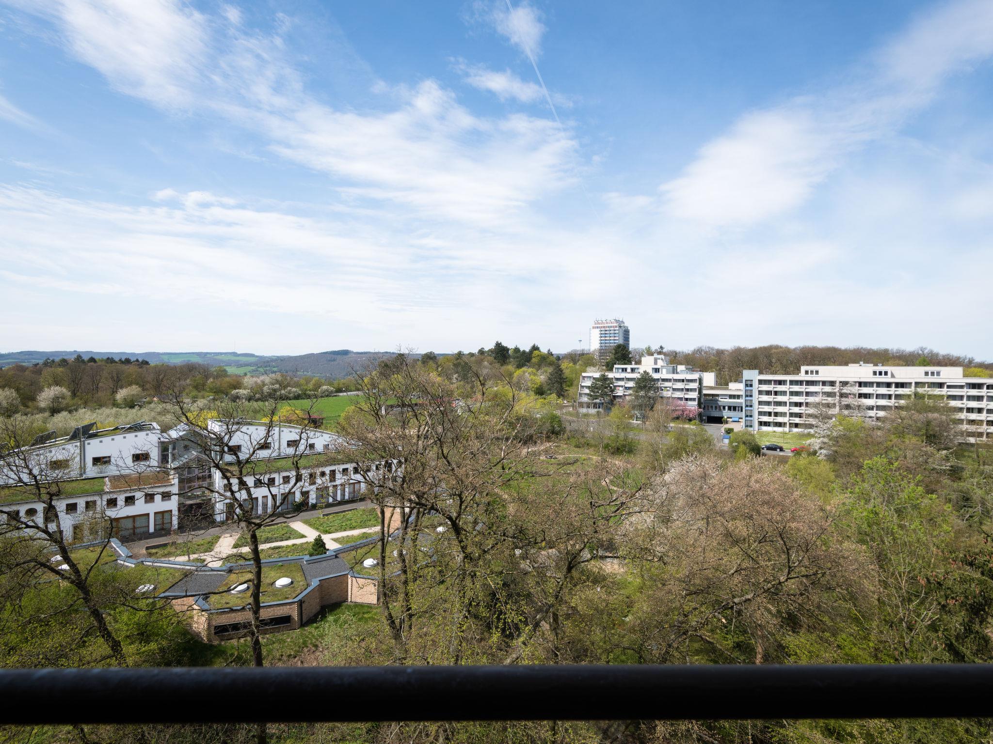 Lahnstein 12 km from Koblenz: Apartment block "Ferienpark Rhein-Lahn". In the district of Lahnstein auf der Höhe 4 km from the centre of Lahnstein, 12 km from the centre of Koblenz, 4 km from the river. For shared use: indoor pool (11 x 6 m, depth 120 cm) with internal staircase. Shower/WC in the pool area. In the complex: reception, WiFi, table tennis, lift, central heating system, washing machine, tumble dryer (for shared use, extra). Parking at the house. E-charging station. Grocery 200 m, supermarket 4.5 km, restaurant 800 m, bakery 4.5 km, bicycle rental 4.5 km, 45 minute walk to the centre, bus stop "Kurklinik" 200 m, railway station "Koblenz (HBF)" 12 km, park "Kurpark" 200 m, outdoor swimming pool 1.5 km, indoor swimming pool 5 km, thermal baths "Emser Therme" 10 km. Golf course (18 hole) 16 km, tennis 500 m, minigolf 6 km, walking paths from the house 100 m, cycle lane 4.5 km, children's playground 100 m. Nearby attractions: Burg Lahneck 3 km, Marksburg 7 km, Deutsches Eck Koblenz / Seilbahn 10 km, Schloss Stolzenfels 13 km. Hiking paths: Lahn-Höhenweg 100 m, Rheinsteig (11) 100 m, Jakobswege Rhein-Lahn. Please note: car recommended. Lahn River 4 km. Boat trips (KD) on the Rhine 4.5 km. Moselle River 10 km. A small kiosk with a small animal enclosure is 300 m away. The Rhein-Lahn holiday park is located 200 m above the town of Lahnstein, in the heart of the 530 km² Nassau Nature Park. It consists of two interconnected apartment buildings and its own Interhome service office. Smoking is permitted on the balconies of the apartments. An 11 kW electric charging station is located in the parking lot. Usage and billing are handled through the Interhome service office.
