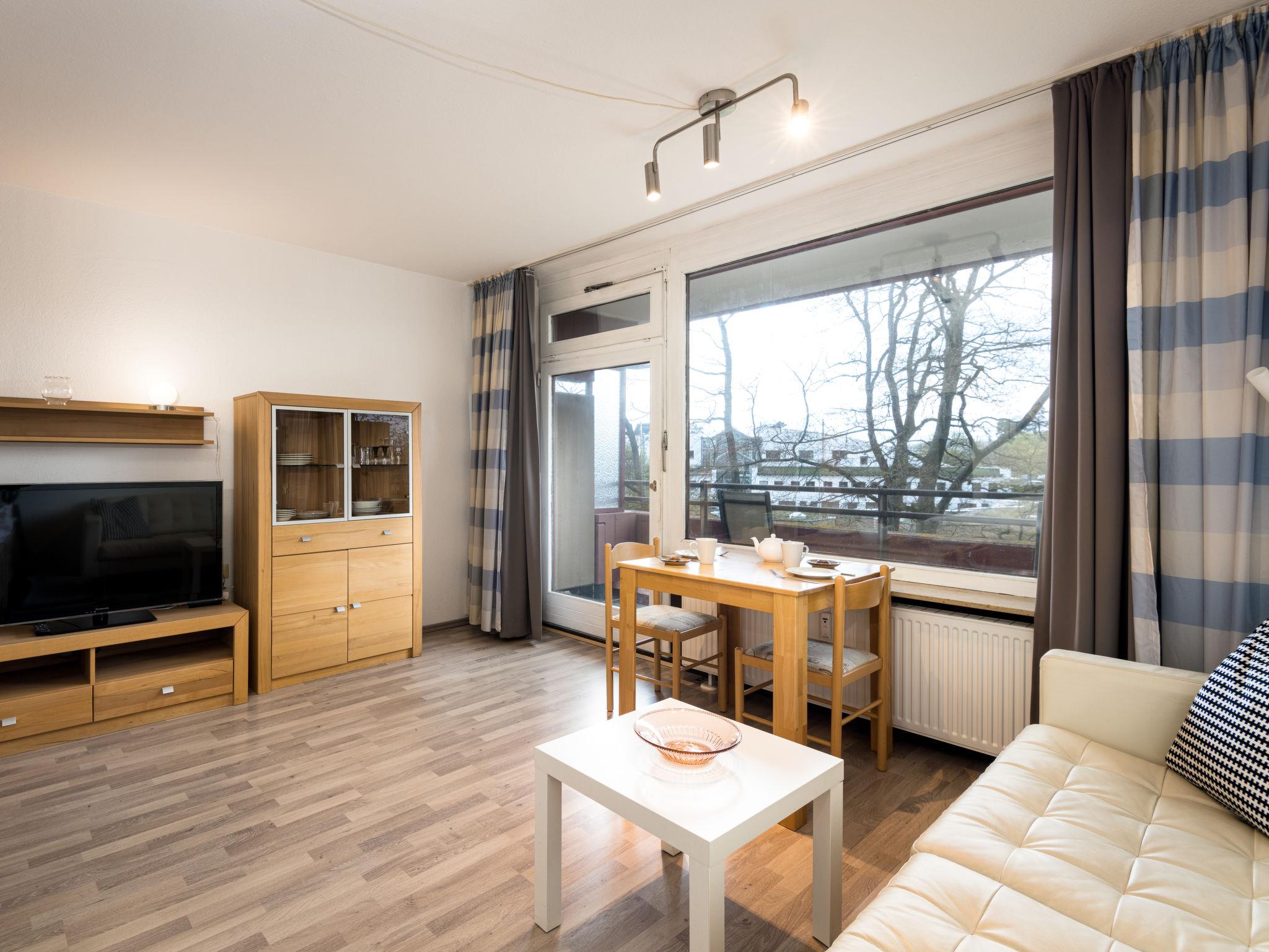 "Flora und Fauna (B306/B307)", 2-room apartment 66 m2 on 3rd floor, west facing position. Living/sleeping room with 2 beds (90 cm, length 200 cm), satellite TV (flat screen). Exit to the balcony. Living/sleeping room with 2 beds (90 cm, length 200 cm), satellite TV (flat screen). Exit to the balcony. Kitchenette (2 hot plates, toaster, kettle, electric coffee machine). 2 Baths/showers/WC. Balcony furniture. Facilities: Internet (WiFi, free). Please note: non-smokers only. Maximum 2 pets/ dogs allowed. Smoke alarm. PLEASE NOTE: This property is a combination of the two separate apartments DE5420.100.45 and DE5420.100.46 (internal connecting door) with a kitchenette in each apartment.