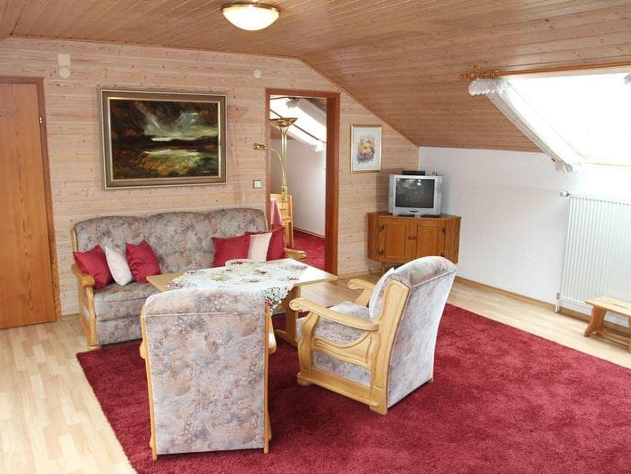 2-Zimmerappartement im Dachgeschossmit Blick in den Garten, Hausberge Osser und Arber