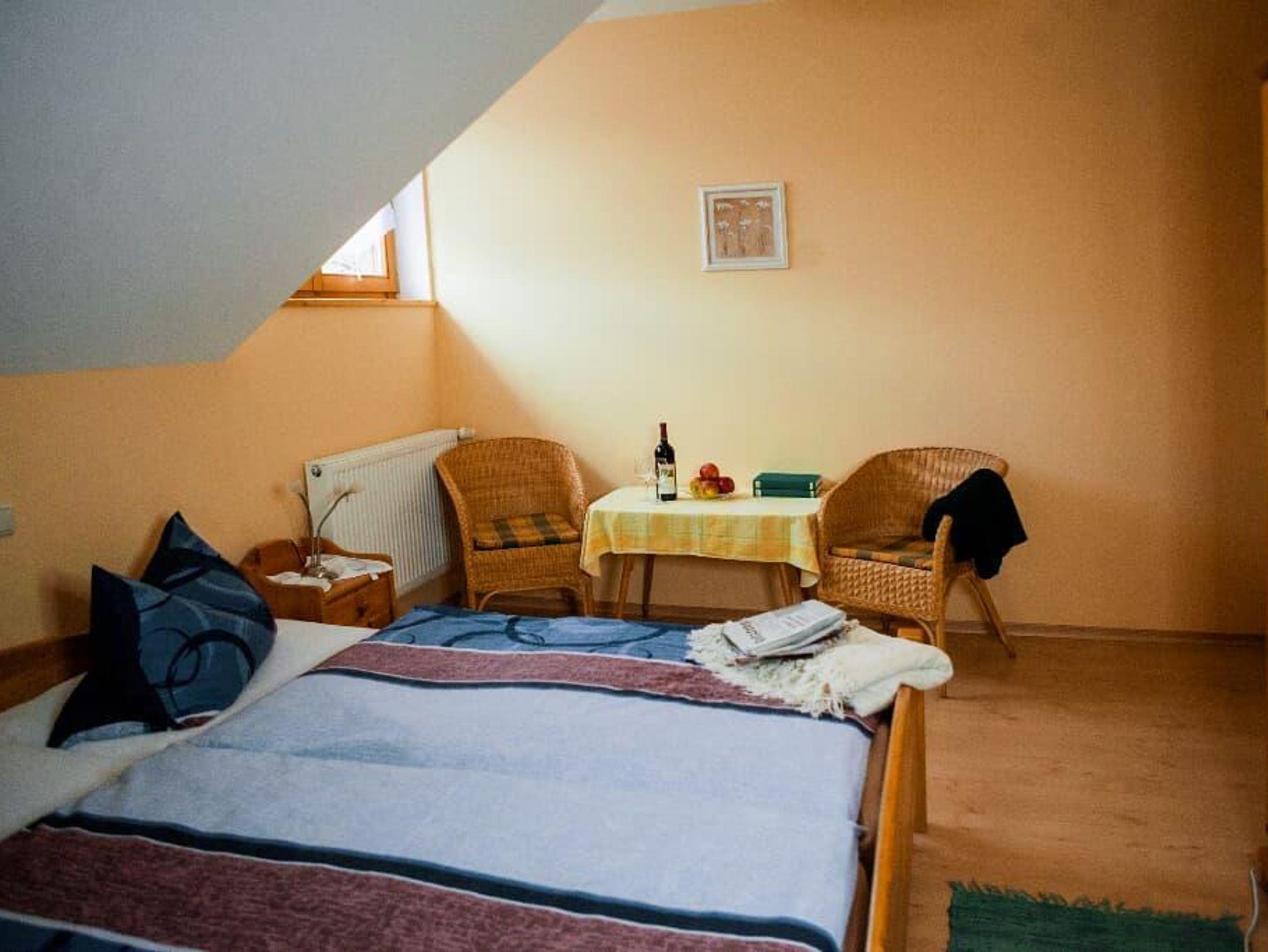 Unsere freundliche und helle Ferienwohnung Blick auf den Hohen Bogen mit 50m2 Wohnfläche Platz für 4 Personen. Die Ferienwohnung verfügt über 2 Schlafzimmer mit jeweils einem bequemen Doppelbett und Zugang zum Balkon. Das gemütliche Wohnzimmer mit Schlafsofa und Flachbild-TV lädt zum Verweilen ein. Die komplett ausgestattete Küche mit Kühlschrank, Herd, Toaster, Kaffeemaschine und Backofen lässt keine Wünsche offen. Die beiden Badezimmer mit Dusche und WC runden das Gesamtbild ab. Vor allem im Sommer können Sie entspannte Abende auf dem Balkon verbringen. Das WLAN und den Parkplatz vor dem Haus können Sie kostenfrei nutzen.