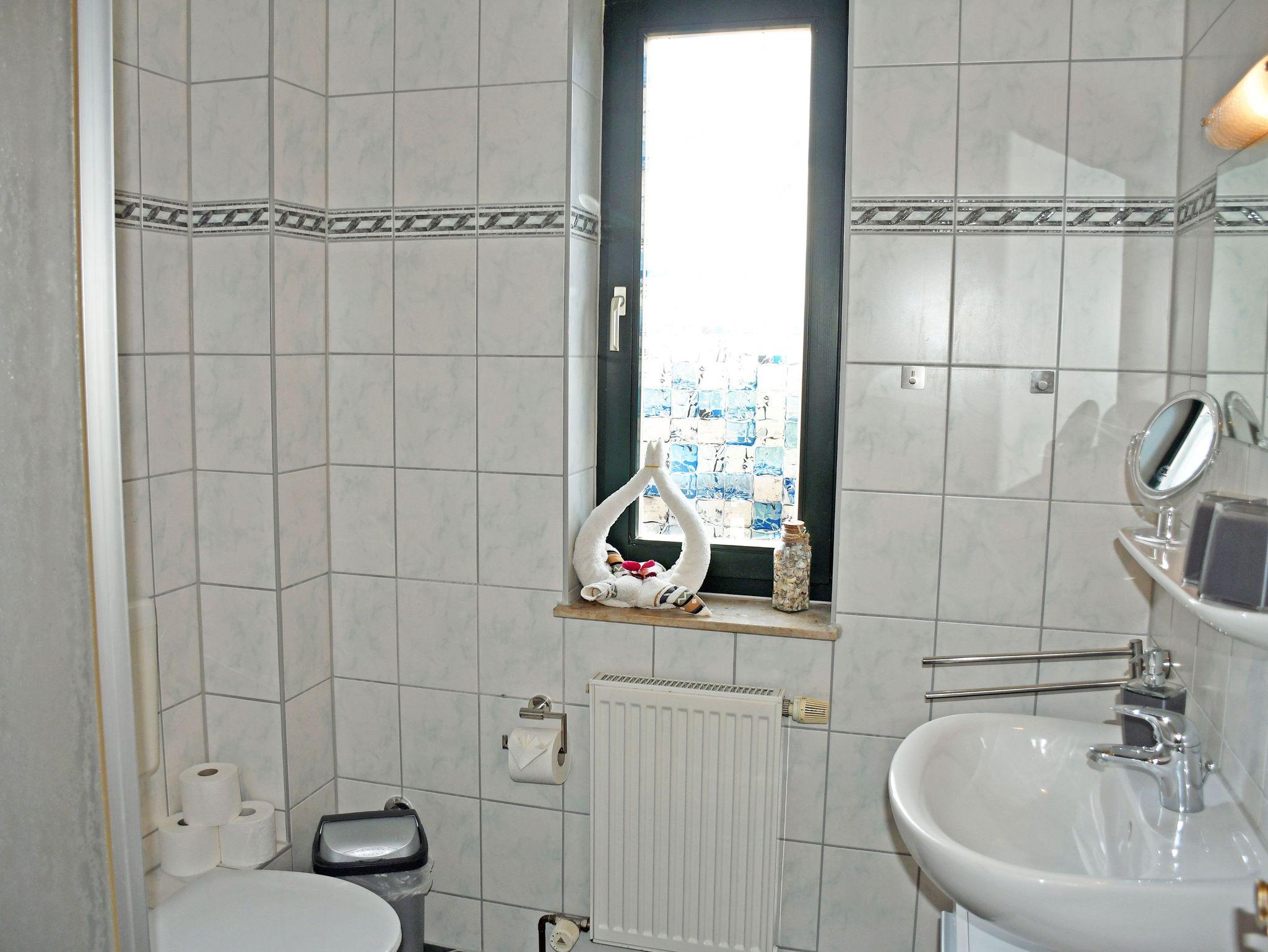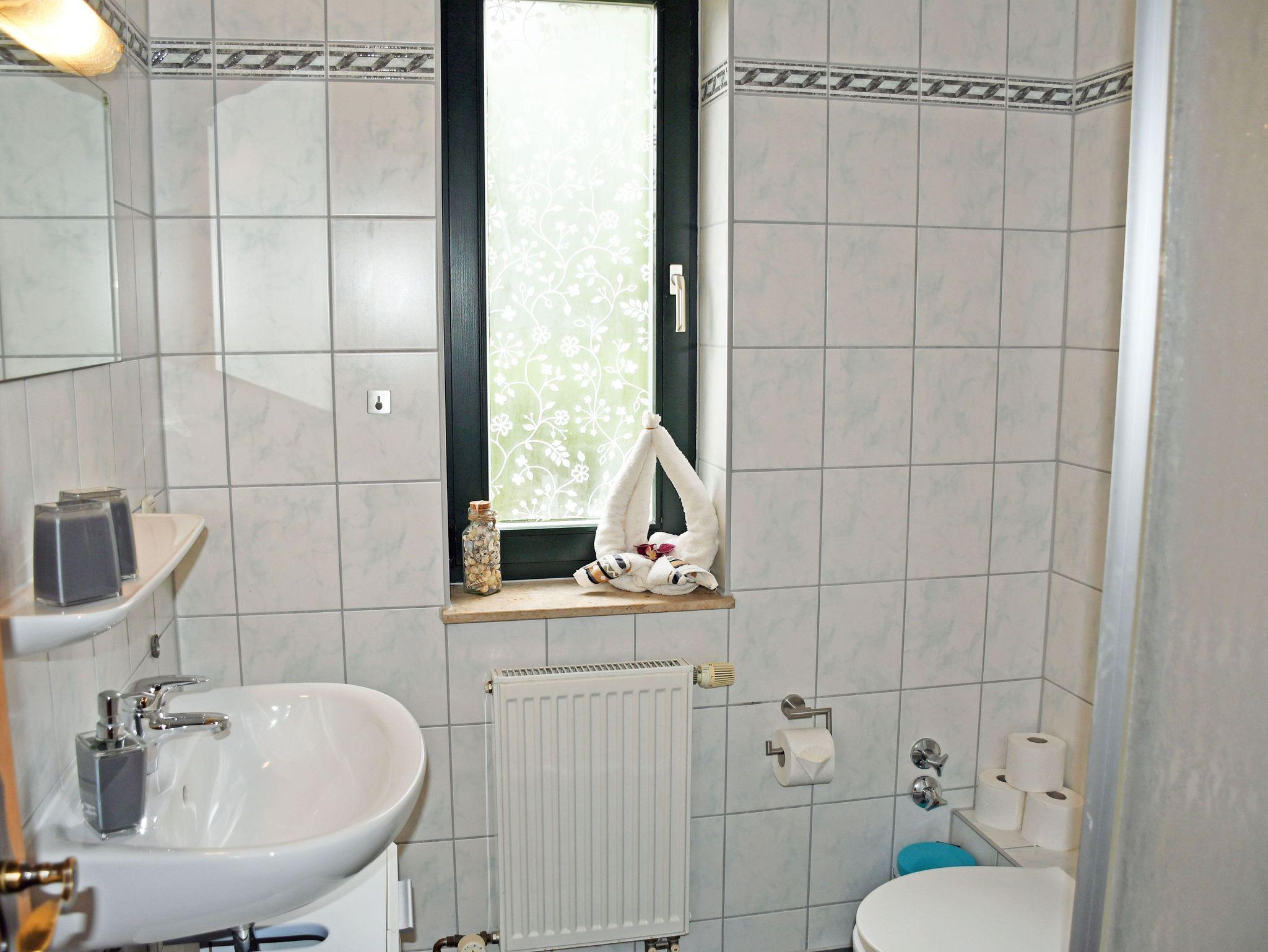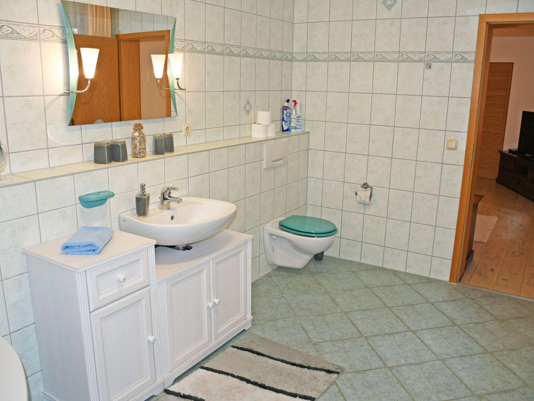 Drei schöne Bäder sind mit Dusche, WC und Waschbecken ausgestattet und verfügen über Tageslicht. Das vierte Bad bietet eine Badewanne, WC und Waschtisch.